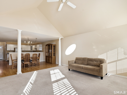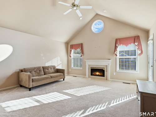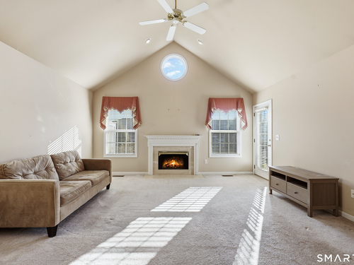 Welcome to Walnut Tree Village located in a stunning 55+ community in Newtown CT...the open and airy one level floor plan includes soaring ceilings in the living room with gas fireplace for cozy evenings at home...dining area for entertaining family and friends...open kitchen with white cabinets, loads of storage and plenty of room to cook...freshly painted primary bedroom with high ceilings, updated bath and large walk-in closet...additional bedroom for guests and updated bath...lower level has additional finished space for flex room, gym, home office or family room...unit is light filled with large windows and has a lovely patio for relaxing with a good book...gas heat, central air, storage galore in lower level and 1 car garage make this the perfect place to call home...located minutes to premier shopping, restaurants and Rte 84...make this move-in ready home yours today!