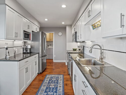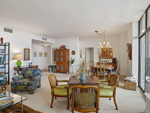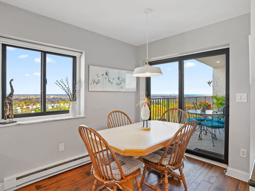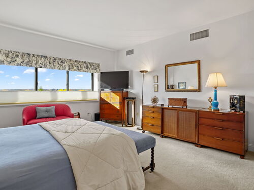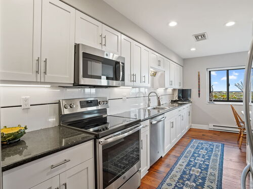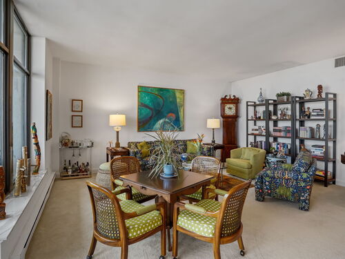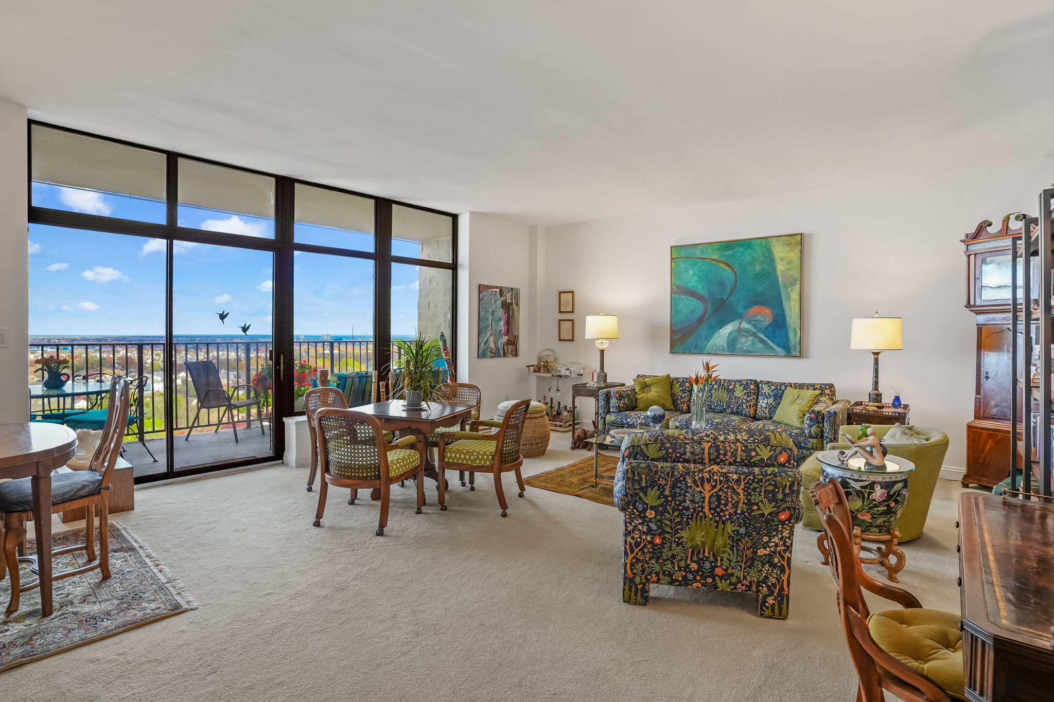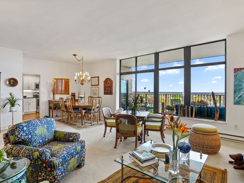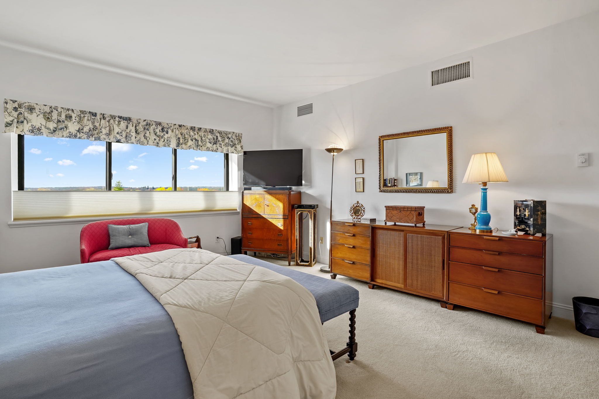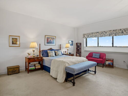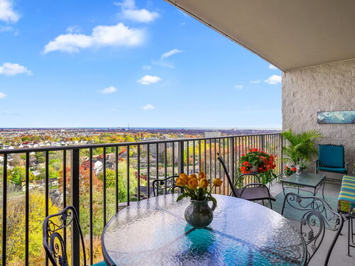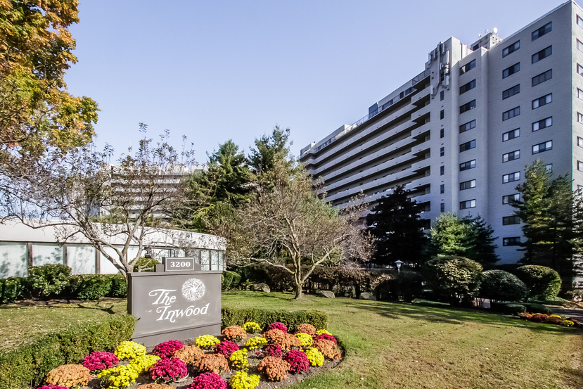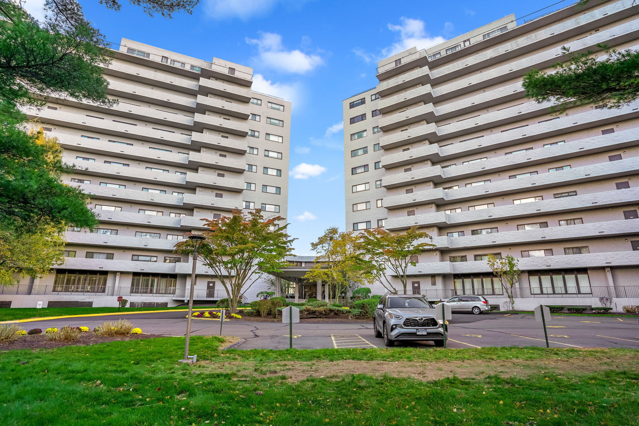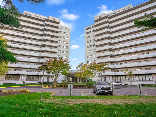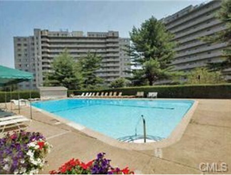 Sunny remodeled unit on top floor of desirable, full service, high rise in gated complex on Fairfield line. Feel like you are living in a penthouse in this spacious unit which features soaring ceilings in the open plan living/dining rooms. The fabulous views of the city and LI Sound are even better when you step through the sliders from the LR/DR to a 24 foot balcony where you can enjoy morning coffee, an evening libation or multiple fireworks displays on holidays. A remodeled eat-in-kitchen features a hardwood floor, granite counters, stainless appliances, cabinets with pull-outs, access to the balcony and laundry room. A very spacious primary suite boasts a bedroom with high ceilings, gorgeous tree-top views, three closets, including a walk-in and a full bath. The primary bath has been remodeled to include a large shower, Corian topped vanity with double sinks, great storage and a marble floor. A second bedroom with double closets provides a built-in desk area with bookshelves. A hall bath with marble floor features a tub/shower combo and Corian topped vanity. This unit comes with a storage closet just outside the unit, a storage cage on the 1st floor, a great parking space in an underground garage and space in gated parking lot. The Inwood features a 24 hour doorman, heated pool, pool house, exercise room, sauna, lounge/library, party/card room, art room, and billiards/table tennis room. Great lifestyle- this one won't last!! See supplements for list of improvements.