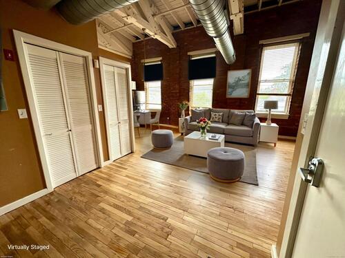 ATTENTION INVESTORS! This property is leased at $1,900/month. 1-year lease, great tenant, EXCELLENT INVESTMENT at 8.2% CAP RATE! Nestled in the South End of Bridgeport, this gated community offers New York-style lofts that blend modern living with industrial charm. Enjoy this stylish 2-bedroom loft on 3rd Floor, featuring 10-foot ceilings, hardwood floors, large windows, and an open layout for flexible customization of your living space. The unit's unique industrial aesthetic is highlighted by exposed brick, beams, and air ducts, creating a stylish and contemporary ambiance. Laundry facilities are conveniently located within the unit. This property features central air conditioning, gas heat, gated parking lot, and a pet-friendly policy. Water/Sewer is included in the HOA. Seaside Park and Beach is just a short distance away, and the vibrant downtown Bridgeport with its array of restaurants, comedy clubs, bars, and the Hartford Healthcare Amphitheater. The Port Jefferson Ferry is also within reach, offering diverse entertainment, commuting options, and waterfront experiences. Schedule your private tour today! CASH OFFERS ONLY.