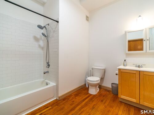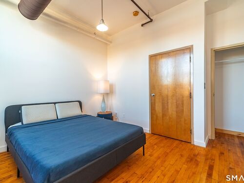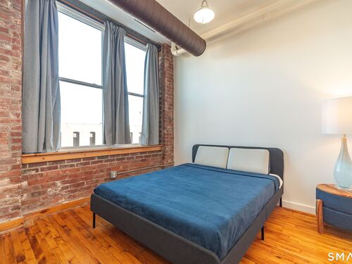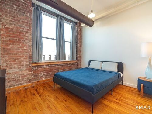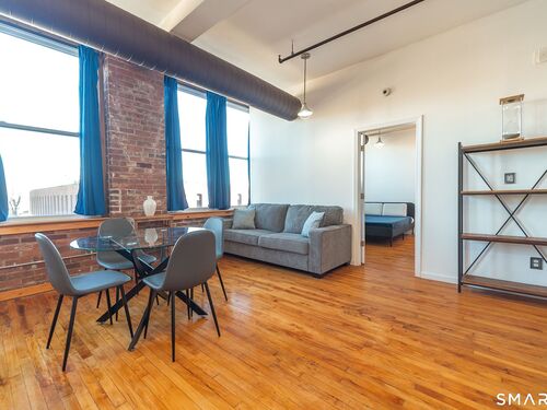 Refreshed 1 BEDROOM unit in a gated community. NEW WINDOWS and SS APPLIANCES! Freshly painted. Central A/C. Open living space, kitchen, and dining area. Beautiful hardwood flooring and 9'+ ceilings with exposed brick and ductwork. Plenty of natural light. Very charming. Large full bath with tiled tub surround. In building laundry. Designated parking space. WALK to University of Bridgeport and Hartford Healthcare Amphitheatre. Minutes from I-95, Metro North Station, Pt Jefferson Ferry, restaurants and shopping. Great investment opportunity as well! Schedule your private showing today! Offers must do their do diligence with lender. CASH or Non warranty mortgage.