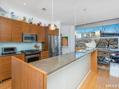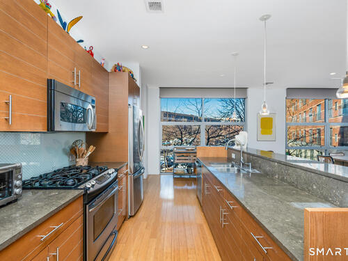Pristine elegance meets modern convenience in this sophisticated condo located in the highly sought-after Maritime Building in SoNo. This corner unit boasts an abundance of natural light, thanks to its floor-to-ceiling windows that frame stunning views of the surrounding area. The open layout is complemented by sleek bamboo floors and a contemporary kitchen outfitted with a new refrigerator and dishwasher. Both bathrooms are thoughtfully styled, offering a spa-like retreat. Step onto your private balcony to enjoy the fresh air, or take advantage of the building's luxury amenities, including a fitness center, common room, and secure garage parking. With a new HVAC system and water heater, this home is truly move-in ready. Perfectly situated just steps from SoNo's vibrant dining scene and the train station, this condo combines style, comfort, and unbeatable convenience.