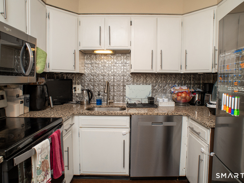 Welcome to your dream condo! This beautifully remodeled 2-bedroom, 1-bathroom home is a perfect blend of modern convenience and classic charm. Nestled in a highly sought-after neighborhood in Bridgeport, CT, this property offers a wonderful place to call home! This charming apartment style condo has been meticulously maintained, with attention to detail evident throughout. The perfect blend of modern amenities and classic design. Making your way into the home you are greeted by an option to go into the oversized living room or the kitchen. The main level of the home features an open-concept layout seamlessly connecting the kitchen, dining area, and living room, creating a warm and inviting space for gatherings/entertaining. Both bedrooms are generously sized with views of the woodland around the complex. The condo has in-unit washer and dryer that provides additional convenience. Centrally located to RT34, RT8, Merritt Pky, and I-95, makes this perfect for the weekend or daily traveler.