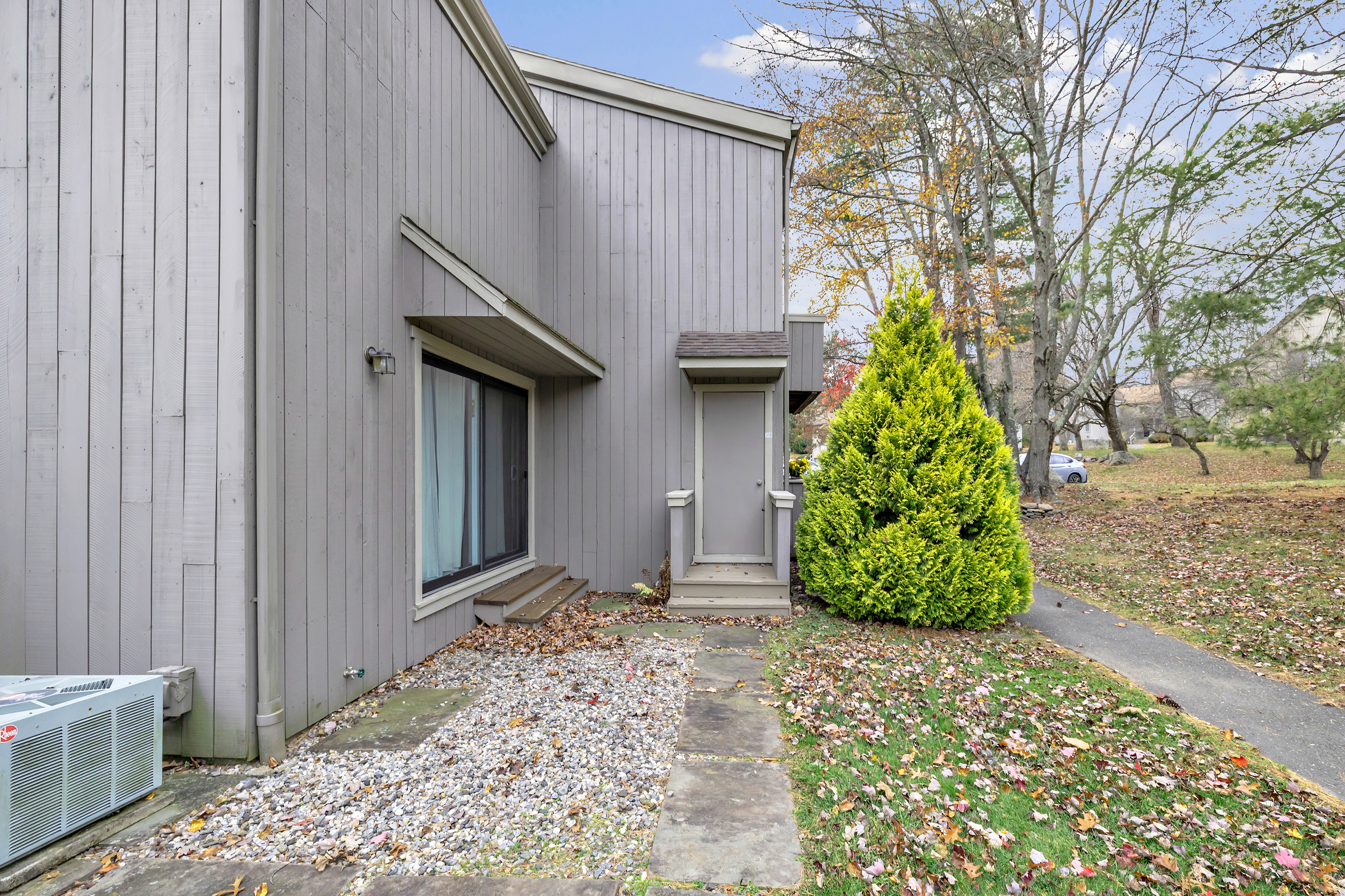 Must be seen to be appreciated ! Meticulously updated ! This Oronoque Village 2nd floor 2 bedroom ranch end-unit featuring a master bedroom bath freshly remodeled, the kitchen was just redone including brand new appliances. This Alcott ranch unit is just a short walk to the South Trail Clubhouse and pool area. The generous sized kitchen has brand new stainless appliances, plenty of counter space and a pass through to the dining area. There is more than enough room for a breakfast table in the kitchen. The living room, dining room area has a slider that leads to a spacious deck with pleasing views of the landscaped grounds. Enjoy a morning or evening walk on the manicured grounds from this ideal location in the complex. The Master bedroom offers views of the tranquil wooded grounds and features a large walk in closet and master bath. There are flexible use options of the second bedroom as your home office or den. The clothes washer and dryer are conveniently located in the unit. There is a plenty of storage in 3 seperate rooms in the lower level. The one car garage has additional storage. New Kitchen appliances 2025. New A/C & furnace 2022. New windows 2022. New gas fireplace 2022. New full bath remodel 2022. New kitchen remodel 2025. Updated deck slider. Basic cable & internet are included in the common charge. Tax card says one bedroom but bonus room has a closet making it usable as a traditional bedroom. Join in on the opportunity to make full use of all the amenities the
