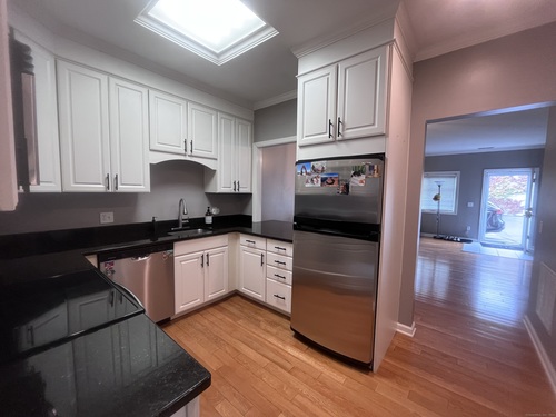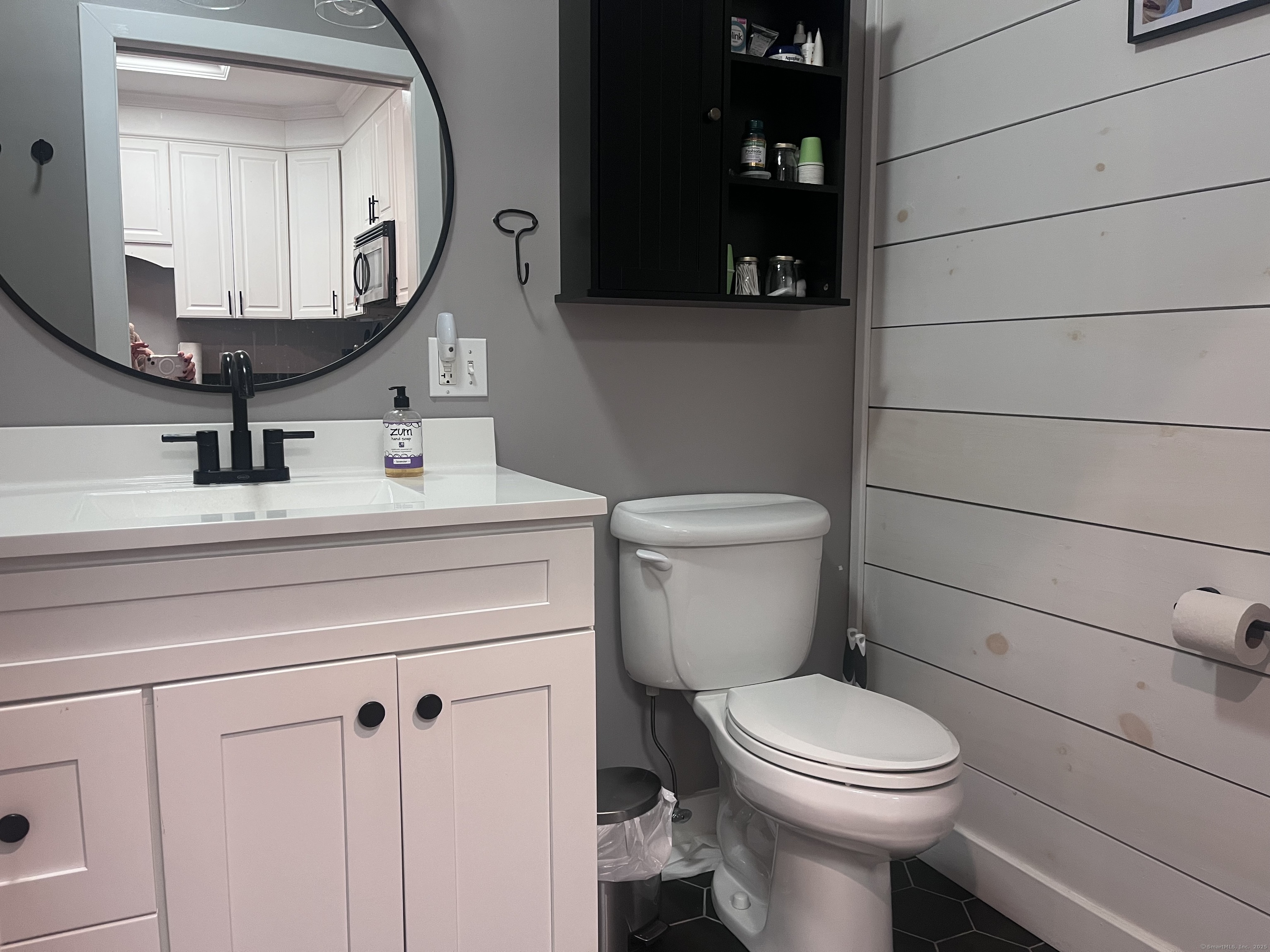 Charming East Norwalk Condo - Move-In Ready! Discover this adorable, turn-key 1-bedroom, 1-bath end unit perfectly situated in the heart of East Norwalk. Enjoy an unbeatable location just steps from shopping, Whole Foods, Stew Leonard's, great restaurants, beaches and only minutes to major highways and Metro-North for an easy commute. Step through your private entrance into a welcoming tiled foyer that opens to a bright, spacious living room with beautiful hardwood floors. The updated kitchen features granite countertops, stainless-steel appliances, a breakfast bar, and generous cabinet space - ideal for cooking or entertaining. The modernized bathroom offers a stylish new vanity, lighting, fixtures, tile flooring, and a chic shiplap accent wall. Additional highlights include a full-size washer and dryer, one reserved parking spot (#14), low common charges, and a private 12'x7' storage room in the basement. Why rent when you can own? This East Norwalk gem delivers style, comfort, and unbeatable convenience to all the best local amenities. Owner will paint the unit prior to closing.
