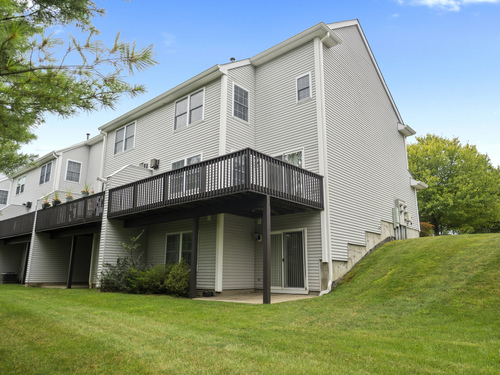 Tucked away on a quiet cul-de-sac in the desirable Sterling Woods community, this beautifully maintained 2-bedroom, 2.5-bath end unit offers the perfect blend of privacy, natural light, and modern comfort. Step inside to find hardwood floors throughout, creating a warm, elegant atmosphere. The open-concept main level features a bright and airy living and dining area anchored by a cozy fireplace. From the main level, enjoy direct walk-out access to a private deck-perfect for morning coffee, grilling, or outdoor entertaining. The home also features a spacious eat-in kitchen with modern appliances and ample cabinetry, ideal for casual meals and everyday living. A convenient half bath and in-unit laundry closet complete the first floor. Upstairs, you'll find two generously sized bedrooms, each with its own en-suite bathroom and plenty of closet space-ideal for guests, family, or a home office. The finished walk-out basement offers a versatile additional living area, ideal for a family room, home gym, or media space. It opens directly to a lower-level patio and green space, extending your living area into the outdoors. Enjoy the benefits of cul-de-sac living in a vibrant, well maintained neighborhood-just minutes from shopping, dining, and major commuter routes. This turn-key end unit combines space, style, and convenience in one of the area's most sought-after communities.