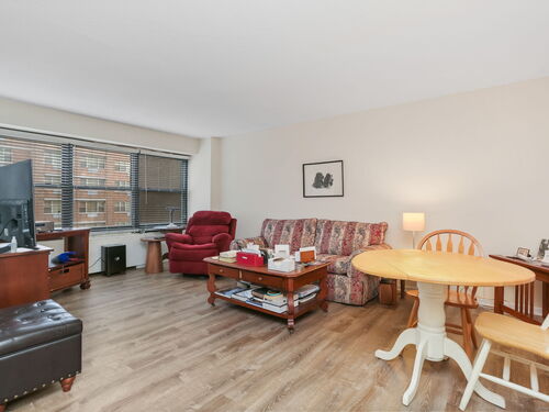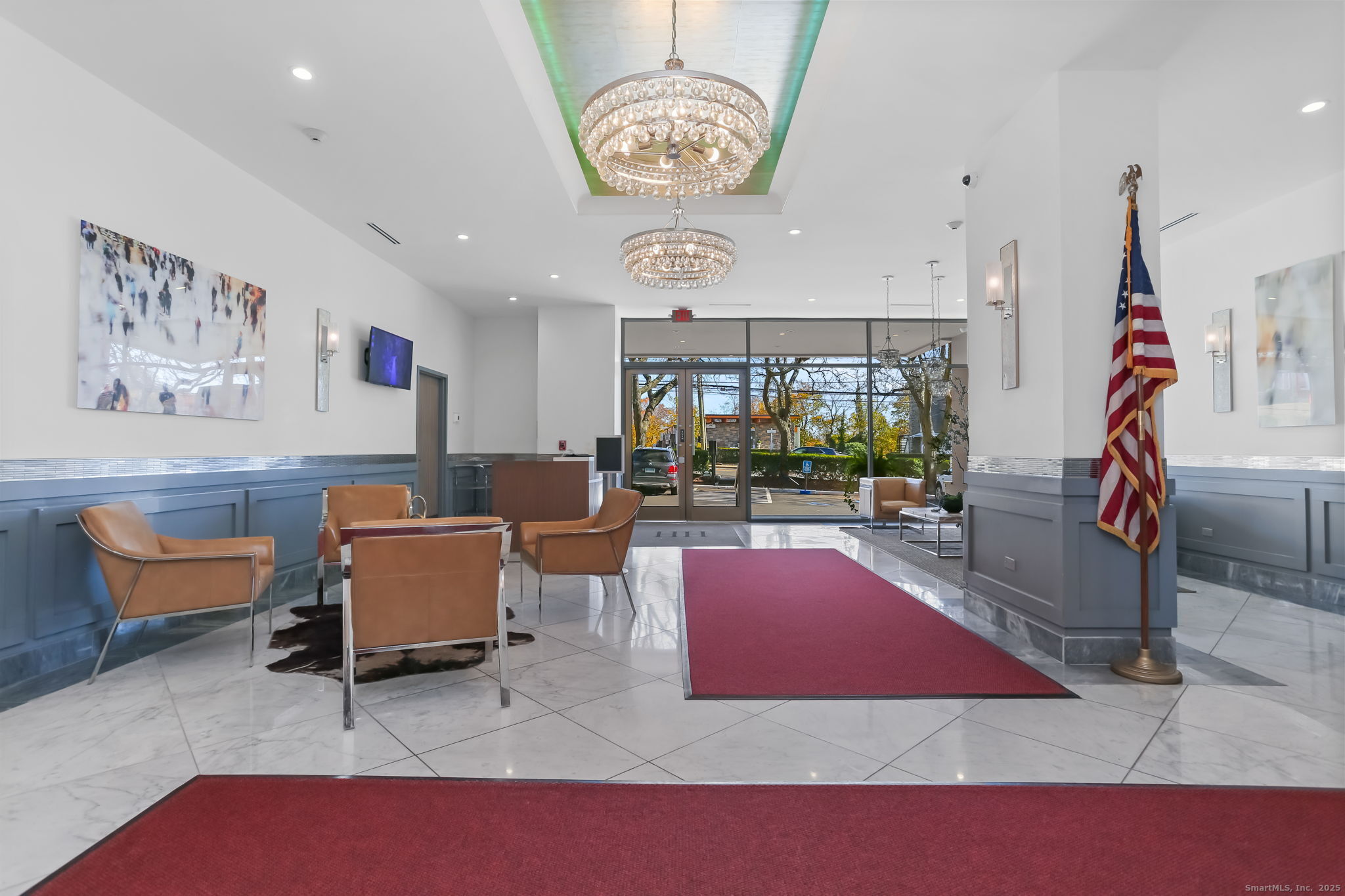 Spacious & Sunny Alcove Studio Condo in secure well-managed Hayes House community in downtown Stamford. Access this unit just off the elevator in a pristine setting with concierge, fitness center, secure garage and laundry on site. New flooring, separate bedroom and dining areas, large living room, private storage, and courtyard with grills make this home ideal. Beautifully designed common areas include the lobby & hallways, gym and security desk. Pets are allowed with convenient access to four enticing parks. Great staff and management. 24 hour front doorman plus live-in building super. Heat, cooling, and hot water included in HOA. This location offers everything you need in walking distance, ample restaurants with patio seating, a vibrant social life and a variety of outdoor recreational activities. Near Metro North, I-95, parks, shopping, beach, and public transit. Please note that this unit is on the first floor but it is not at ground level. Live your best life at Hayes House.