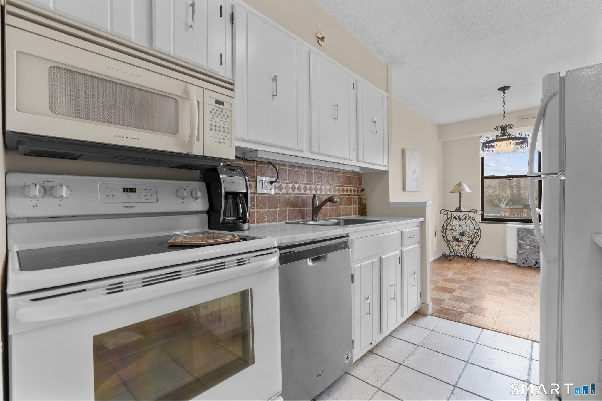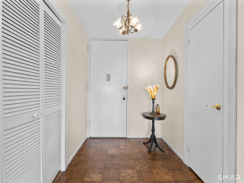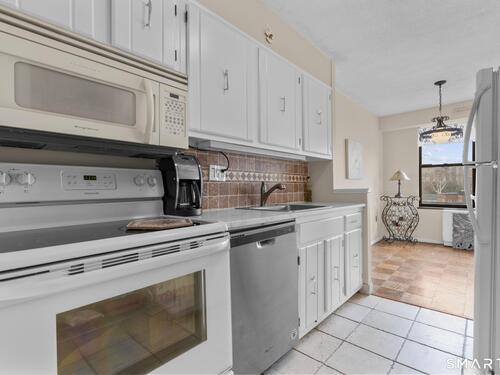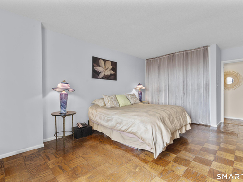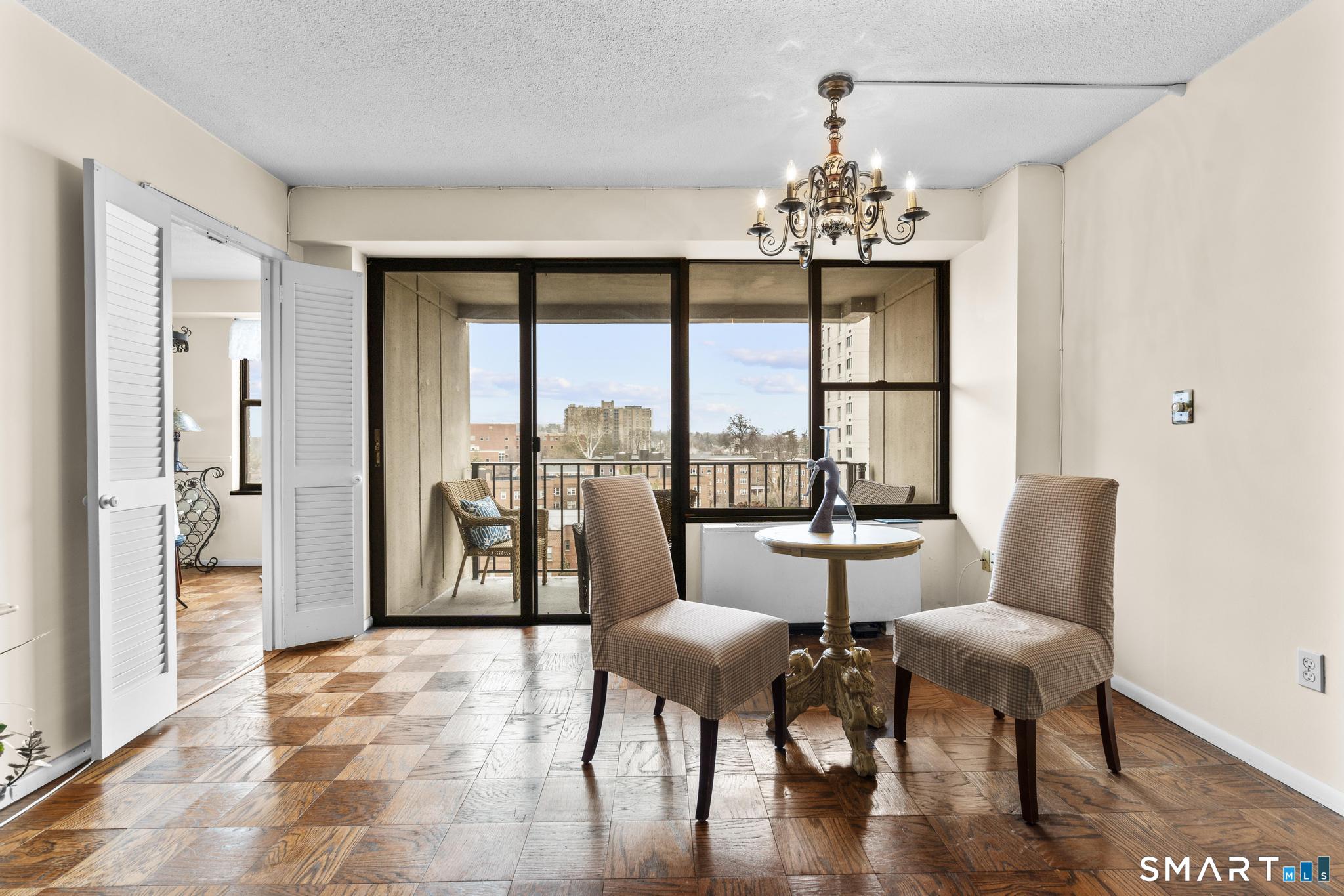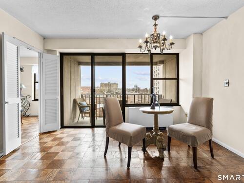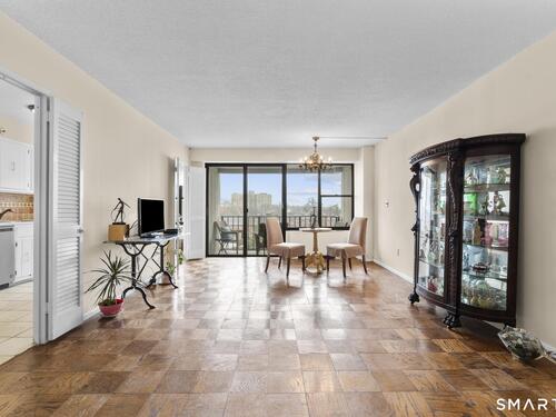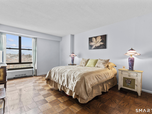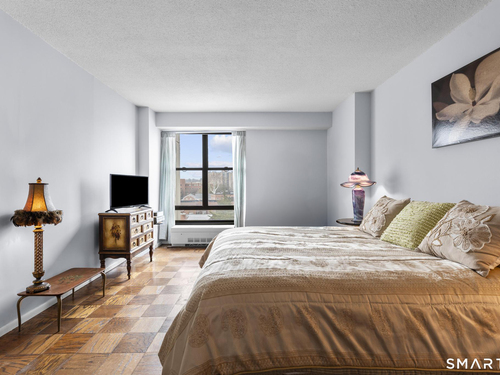 Discover comfort and expansive living in this well-maintained 1BR/1BA residence at the sought-after Hayes House Condominiums. This spacious layout features classic parquet floors throughout and oversized windows that fill the home with natural light while showcasing open city views. The generous living room offers exceptional scale rarely found in one-bedroom units and flows seamlessly to a dedicated dining area and private balcony-perfect for morning coffee or relaxing outdoors. The bright galley kitchen features crisp white cabinetry, tile backsplash, and ample counter space, opening into a sun-filled dining area framed by The oversized bedroom easily accommodates a full furniture set and offers excellent closet space. A clean, well-maintained full bath features a tub/shower combination and functional storage. Additional highlights include a welcoming foyer with multiple closets, storage locker, and designated garage parking. Hayes House residents enjoy full-service amenities including concierge, 24-hour security, on-site superintendent, fitness center, community room, shared courtyard with grills, bike storage, and laundry facilities. HOA dues include heat, cooling, and hot water. Ideally located just moments from Downtown Stamford, Metro-North, I-95, restaurants, shopping, parks, beaches, and medical centers, this inviting residence offers exceptional value and convenience in one of Stamford's most desirable full-service buildings.