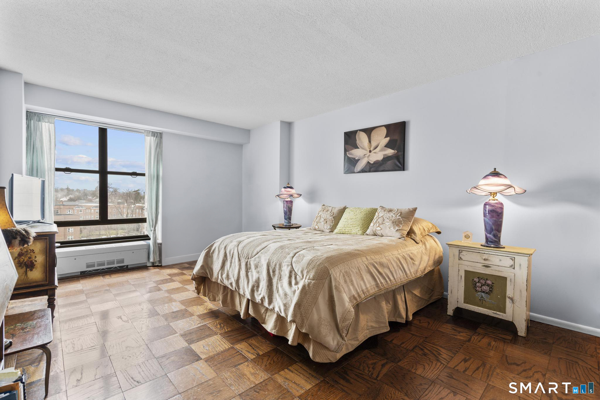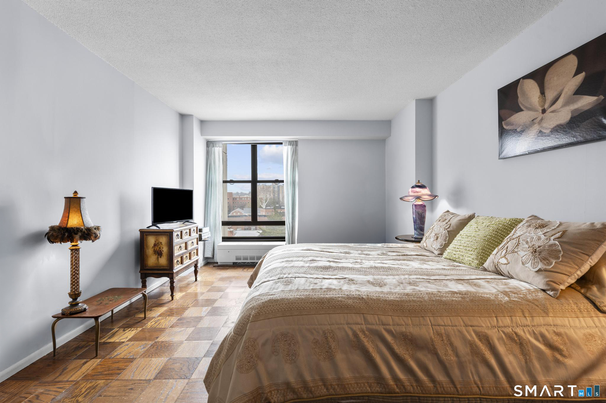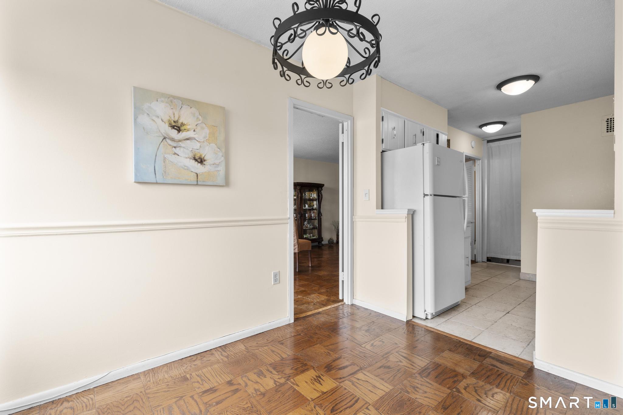 Discover comfort and expansive living in this well-maintained 1BR/1BA residence at the sought-after Hayes House Condominiums. This spacious layout features classic parquet floors throughout and oversized windows that fill the home with natural light while showcasing open city views. The generous living room offers exceptional scale rarely found in one-bedroom units and flows seamlessly to a dedicated dining area and private balcony-perfect for morning coffee or relaxing outdoors. The bright galley kitchen features crisp white cabinetry, tile backsplash, and ample counter space, opening into a sun-filled dining area framed by The oversized bedroom easily accommodates a full furniture set and offers excellent closet space. A clean, well-maintained full bath features a tub/shower combination and functional storage. Additional highlights include a welcoming foyer with multiple closets, storage locker, and designated garage parking. Hayes House residents enjoy full-service amenities including concierge, 24-hour security, on-site superintendent, fitness center, community room, shared courtyard with grills, bike storage, and laundry facilities. HOA dues include heat, cooling, and hot water. Ideally located just moments from Downtown Stamford, Metro-North, I-95, restaurants, shopping, parks, beaches, and medical centers, this inviting residence offers exceptional value and convenience in one of Stamford's most desirable full-service buildings.