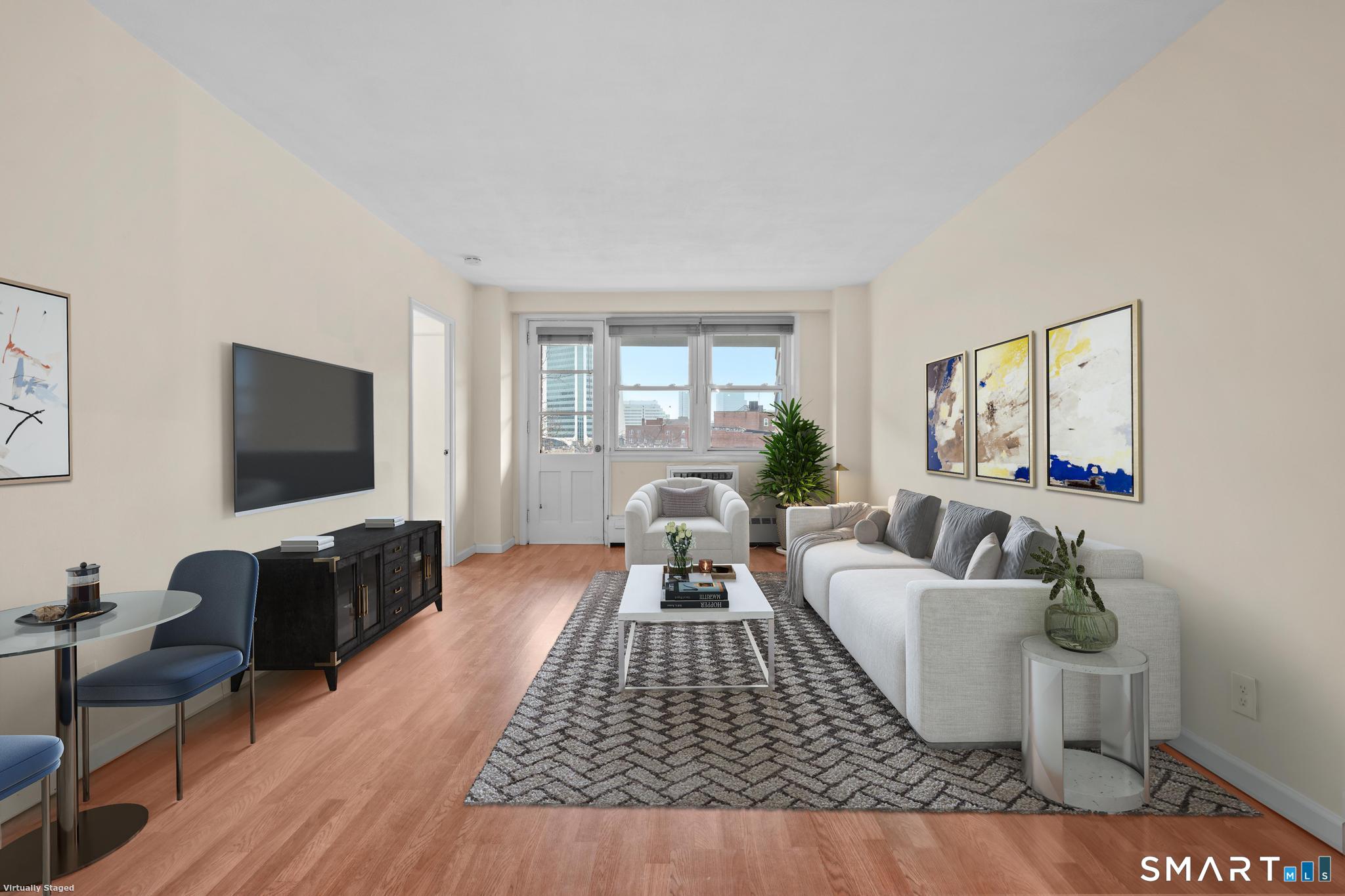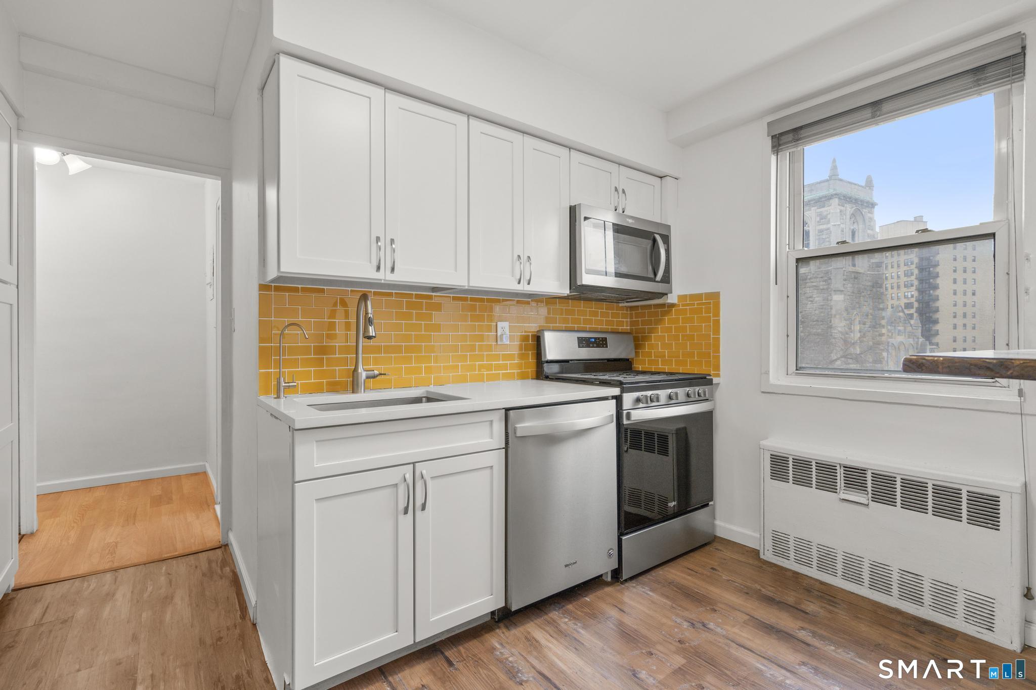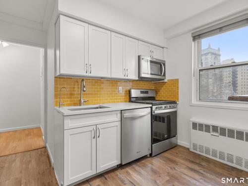 City living at it's best in this conveniently located 3 rd floor condo at Bedford Towers. Whether you're looking to owner occupy or invest, this condo checks all of the boxes. New floors, freshly painted, updated kitchen with subway backsplash, quartz counters, stainless appliances and gas stove! Corner unit offers terrific city views from the living room balcony. 2 generous bedrooms. HOA covers heat, hot water and cooking gas. Easy access to restaurants, library, train station, i-95 and local shopping. This secure -entry building has a spacious lobby area, and offers laundry facilities on the main level, private storage locker and a dedicated on-site superintendent. Private rec. room can be reserved. Don't miss this great opportunity! Seller can help coordinate parking.