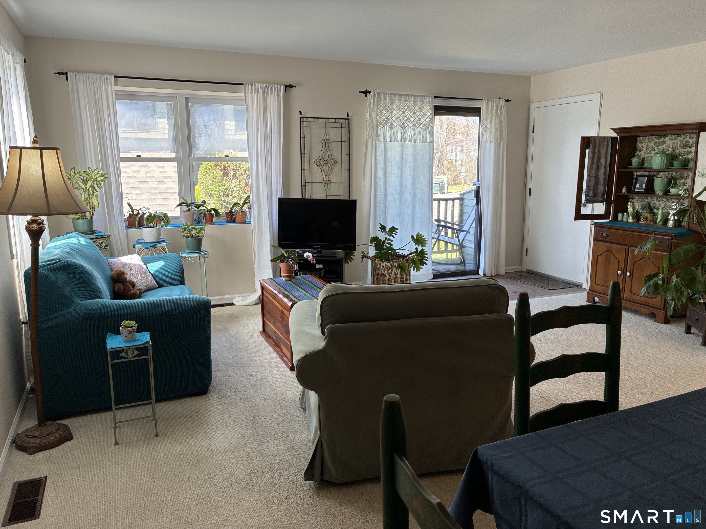 Balcony/Deck, Dining Area, Sliders, Wall/Wall Carpet