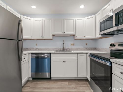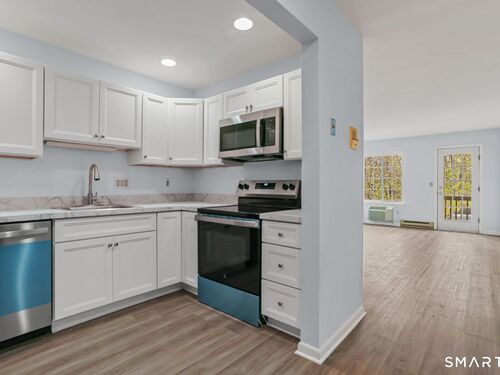 Welcome to 47 Cedar Street #2, a bright one-bedroom condo in the heart of South Norwalk. Built in 1989 and newly updated, this 609-square-foot home features updated vinyl flooring throughout, new kitchen cabinets, counters, and appliances, and in-unit washer and dryer. Enter through a central hallway that connects to all living spaces. The kitchen sits adjacent to the living room, which opens to a balcony. The bedroom is positioned on the opposite side of the unit with a large closet providing ample storage. The bathroom is centrally located between public and private zones, with additional closet space in the entry and hallway. Baseboard electric heat and wall units for AC keep utilities simple and efficient. This condo is less than a mile to the South Norwalk train station and walking distance from The SoNo Collection mall, with restaurants, shops, and nightlife right around the corner. A rare opportunity to own in one of Norwalk's most vibrant and convenient locations.