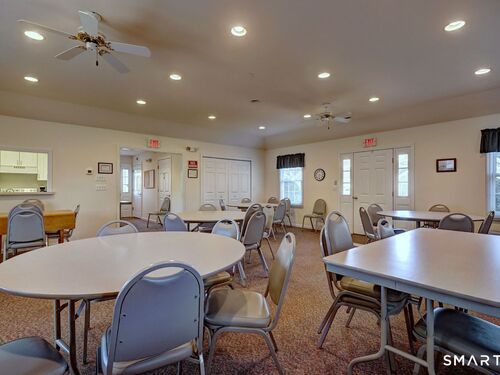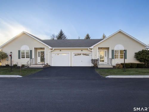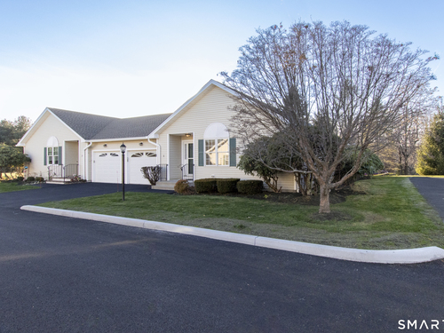 This gorgeous, sun-splashed end-unit ranch in Trumbull's sought-after 55+ Long Hill Village offers beauty, convenience, and easy, low-maintenance living! Features include an updated kitchen with quartz counters, minimal-step entry one-level living, 2 fully updated baths, vaulted ceilings, hardwood floors throughout, and a huge, full basement for all your storage needs. The spacious dining room living room combination features a gas-operated fireplace, vaulted ceilings, and access to a sunny composite deck (furniture and accessories included) overlooking the private, grassy yard. This home is ideal for downsizing without sacrificing space or lifestyle. The gorgeous eat-in kitchen with hardwood floors features ample upgraded cabinetry and space for a breakfast table. The primary suite includes a walk-in closet and a full bath with a step-in shower, while the second bathroom offers a tub/shower combo. Both baths feature granite-topped vanities. A main-level laundry area and the direct garage access add everyday ease. Enjoy peace of mind with a newer roof, driveway, central air, and efficient natural gas heat. A beautifully landscaped exterior surrounds the home, adding charm and curb appeal. Just a few doors away, the clubhouse features a full kitchen, seating tables, and hosts resident events and clubs, as well as a terrific space where owners can reserve the hall to host their own private parties.