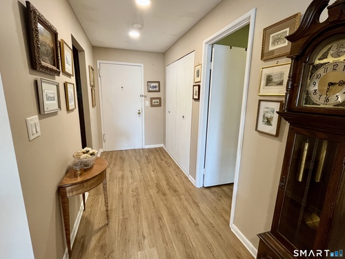 Enjoy the best of coastal Connecticut in this beautifully remodeled 1-bedroom, 1-bath ranch-style unit in Tide Harbor, a condominium complex perfectly situated along the scenic Housatonic River. This delightful home offers an open-concept living & dining room combination with sliders leading to a private balcony showcasing peaceful water views ideal for both relaxing and entertaining. The striking new eat-in kitchen boasts handsome maple cabinetry, granite countertops, soft-close drawers, a lazy susan, pull-out garbage, garbage disposal, tile backsplash, breakfast bar, & newer GE appliances in 2022 combining style & functionality. A spacious primary bedroom with walk-in closet & a full bath with double sinks and bathtub complete the thoughtfully designed layout. Additional highlights include striking and easy to maintain luxury vinyl flooring, a welcoming foyer with double entry closet, generous room sizes, an abundance of new recessed lighting, new energy-efficient TP windows and sliders in 2022, & a new Rheem water heater. Residents enjoy the convenience of a common laundry on each floor, shared basement storage, & one assigned parking space along with ample parking for guests. Close to shopping, restaurants, the train station & major commuting routes offering comfort and convenience to its residents. Just minutes away is the charming Lordship area known for its beautiful coastline, scenic seawall, golf course, & nearby beaches perfect or morning walks & sunset views.