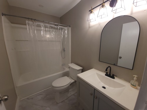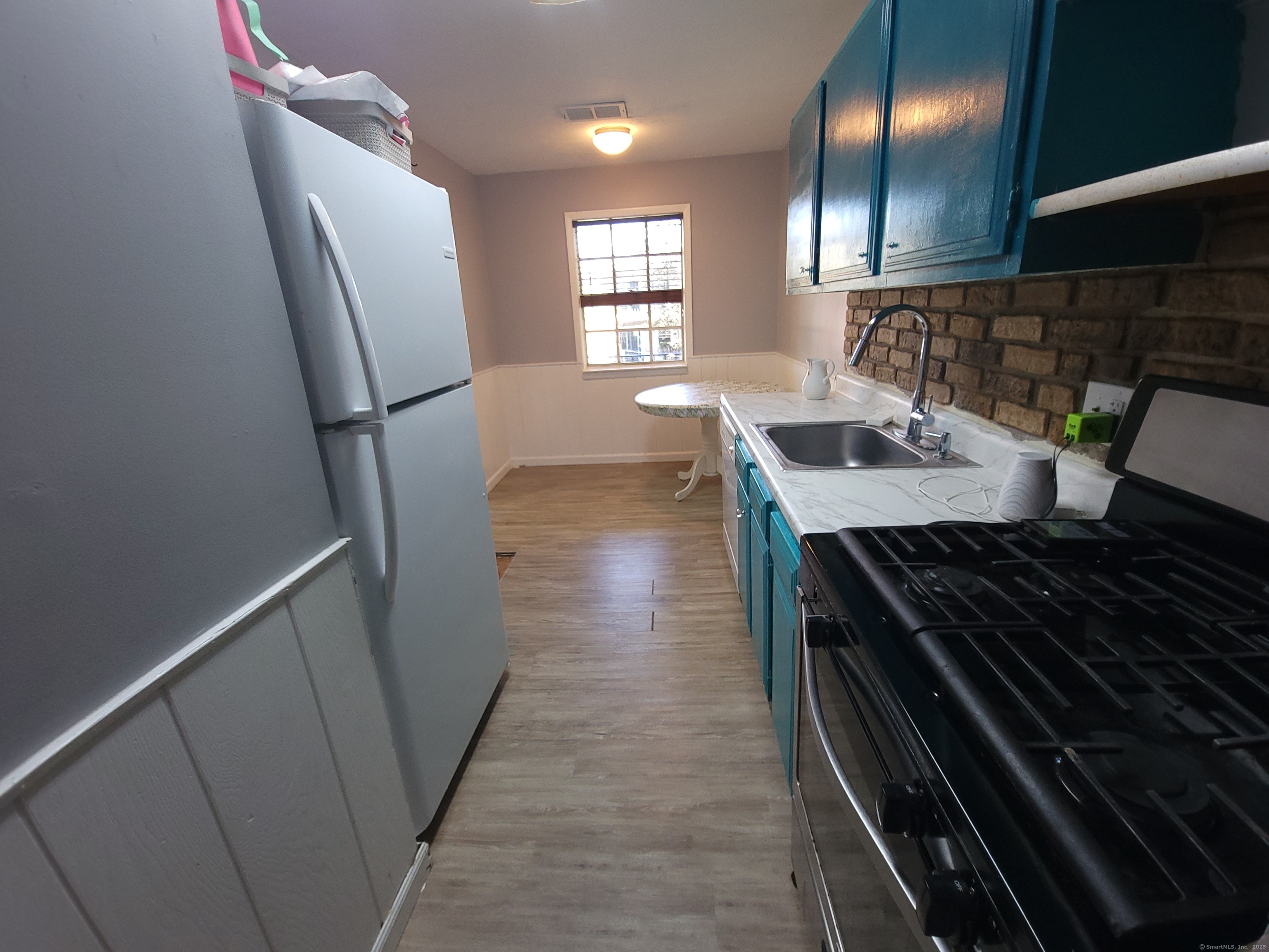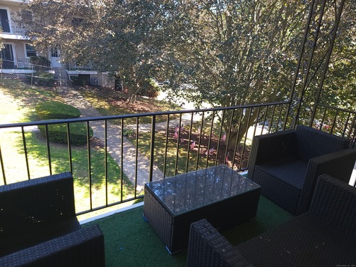 This rare and spacious 2Br., 2Ba. ranch-style condo offers 1,297 sq.ft. of living space in a highly confident location - just minutes to the Merritt Parkway, SHU, shopping, dinning and entertaining. Step inside to a bright, airy living room perfect for entertaining, a formal dinning room and eat-in kitchen. A sliding door opens to your private balcony overlooking beautiful tree lined courtyard. The generous suite features it's own private bathroom, while the second bedroom is paired with refreshed full bath. Added convenience includes in-unit laundry, ample closet space, basement storage and off stree parking. Enjoy central air and the amenities of a well-maintained community with a pool. Recent updates include an updated bathroom, flooring and a newer washer/dryer. Top-foor unit with no neighbors above. Now available with 20% down conventional financing! Ready for personal touches to make their own! Must be owner occupied.