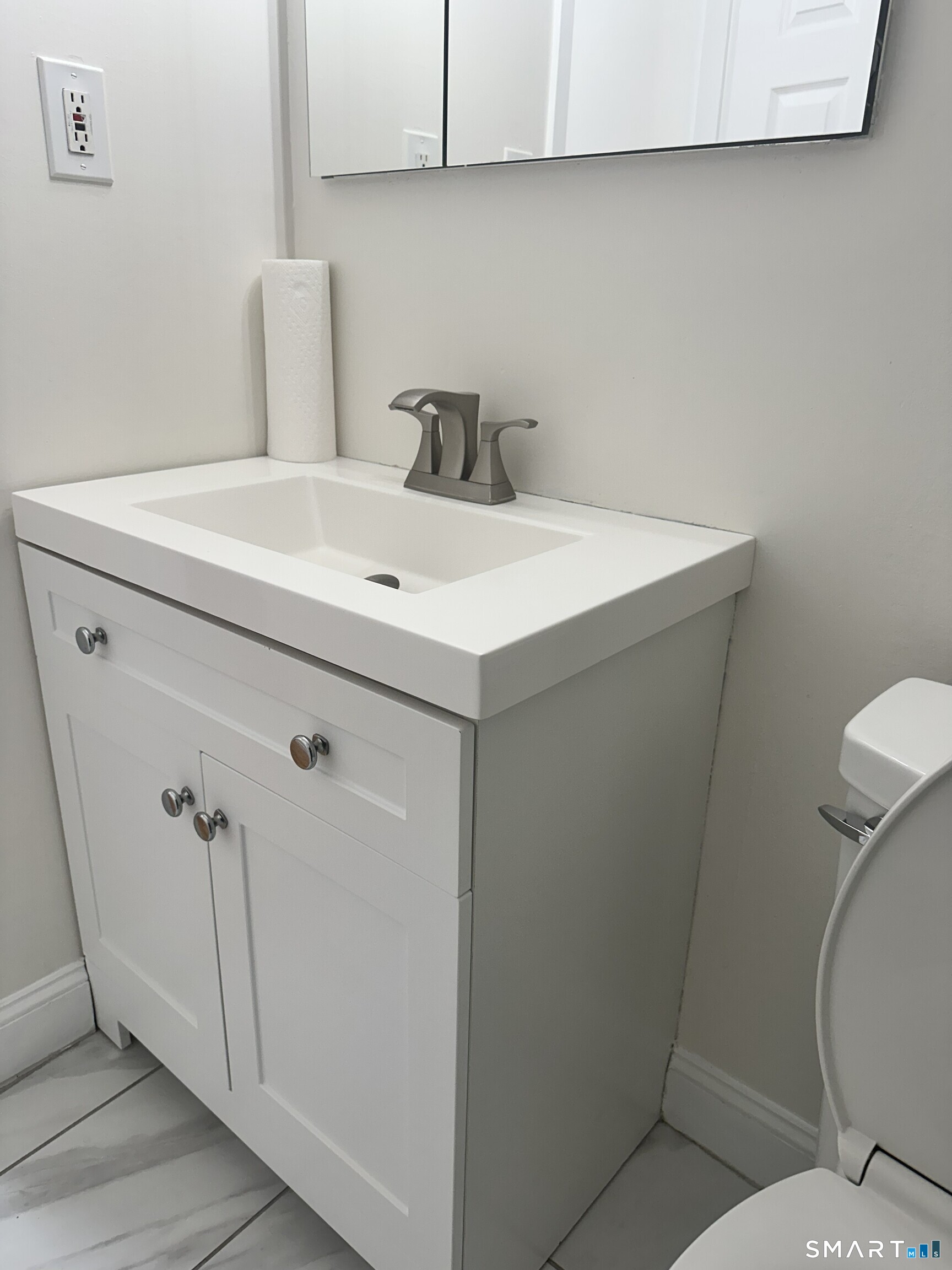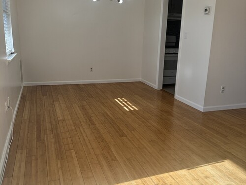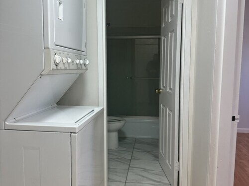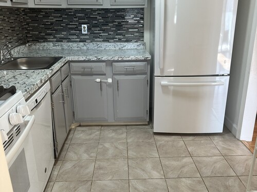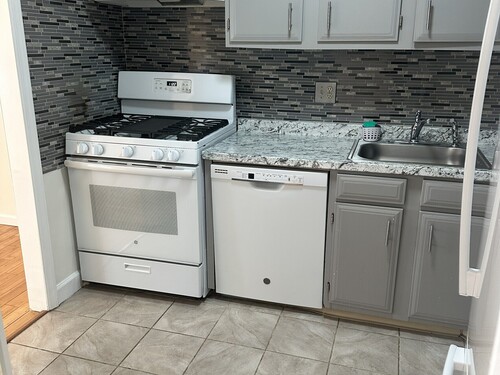 Fully renovated 1-bedroom condo in Bridgeport's desirable North End! This sun-filled second-floor unit offers 825 sq ft of open-concept living for modern comfort and efficiency. The bright living and dining area features hardwood floors, lighting, and sliding doors to a private covered balcony. The kitchen includes gray shaker cabinets, beautiful countertops, a stunning backsplash, with white appliances. The spacious bedroom offers double closets and great natural light, while the updated bathroom features modern finishes and glass shower doors. Additional highlights include central air, in-unit laundry, private basement storage, and assigned parking (#44).