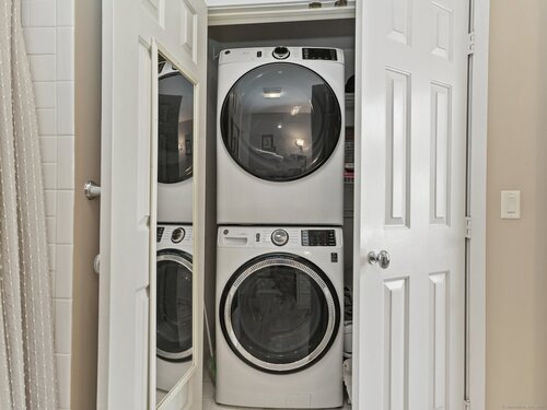 Welcome to Middlesex Commons-Darien's most coveted condominium community! This stunning upper level (2nd floor) unit offers the perfect blend of luxury, comfort, & convenience. From gleaming hardwood floors to a beautifully updated kitchen & sparkling baths, every detail has been thoughtfully curated. Step out onto your private deck and take in the impeccably landscaped grounds. Inside, you'll love the open concept layout enhanced by vaulted ceilings & an abundance of natural light pouring in through expansive windows & 2 strategically placed skylights. The liv rm features rich hardwood flooring & a cozy wood-burning fp, & the dining area is perfectly positioned for effortless entertaining or relaxed everyday meals. The spacious primary suite includes a generous walk-in closet, an en-suite bathroom, and the convenience of an in-unit full-size washer & dryer. A stylish powder room adds a perfect touch for guests. Outside, enjoy resort-style amenities w/ a saltwater, heated, in-ground pool & a fully equipped pool house-ideal for sunbathing or a refreshing swim. Hosting overnight visitors? Take advantage of the community's charming "guest cottage" that can be rented for short-term stays. With downtown Darien's exciting revitalization, you'll be just steps from shops, restaurants, & everyday conveniences. With easy access to I-95 & Metro North, commuting is a breeze. Come experience the exceptional lifestyle at Middlesex Commons-where home feels like a retreat!
