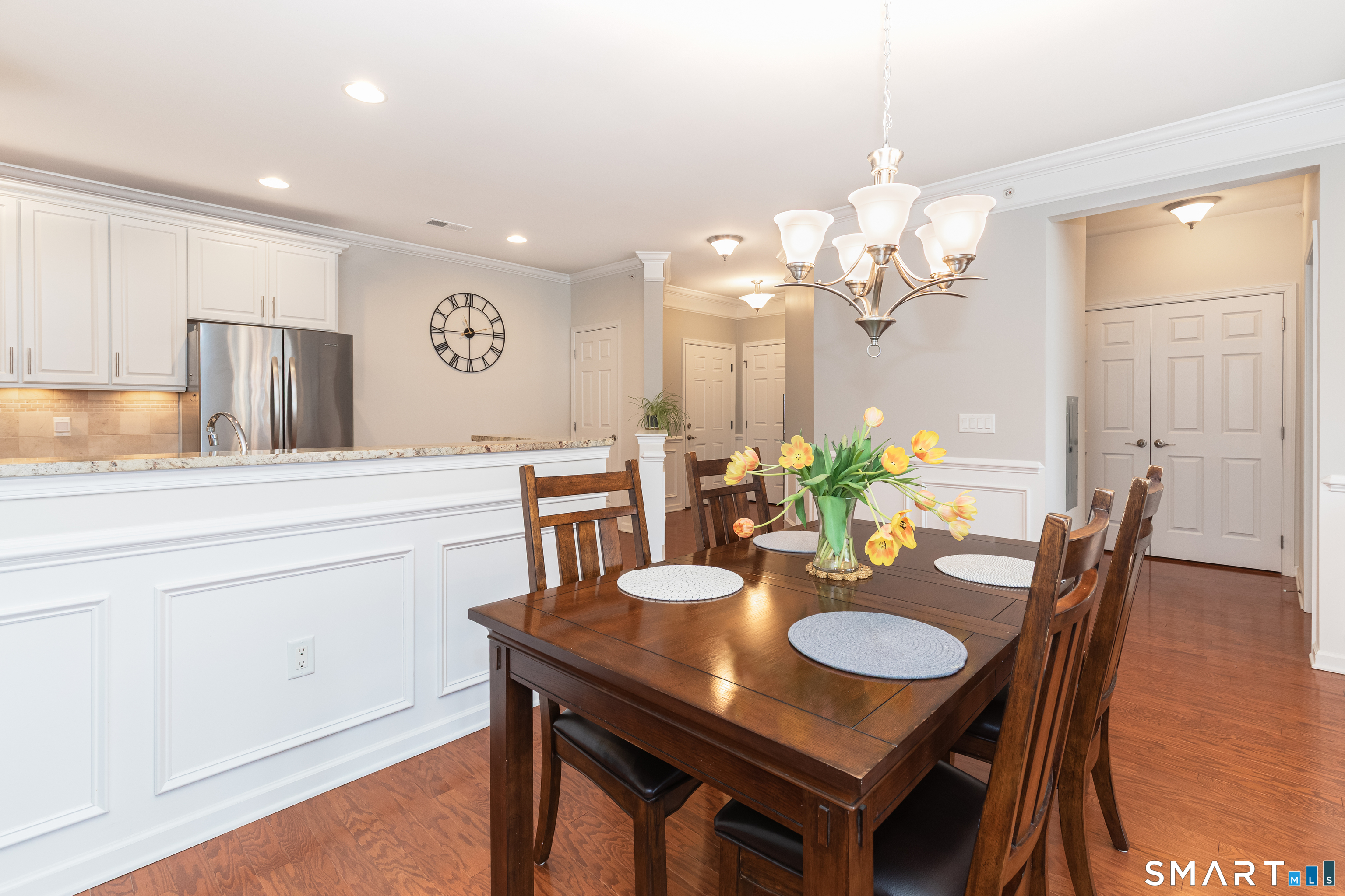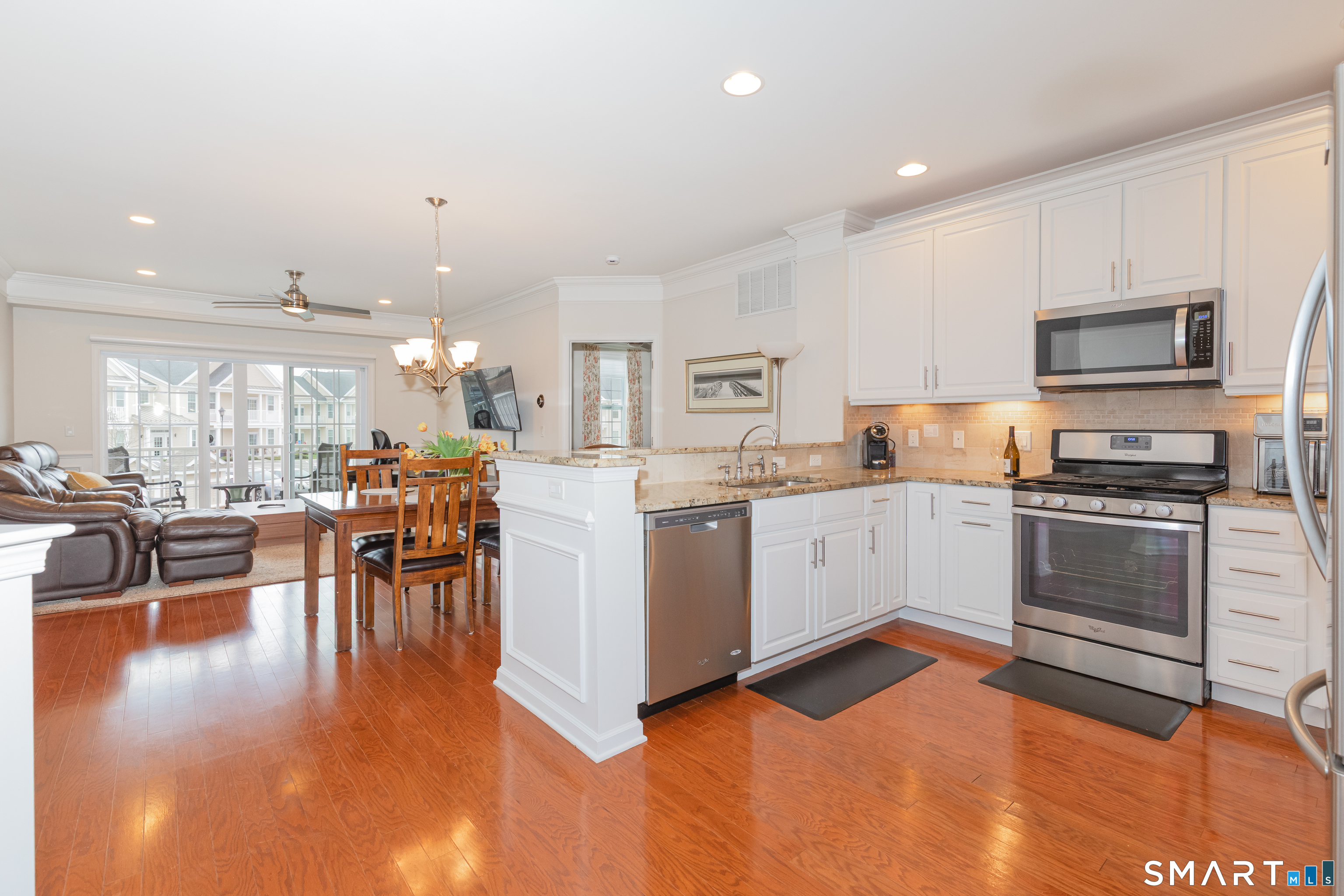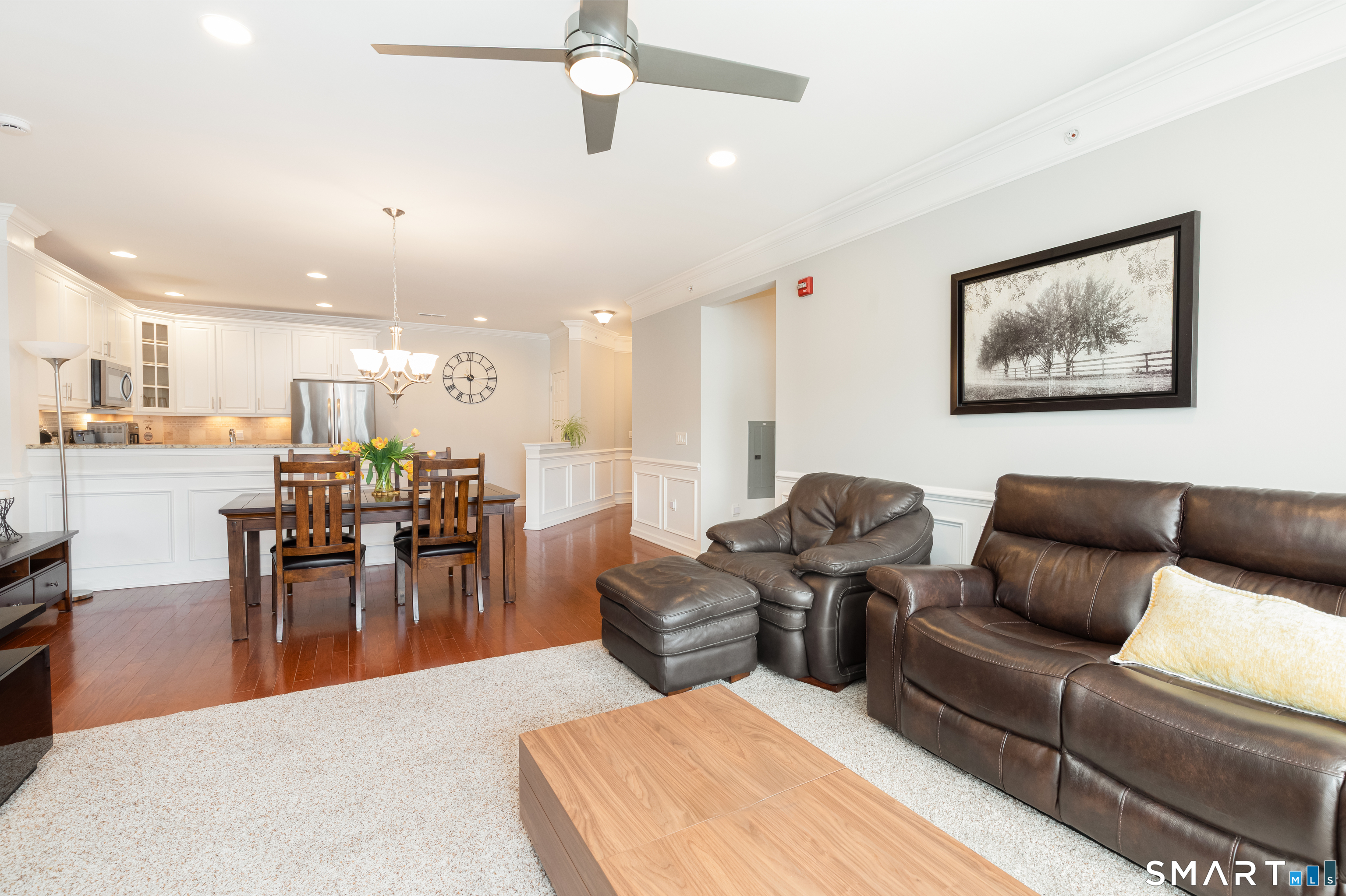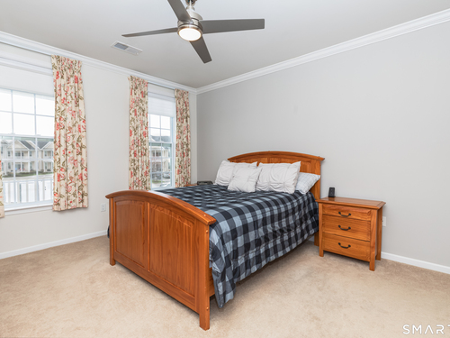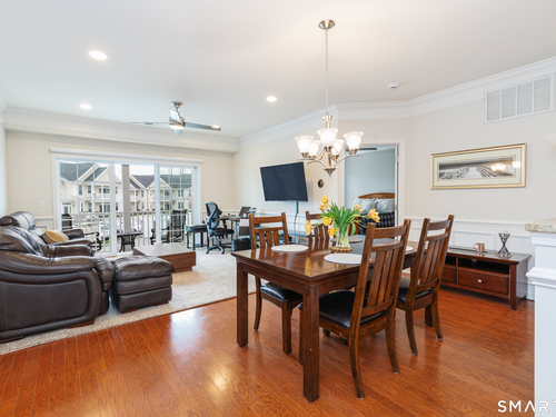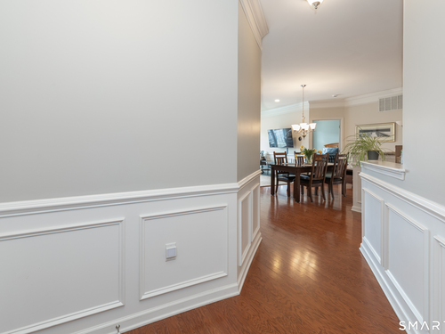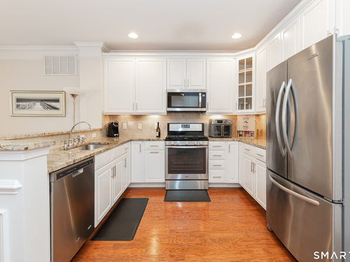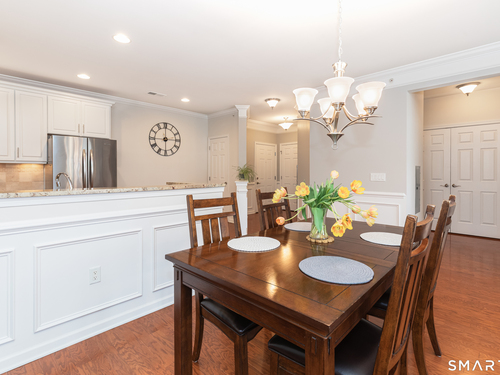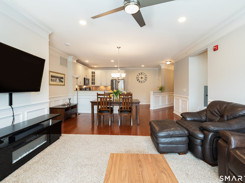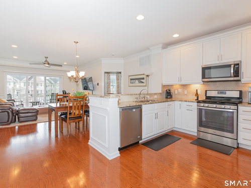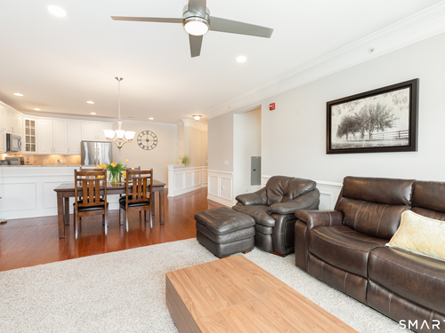 Welcome to Rivington by Toll Brothers! This sun drenched unit welcomes you with gleaming hardwood floors and elegant wainscoting, creating an immediate sense of home. The open concept layout features 9ft ceilings, crown molding and recessed lighting perfect for both everyday living and entertaining. The beautifully appointed kitchen offers white cabinetry, granite countertops and stainless steel appliances, seamlessly flowing into the spacious living and dining area. Step out onto your private balcony to enjoy morning coffee or unwind with a glass of wine at the end the day. The oversized primary suite includes a walk-in closet and custom bathroom with double sink vanity and floor to ceiling tiled shower. A well separated second bedroom provides added privacy, along with an additional full bathroom featuring custom floor to ceiling tile with linen closet. Additional highlights include Whirlpool washer and dryer in unit, nest thermostat plus a generous climate controlled 8x14 storage unit. Enjoy resort style amenities, including pools, club house, and reaction areas all within walking distance. Conveniently located near restaurants, shopping and Ridgefield town center, this home is a commuter's dream approximately one hour to NYC and just 10 minutes to Brewster Metro north train station. Come see for yourself and enjoy year round vacation style living!