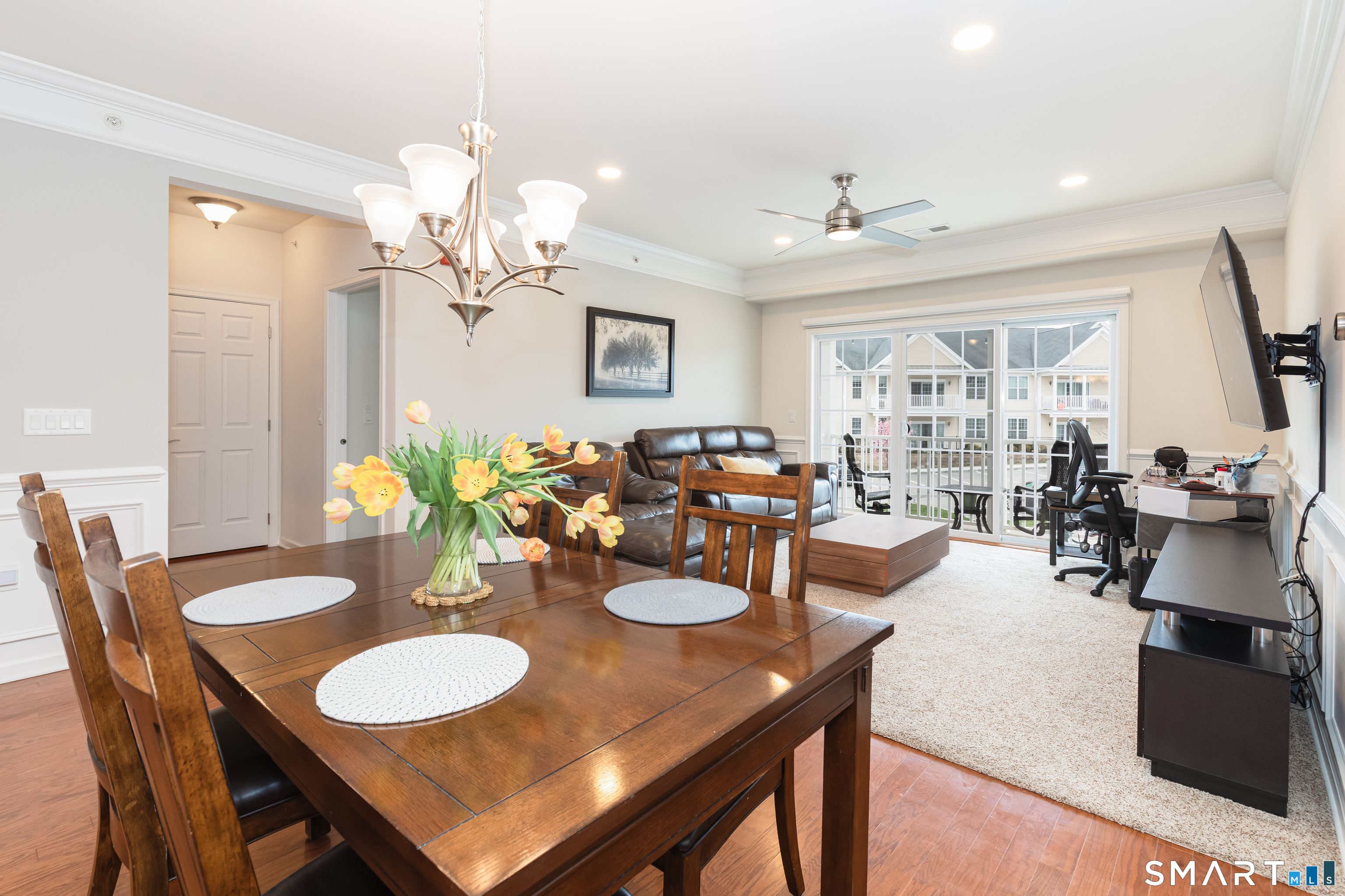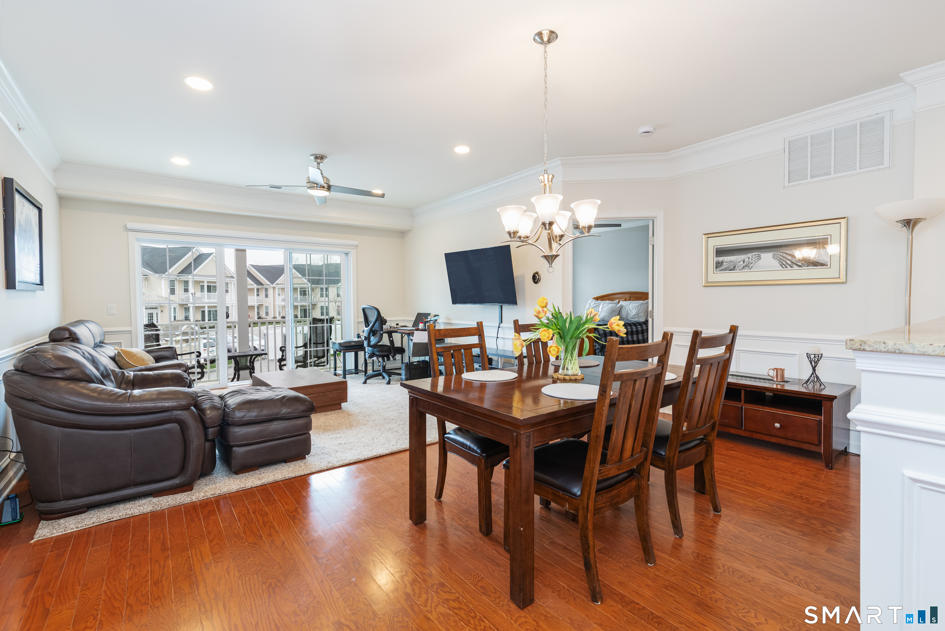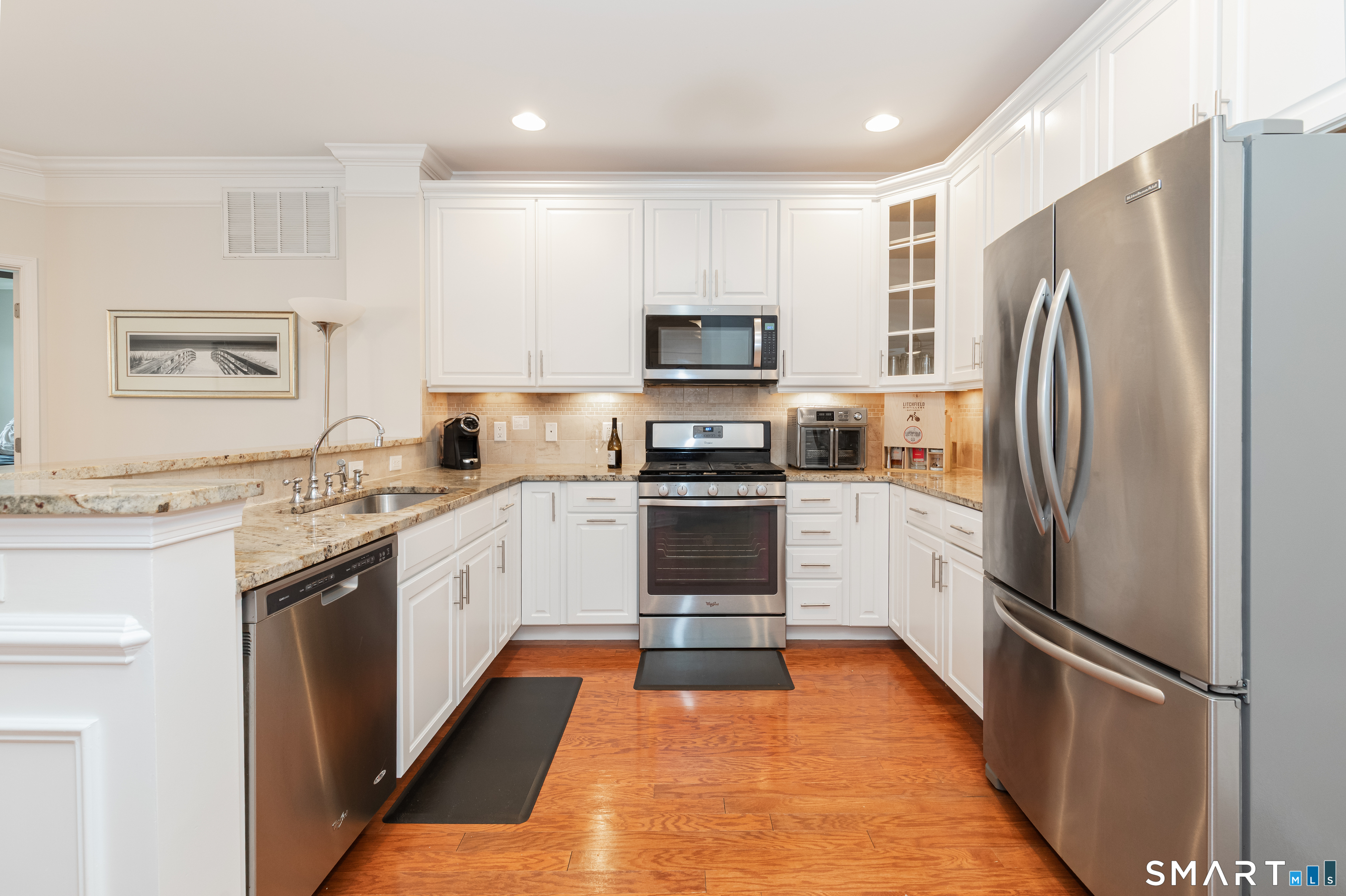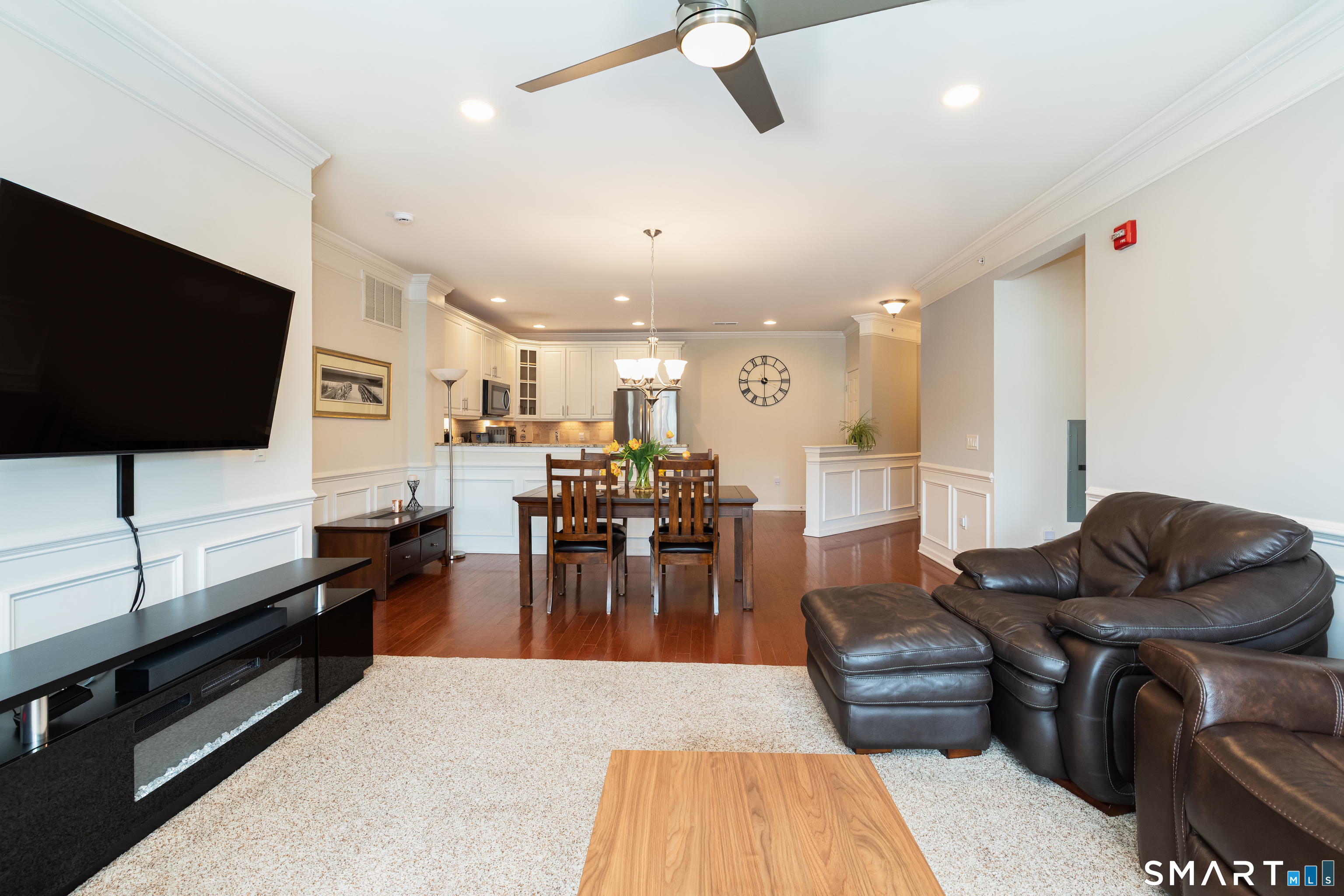 Welcome to Rivington by Toll Brothers! This sun drenched unit welcomes you with gleaming hardwood floors and elegant wainscoting, creating an immediate sense of home. The open concept layout features 9ft ceilings, crown molding and recessed lighting perfect for both everyday living and entertaining. The beautifully appointed kitchen offers white cabinetry, granite countertops and stainless steel appliances, seamlessly flowing into the spacious living and dining area. Step out onto your private balcony to enjoy morning coffee or unwind with a glass of wine at the end the day. The oversized primary suite includes a walk-in closet and custom bathroom with double sink vanity and floor to ceiling tiled shower. A well separated second bedroom provides added privacy, along with an additional full bathroom featuring custom floor to ceiling tile with linen closet. Additional highlights include Whirlpool washer and dryer in unit, nest thermostat plus a generous climate controlled 8x14 storage unit. Enjoy resort style amenities, including pools, club house, and reaction areas all within walking distance. Conveniently located near restaurants, shopping and Ridgefield town center, this home is a commuter's dream approximately one hour to NYC and just 10 minutes to Brewster Metro north train station. Come see for yourself and enjoy year round vacation style living!