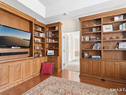 Vaulted Ceiling, Book Shelves, Built-Ins, Hardwood Floor