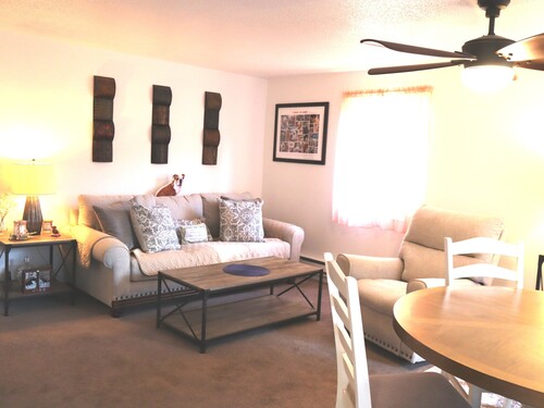 Move in Ready...Two Bedroom, one bath, top floor Ranch style condominium, Freshly painted, newer appliances (stove, microwave, and wall air conditioner never used). Electrical has updated panel and outlets, along with all new ceiling fans. Eat in kitchen with plenty of light. Dining/living room combination with sliders opening to spacious deck. Bathroom has been updated with a marble top vanity, comfort height toilet, and oversized linen closet. Plenty of closet space for storage. Walking distance to grocery store, shopping, restaurants, and bus line. Community pool and laundry area. Easy access to I-84. Some furniture included...ask agent. Property being sold as is. **Subject to probate approval
