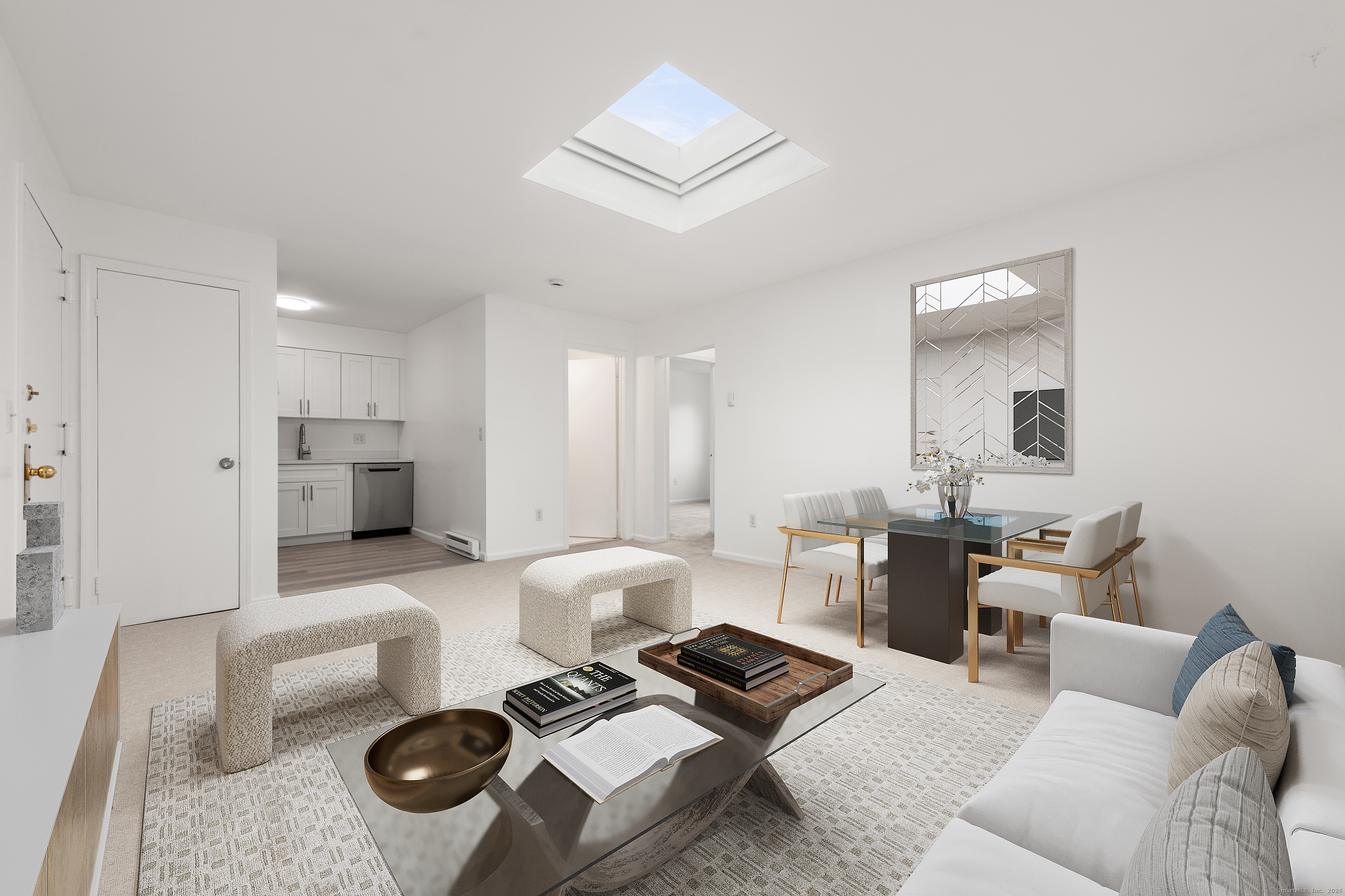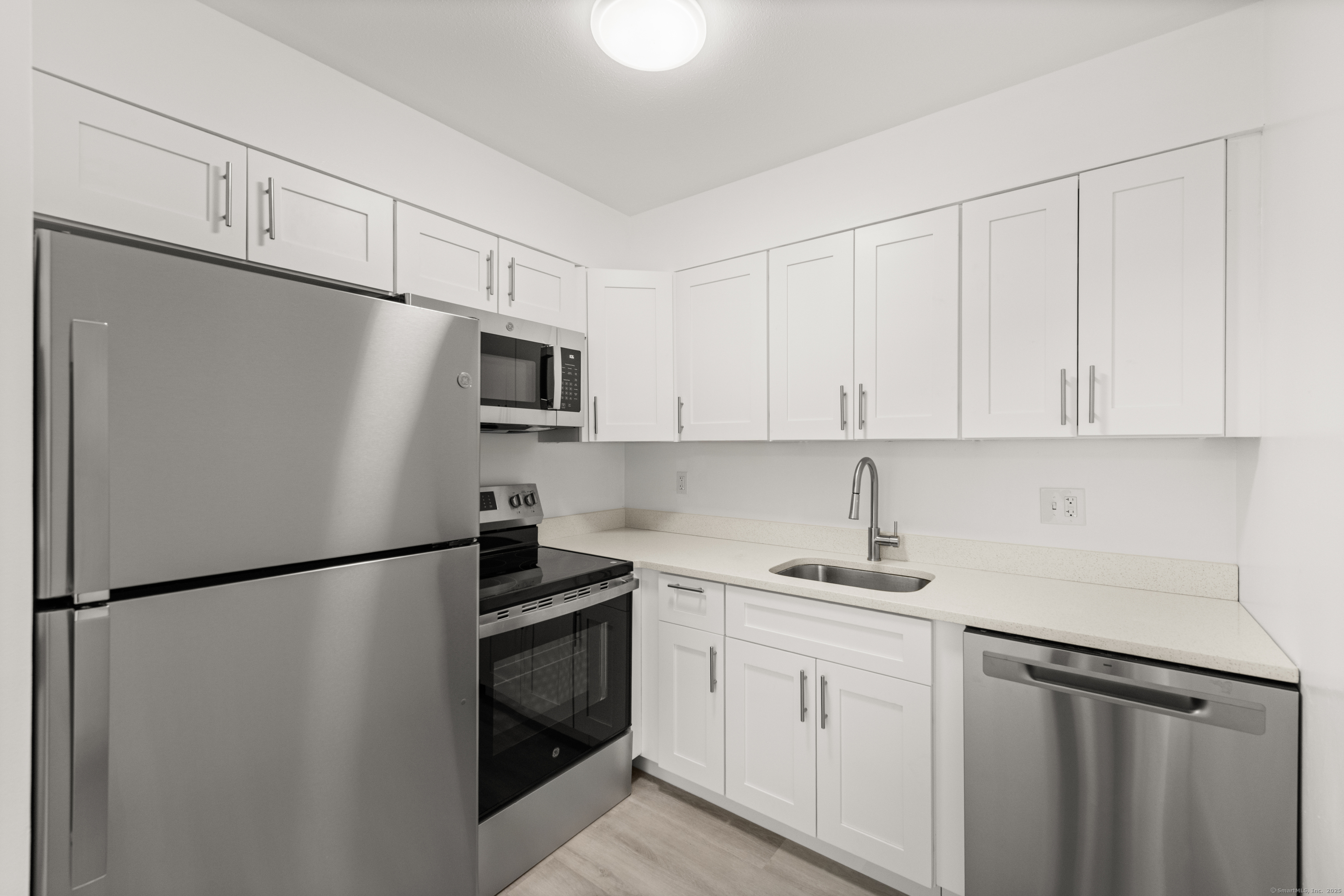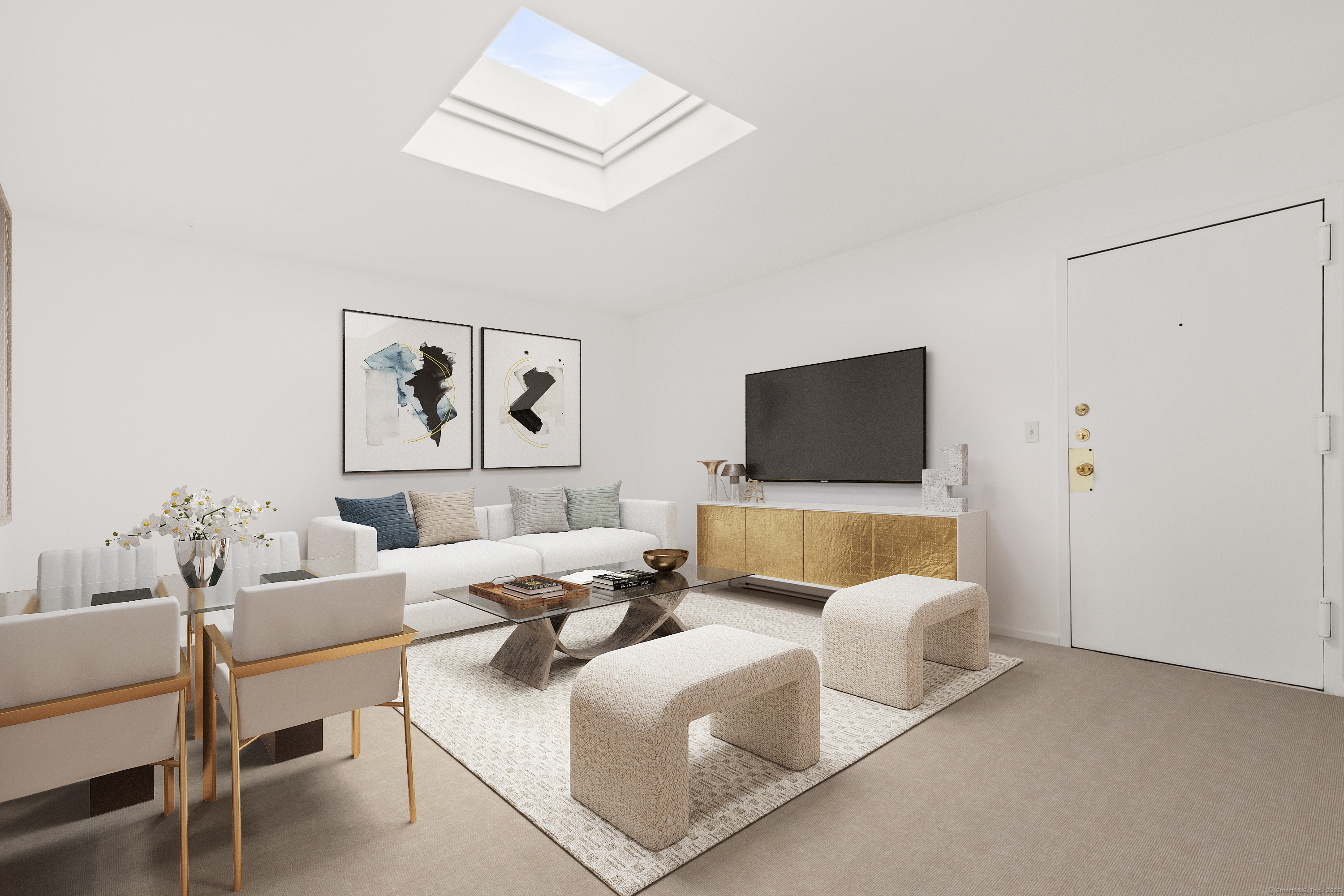 Welcome to this beautifully updated 2-bedroom, 1-bath condo in the heart of Stamford's sought-after Cove neighborhood. Freshly painted throughout with brand new carpeting, this home is move-in ready and full of natural light-including a spacious living room with a stunning skylight. The fully renovated kitchen features all-new stainless steel appliances, quartz countertops, modern cabinetry, and sleek new flooring. The bathroom has been upgraded with a new vanity, ceramic shower backsplash, contemporary tile floors, and a new toilet. Each bedroom enjoys sunrise exposure and full-size closets. Additional perks include 1 assigned parking spot in a gated garage. Unbeatable location-just .3 miles to Chelsea Piers, .5 miles to both Rogers International School and scenic Cove Island Park, and less than a mile to I-95. You're only 1.6 miles from Stamford Train Station, offering convenient Metro-North and Amtrak access. Also located on the same road as KT Murphy School. Enjoy coastal living with urban convenience-this is a must-see!