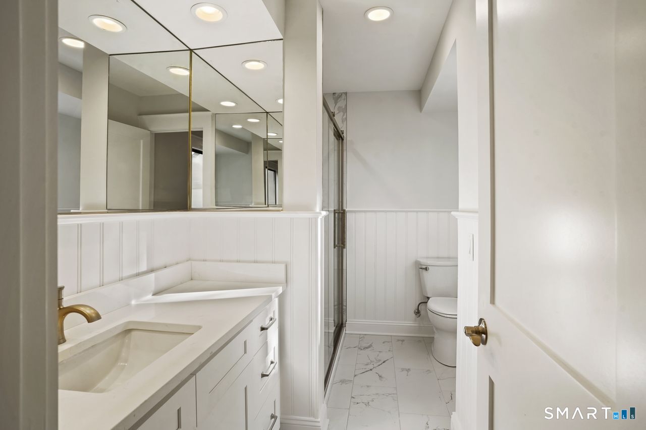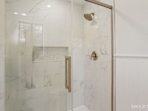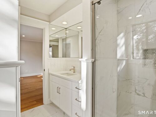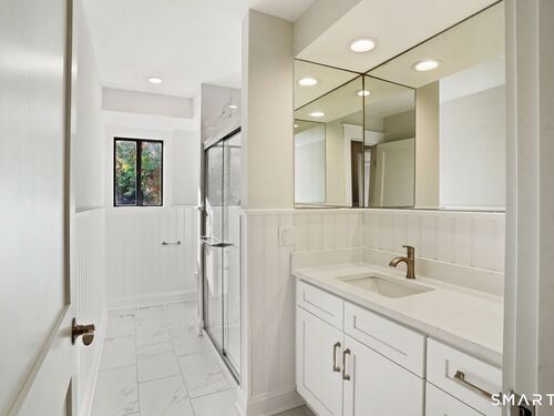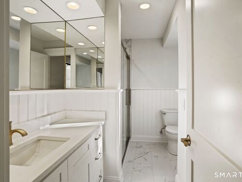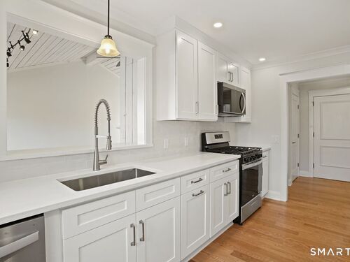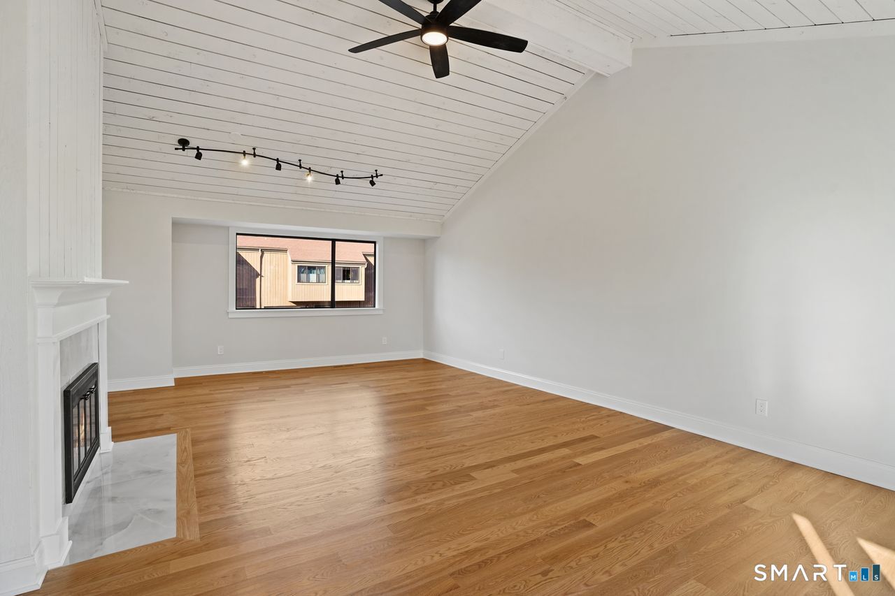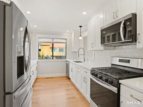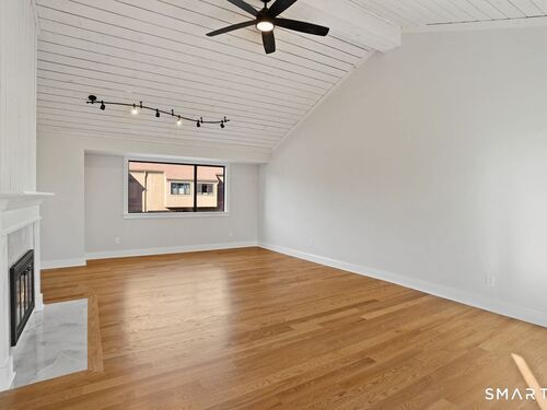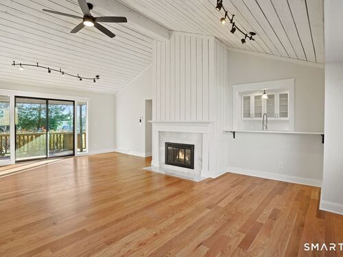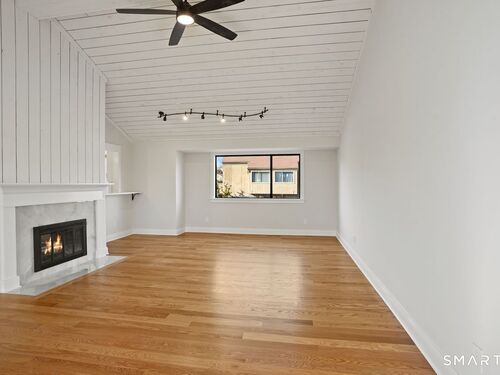 Welcome to this beautifully renovated Wolcott model offering resort-style living w/sweeping views of the golf course! This 2 bedroom 3 full bathroom home has been transformed w/ modern finishes, ALL NEW mechanicals & exceptional attention to detail. The main level features gleaming HW floors throughout, a spacious open layout anchored by a charming wood-burning fireplace-perfect for cozy evenings or enjoy a cup of coffee on the large deck overlooking the lush fairway. The fully updated kitchen boasts quartz countertops, stainless steel appliances & beautiful cabinetry. The primary BR offers comfort & convenience w/generous closet space & a beautifully updated full bath. The second bedroom is ideal guests or a home office. The partially finished lower level expands your living space w/wall to wall carpeting, laundry room, a large rec room/family room & an additional full bathroom-perfect for visiting guests, hobbies, personal gym or just your own private retreat. Move-in ready & meticulously updated, this exceptional unit blends modern comforts w/ the maintenance-free resort like lifestyle this 55+ community is known for. Enjoy the 3 pools (1 heated) 2 clubhouse, tennis, pickleball, 40 social clubs. Close to shopping, restaurants, Short Beach, train, Blackhawk Golf course, Merritt & 95. Monthly HOA $556.63 includes basic cable & internet, Quarterly district tax $615.90, Mandatory one-time community contribution paid at closing $1947.86. Special roof assessment pending vote.