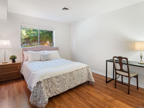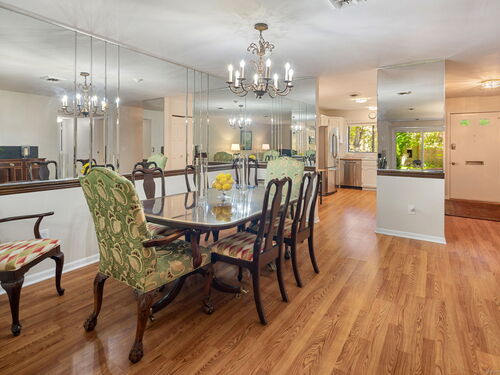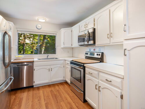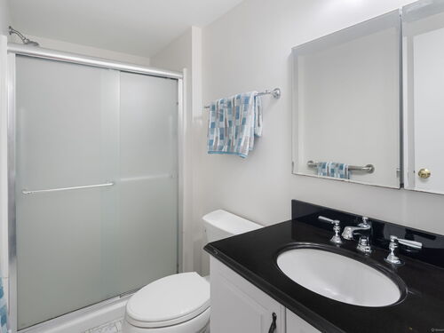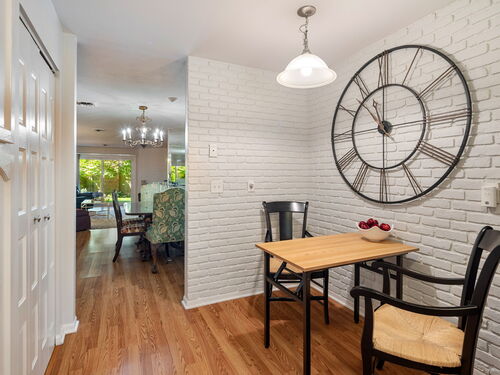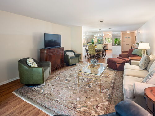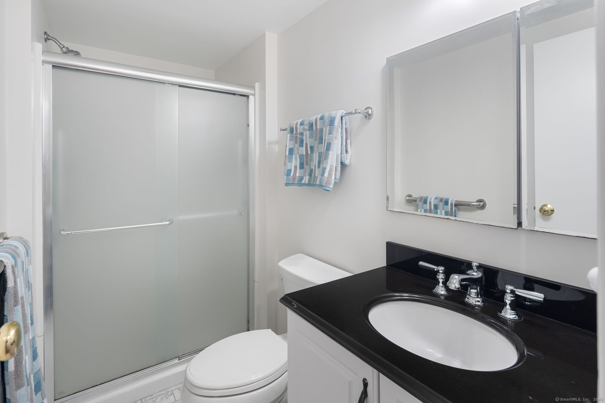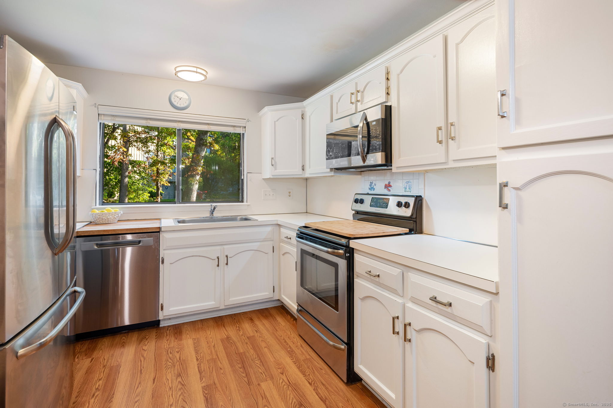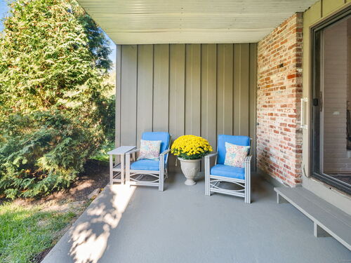 Exceptional 2-bedroom 2 bath ranch home in the coveted Ledgebrook Condominium Community. Just two steps up and into the comfort and convenience of this ground level ranch. This home has an open and inviting living room with a cozy corner fireplace and sliders to a private terrace. There is ample space for a full dining room table and sideboard in the dining area. The eat in kitchen is bright and cheery with white cabinets, stainless fridge and dishwasher. The primary suite boasts an updated full bath and ample closet space including a walk in. The second bedroom also has good closet space and uses the freshly renovated hall bathroom with a walk-in shower. Laundry and a dedicated storage room are in the unit as well as a locked storage space in the nearby building. The Ledgewood complex is known for its scenic beauty and incredibly amenities including a heated pool and spa, a fitness center, library, and walking trails. Ledgebrook is also just minutes away from shopping, dining, public transportation, major highway, medical center and even a public golf course. Don't miss this one!! Note: Homeowner has paid off the special assessment so common charges are only $633!!