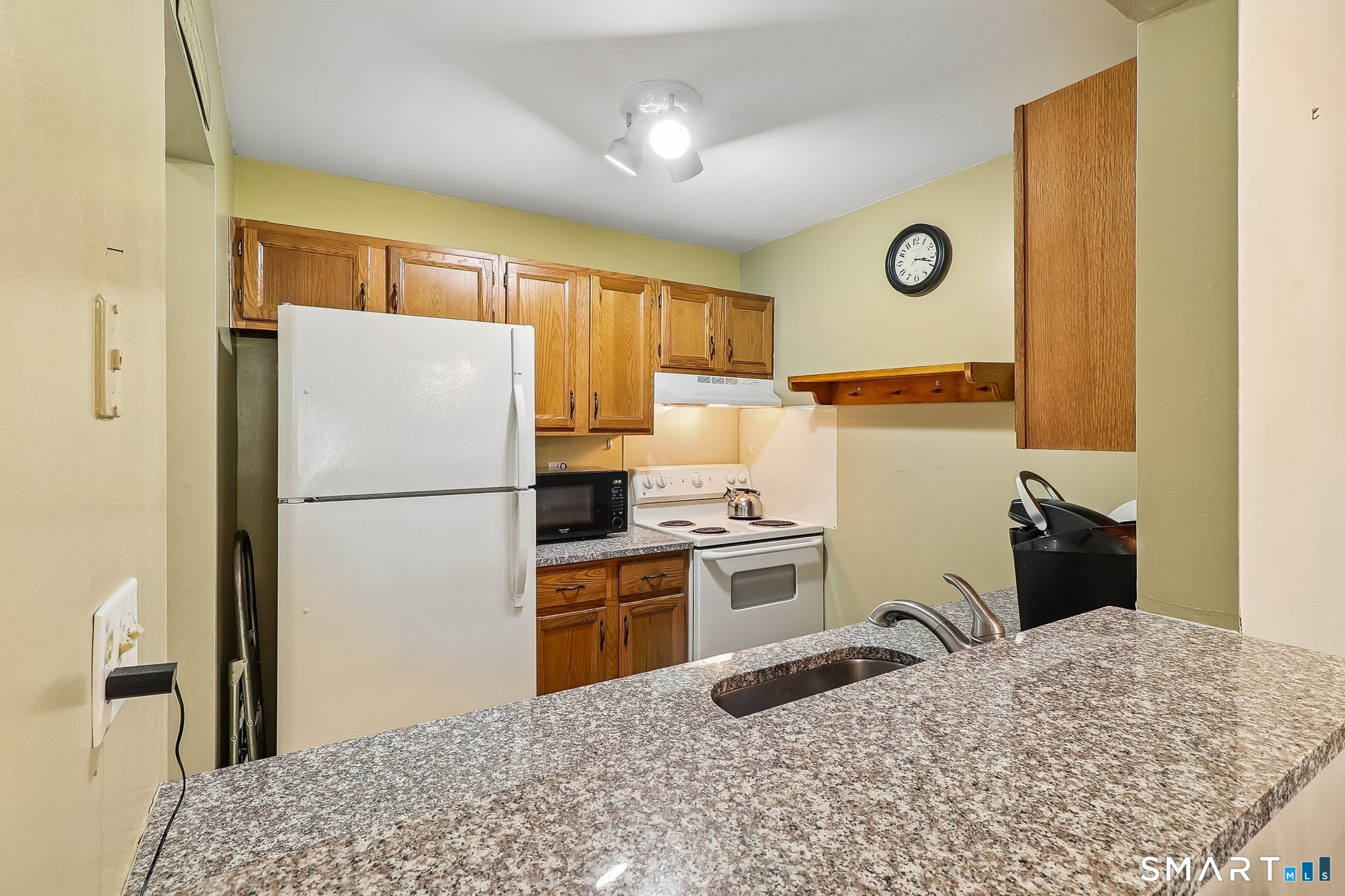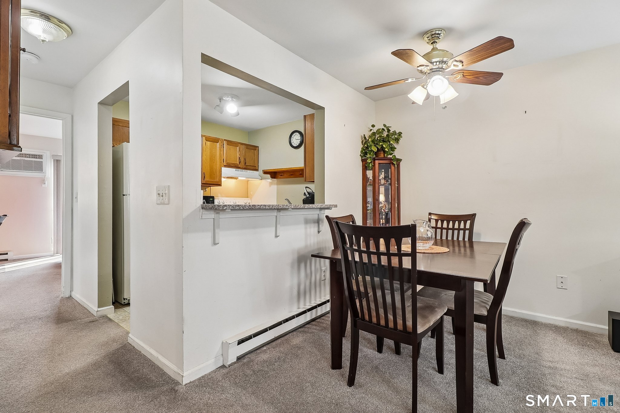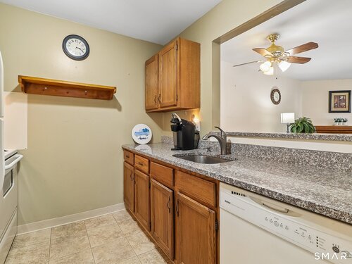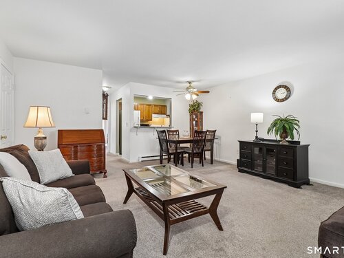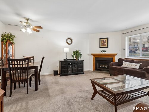 Whether you are starting out, downsizing, or simply tired of paying rent, this well maintained one bedroom ranch style condo is the perfect choice. Located in the desirable Park Ridge community, this bright and functional unit offers true one level living with no steps and is situated just steps from your designated parking space. The open living/dining area features wall-to-wall carpeting for added comfort, a cozy corner wood burning fireplace with a slate hearth. along with two wall A/C units for warm summer days (one in the living room and one in the bedroom). The kitchen includes tile flooring, granite countertops, and a convenient pass through to the main living area that also serves as a breakfast bar. The full bath offers tile flooring, an updated vanity, and dual access from both the hallway and the bedroom. The spacious bedroom includes a large walk in closet and direct access to a private patio through a sliding glass door. A dedicated laundry room provides a full size washer and dryer, additional shelving, and a brand new hot water heater installed February 2026. Park Ridge, in addition to being conveniently located, offers excellent amenities including an inground pool and playground, and is just minutes from Candlewood Lake, shopping, dining, and major highways. This is your opportunity for comfortable, low maintenance one floor living.