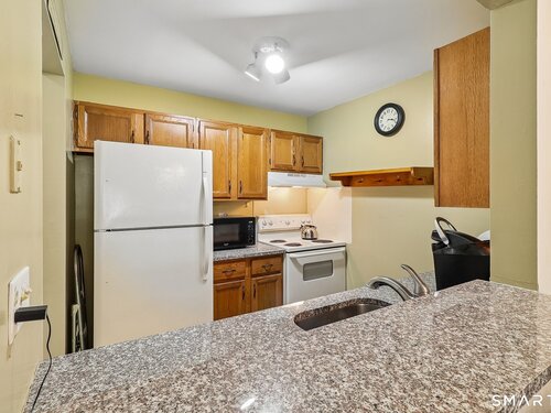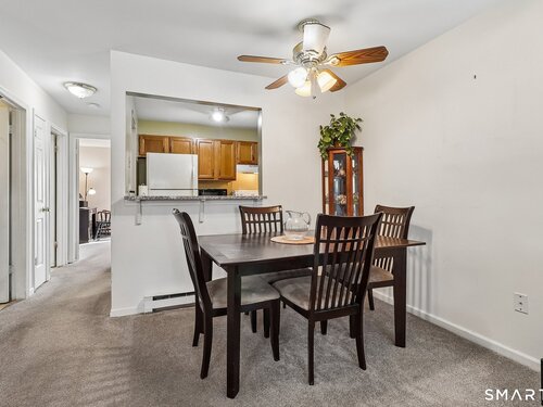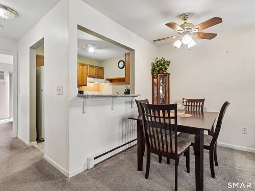 Whether you are starting out, downsizing, or simply tired of paying rent, this well maintained one bedroom ranch style condo is the perfect choice. Located in the desirable Park Ridge community, this bright and functional unit offers true one level living with no steps and is situated just steps from your designated parking space. The open living/dining area features wall-to-wall carpeting for added comfort, a cozy corner wood burning fireplace with a slate hearth. along with two wall A/C units for warm summer days (one in the living room and one in the bedroom). The kitchen includes tile flooring, granite countertops, and a convenient pass through to the main living area that also serves as a breakfast bar. The full bath offers tile flooring, an updated vanity, and dual access from both the hallway and the bedroom. The spacious bedroom includes a large walk in closet and direct access to a private patio through a sliding glass door. A dedicated laundry room provides a full size washer and dryer, additional shelving, and a brand new hot water heater installed February 2026. Park Ridge, in addition to being conveniently located, offers excellent amenities including an inground pool and playground, and is just minutes from Candlewood Lake, shopping, dining, and major highways. This is your opportunity for comfortable, low maintenance one floor living.