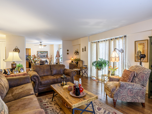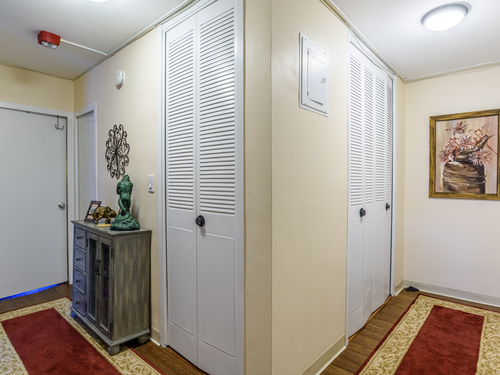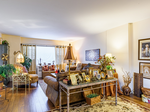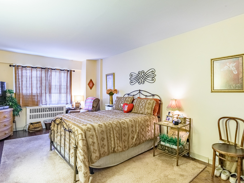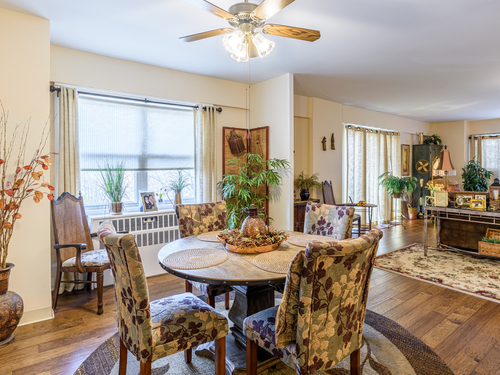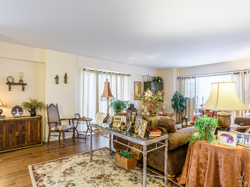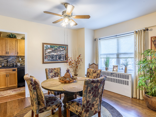 This larger one-bedroom, one-bath unit is perfectly situated at the end of the hall for added privacy. The open floor plan features a generous living and dining area, highlighted by a newer sliding door that leads to a private deck. Natural light pours into the space, creating a warm and inviting atmosphere. The bedroom offers ample space and multiple closets for convenient storage. Located close to dining, shopping, public transportation, and the train station, this home combines comfort with accessibility. The HOA covers heat, hot water, grounds maintenance, snow removal, water, sewer, property management, flood, and building insurance. Also includes a 24-hour doorman.
