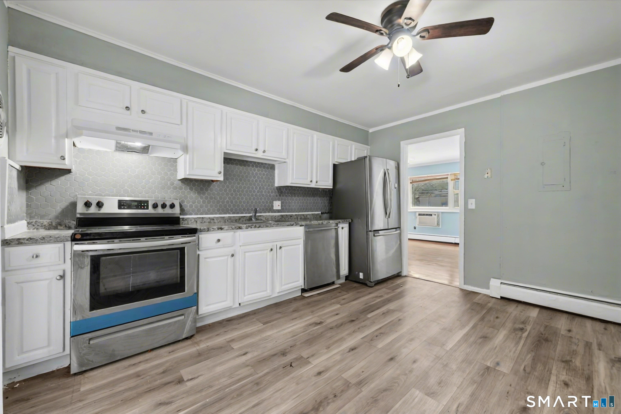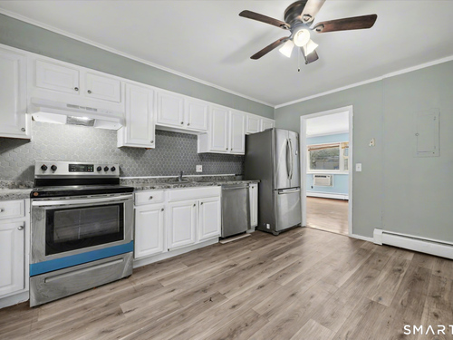 *MOTIVATED SELLER* Live in the heart of convenience in this beautifully maintained 2-bedroom ranch condo, nestled in Bridgeport's coveted North End. The home features classic hardwood floors and an inviting eat-in kitchen. Both bedrooms are spacious and comfortable, and the inclusion of in-unit laundry adds a layer of modern convenience. The building offers a shared basement which includes a dedicated, assigned storage unit, providing extra space for all your belongings. But what truly sets this condo apart is its unbeatable location. You'll be just minutes from a host of amenities, including Main Street's bustling scene, the Trumbull Mall for all your shopping needs, and St. Vincent's Hospital. Commuting is a breeze with easy access to all major highways. You'll also have a guaranteed assigned parking spot, with plenty of on-street parking for company. Don't miss this opportunity to own a home that perfectly balances comfort and a prime location