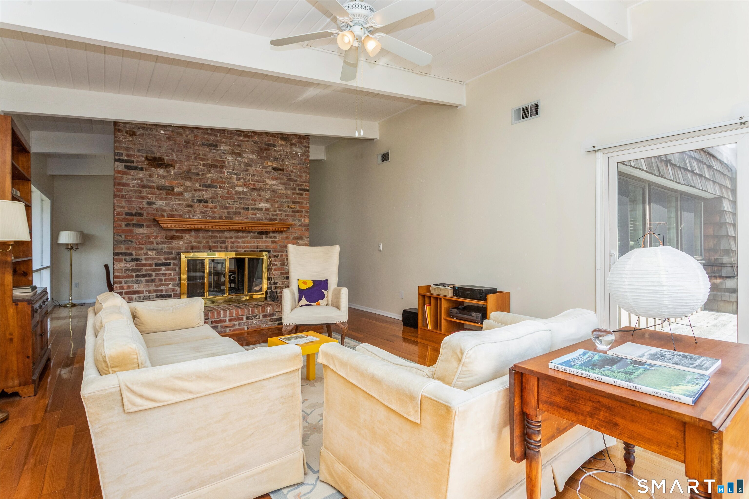 9 ft+ Ceilings, Fireplace, Sliders, Hardwood Floor