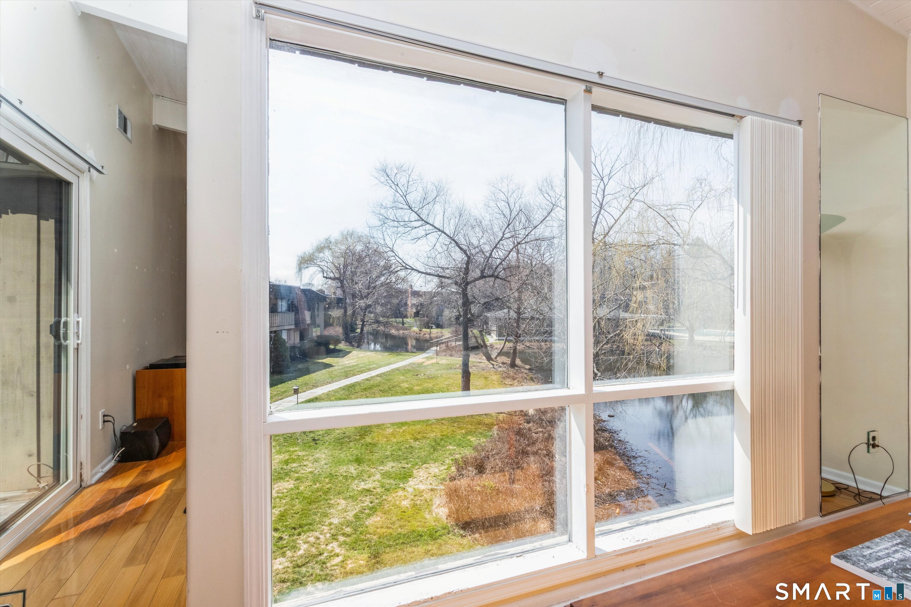 Enjoy the best of both worlds-everyday conveniences just minutes away from train stations, major highways, shopping and dining-paired with a peaceful setting overlooking woods and ponds. This sun-filled 3 bedroom, 2 full bath townhouse in the Ledgebrook complex offers a bright, open feel with vaulted ceilings and hardwood floors throughout. A see-through fireplace creates a natural separation between the living and dining rooms while maintaining an airy flow, ideal for both everyday living and entertaining. Generous closet space can be found throughout the home. Situated on 20 acres, the community provides a welcoming outdoor setting for walking and enjoying the surroundings, along with a pool and an exercise room for added convenience.