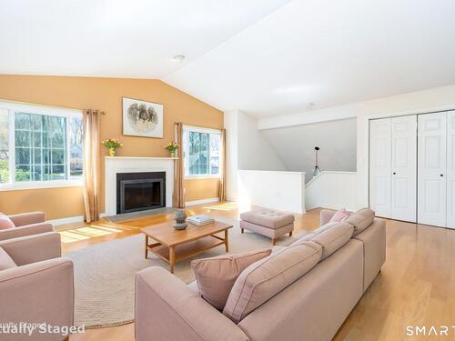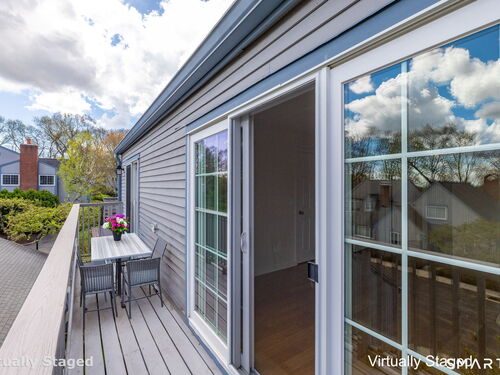 Welcome home to this bright and inviting 2-bedroom, 2-bath ranch-style condo in sought-after Woodfield Village. Tucked away as a second-floor end unit, you'll love the added privacy and the way natural light pours in through oversized windows, creating a warm and airy feel throughout. The open layout makes everyday living easy and comfortable. The eat-in kitchen offers plenty of cabinet space, a pantry, and stainless steel appliances-perfect for everything from quick weekday meals to weekend cooking. Just beyond, the dining area flows seamlessly into the living room, where a cozy wood-burning fireplace becomes the heart of the home, framed by large windows that bring the outdoors in. The primary bedroom is a true retreat, featuring hardwood floors, a spacious walk-in closet, and a private bath with a relaxing whirlpool tub and separate shower. Step out onto your own balcony for a quiet morning coffee or evening unwind. The second bedroom is equally inviting, with its own balcony access, making it perfect for guests, a home office, or both. In-unit laundry adds everyday convenience. Downstairs, the expansive lower-level basement offers incredible potential-finish it to create a home gym, media room, or additional living space tailored to your needs. A detached garage just steps from your door makes coming and going easy. Woodfield Village residents enjoy great amenities including a pool, pickleball courts, and a clubhouse-perfect for staying active and social.