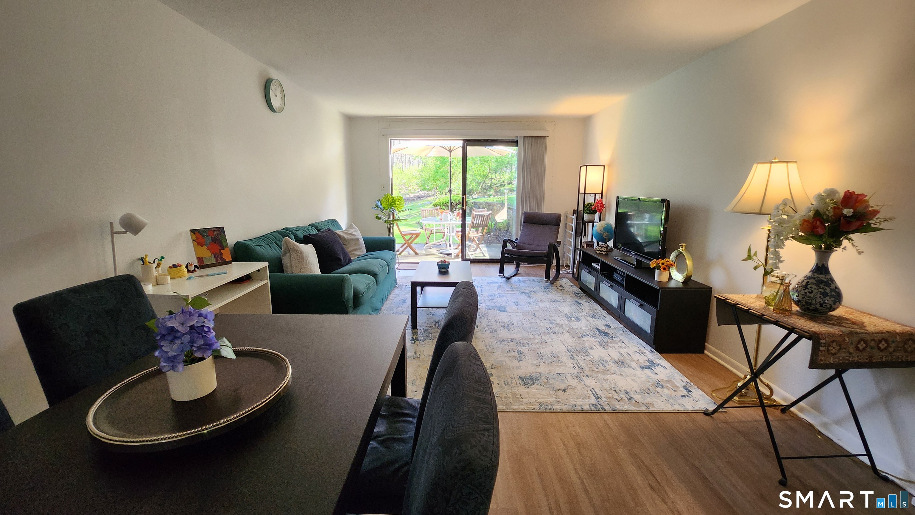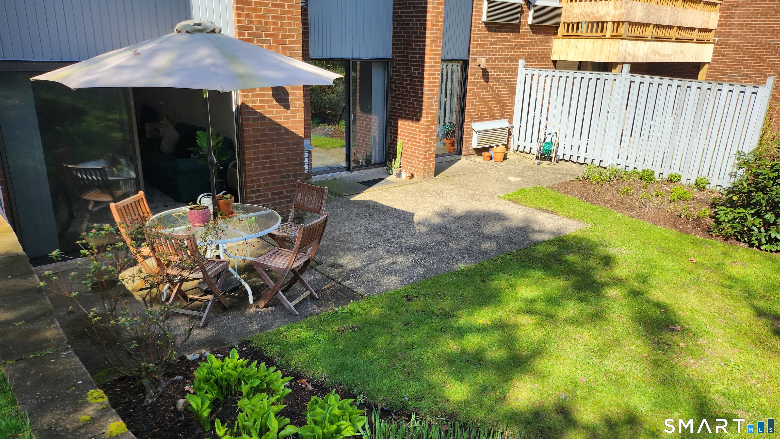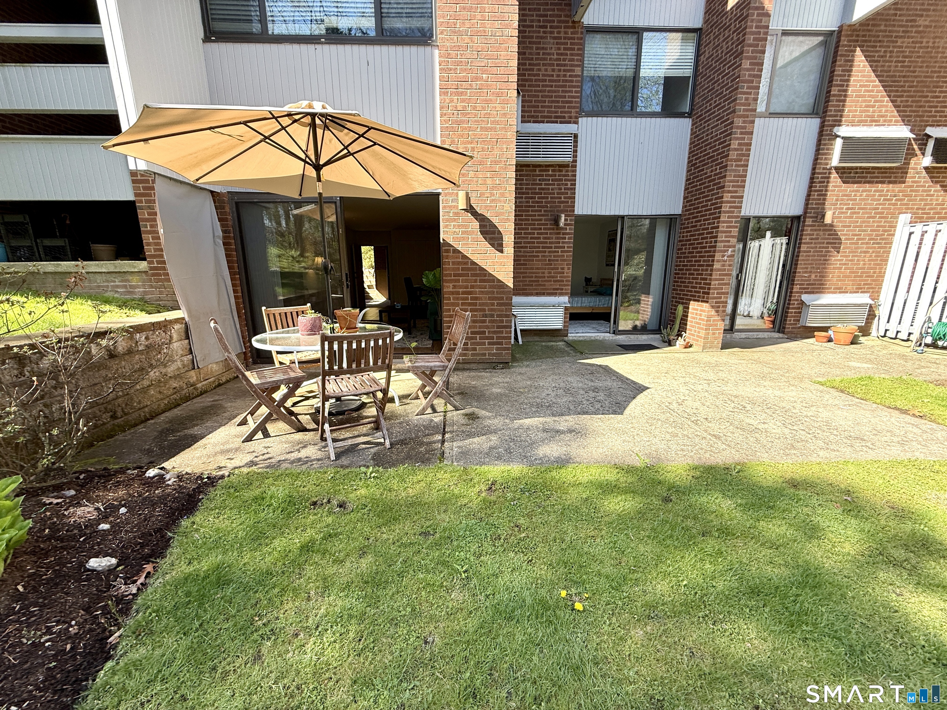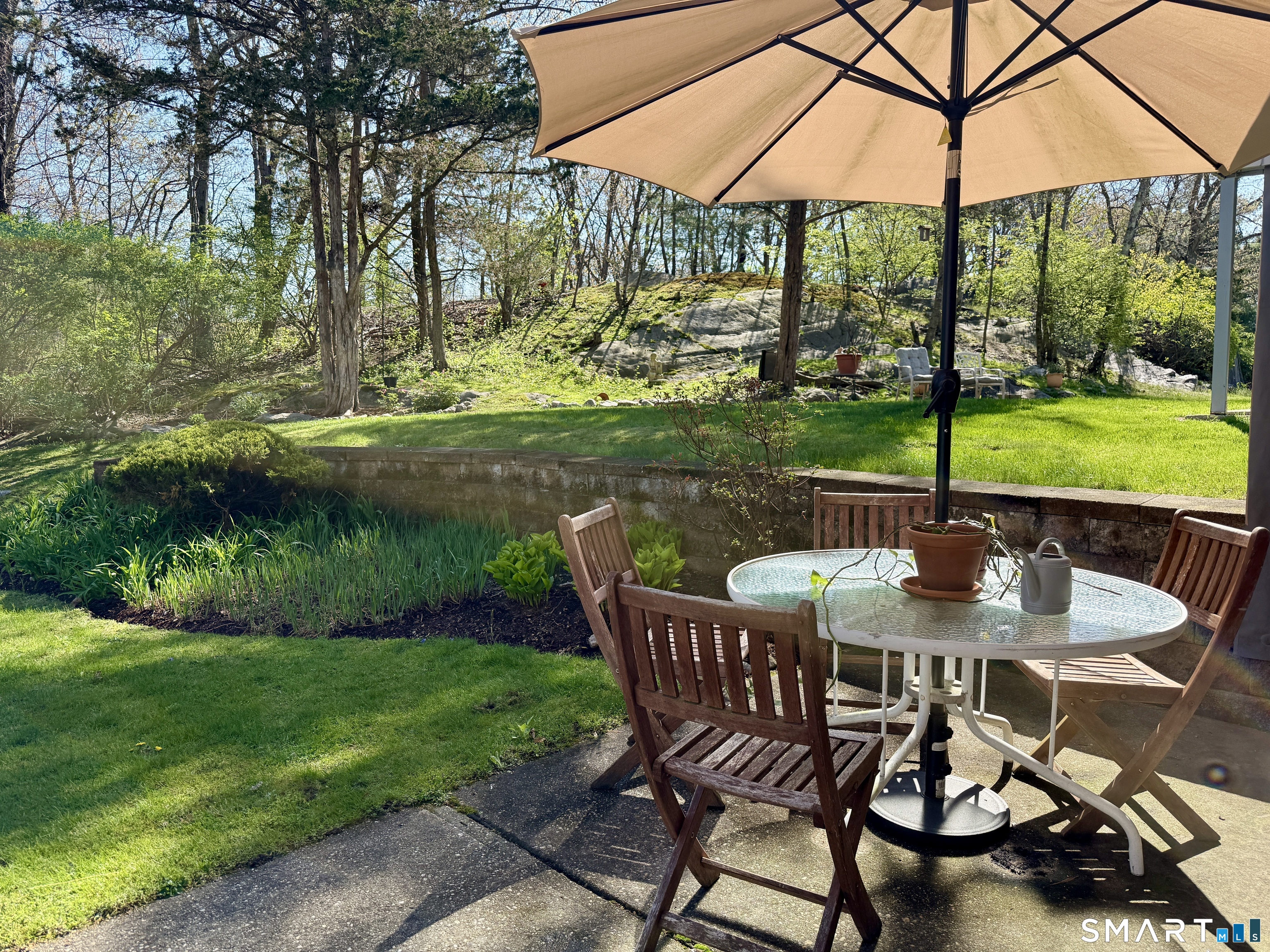 Prime end-unit two-bedroom residence in the highly sought-after Wilton Crest community, ideally located just steps from convenient parking. This bright, move-in ready home offers exceptional privacy and abundant natural light throughout. The living room and both bedrooms feature sliding doors that open to a private patio overlooking beautifully manicured gardens and lawn, creating a seamless indoor-outdoor setting perfect for relaxing or entertaining. The interior showcases beautiful laminate flooring throughout the living space, complemented by elegant granite countertops and modern stainless-steel appliances in the kitchen. The thoughtfully designed layout balances comfort and functionality for effortless everyday living. Residents enjoy resort-style amenities, including a swimming pool and tennis court, all within a walkable setting close to downtown Wilton, nearby scenic trails and Schenck's Island. Additional highlights include private storage space and brand-new smart laundry units in the community basement, professional management, and easy commuter access. A rare opportunity for effortless, low-maintenance living in one of Fairfield County's most desirable communities-offering the charm of a true New England town. Arguably one of the best values currently available in Wilton - come experience it for yourself. ASKING FOR HIGHEST & BEST OFFERS BY 12 NOON, MONDAY, APRIL 27th.