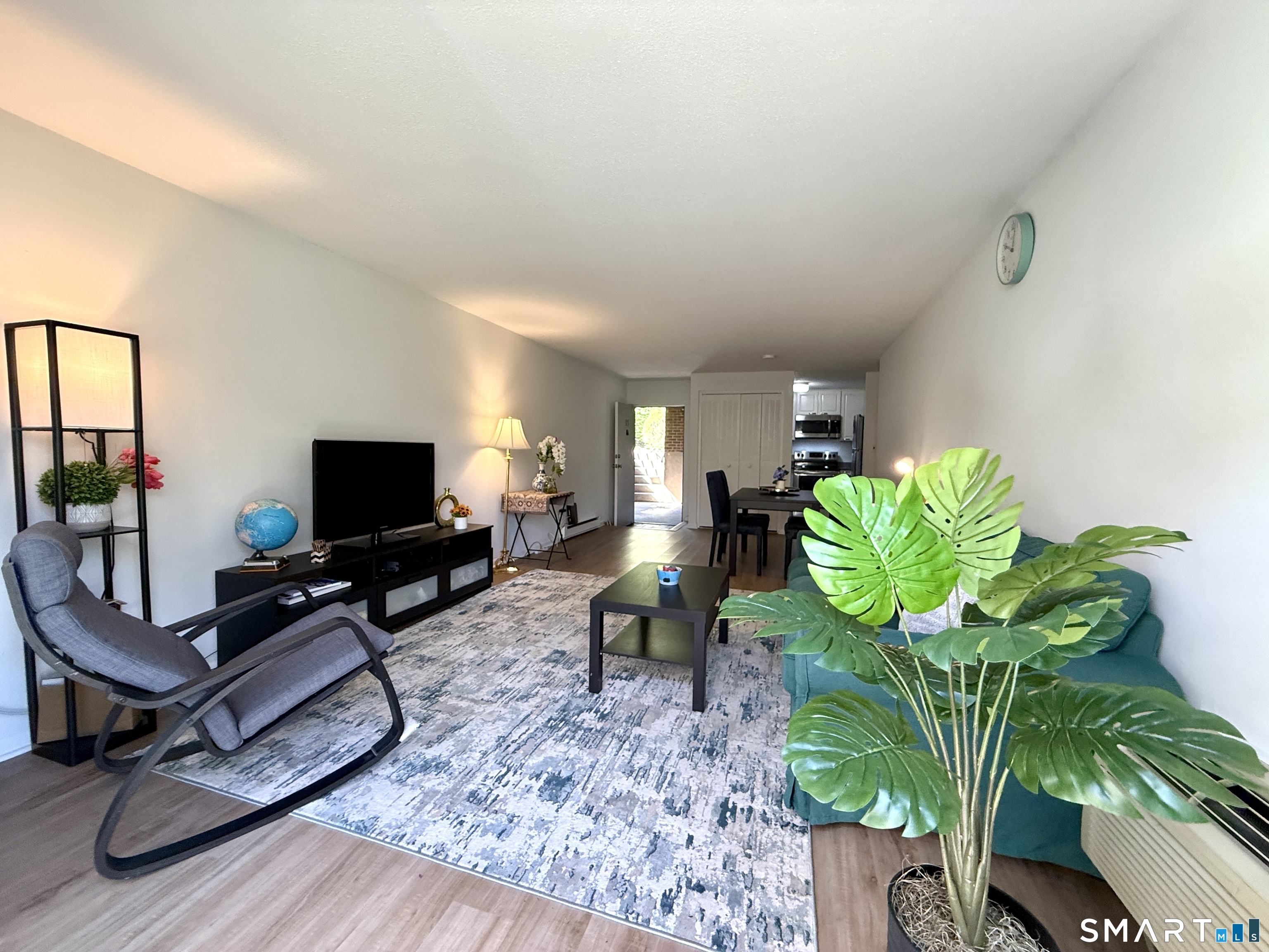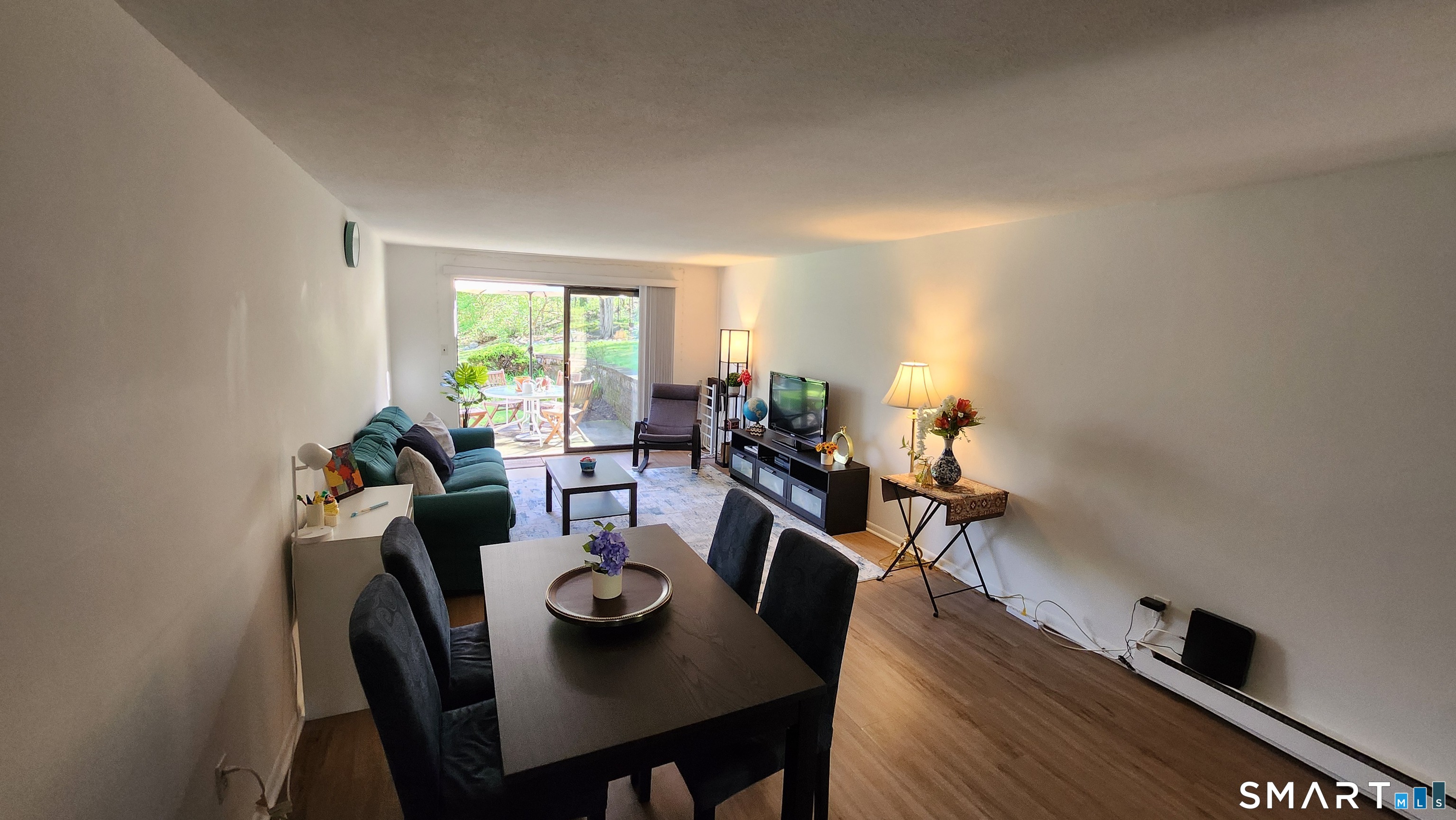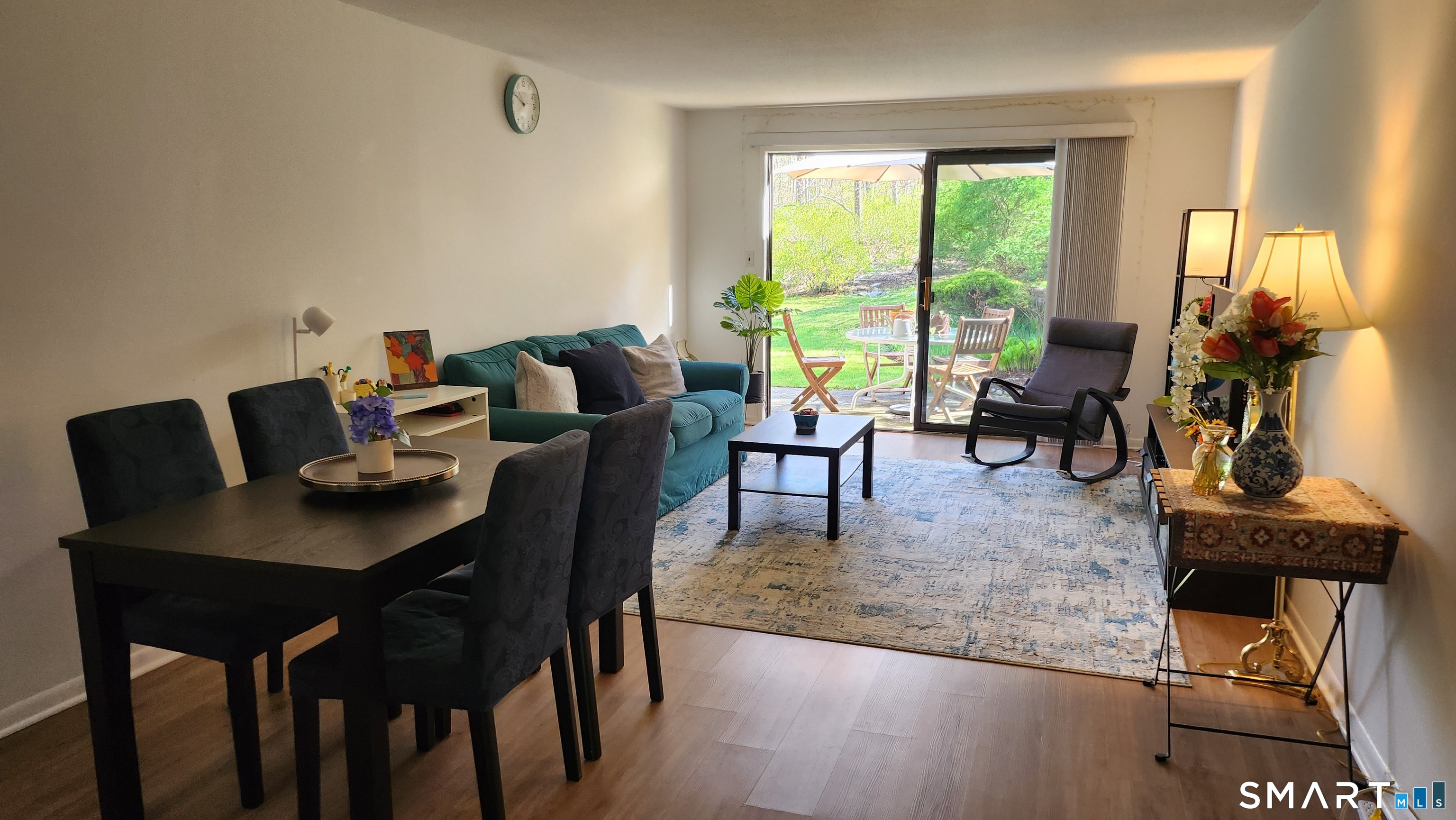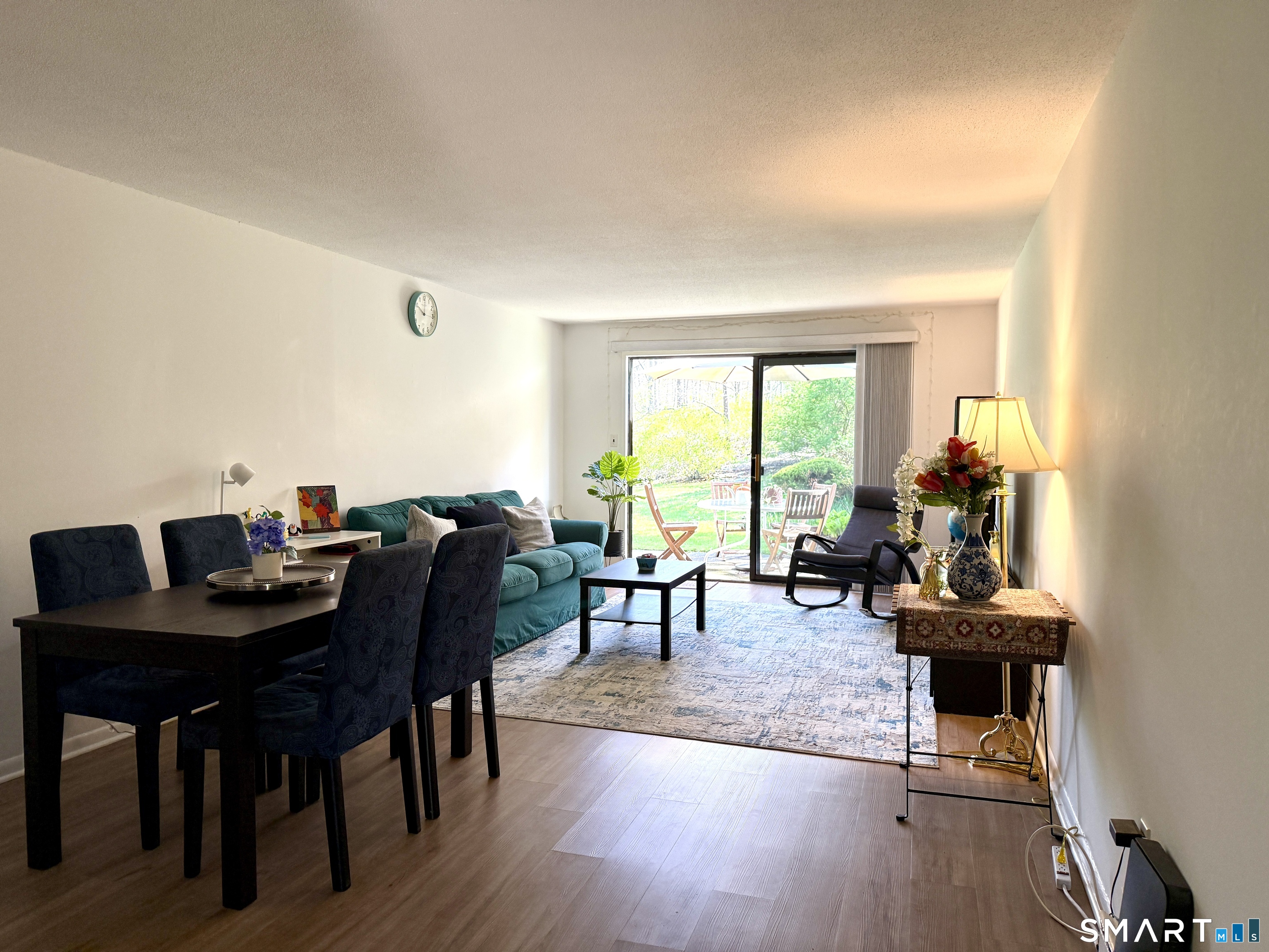 Prime end-unit two-bedroom residence in the highly sought-after Wilton Crest community, ideally located just steps from convenient parking. This bright, move-in ready home offers exceptional privacy and abundant natural light throughout. The living room and both bedrooms feature sliding doors that open to a private patio overlooking beautifully manicured gardens and lawn, creating a seamless indoor-outdoor setting perfect for relaxing or entertaining. The interior showcases beautiful laminate flooring throughout the living space, complemented by elegant granite countertops and modern stainless-steel appliances in the kitchen. The thoughtfully designed layout balances comfort and functionality for effortless everyday living. Residents enjoy resort-style amenities, including a swimming pool and tennis court, all within a walkable setting close to downtown Wilton, nearby scenic trails and Schenck's Island. Additional highlights include private storage space and brand-new smart laundry units in the community basement, professional management, and easy commuter access. A rare opportunity for effortless, low-maintenance living in one of Fairfield County's most desirable communities-offering the charm of a true New England town. Arguably one of the best values currently available in Wilton - come experience it for yourself. ASKING FOR HIGHEST & BEST OFFERS BY 12 NOON, MONDAY, APRIL 27th.