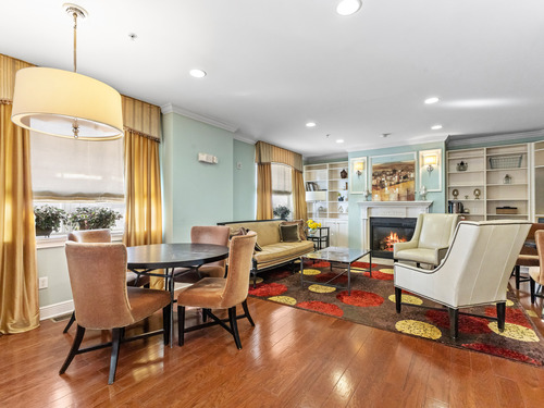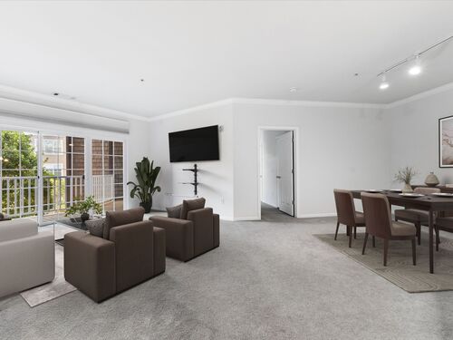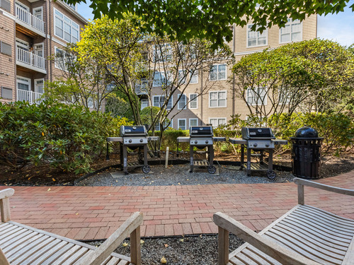 This fantastic and spacious two-bedroom, two-bath condominium is perfectly located in the heart of downtown Stamford. The large gourmet kitchen with center island opens to a fabulous, light-filled living area. An ideal split-bedroom floorplan ensures privacy, with bedrooms and baths thoughtfully separated. Transom windows above the sliders in the living room and primary suite are a beautiful architectural flourish. Step onto your balcony overlooking the beautifully landscaped courtyard for a serene retreat. Enjoy building perks including a fully equipped fitness center, a stylish meeting room for work or gatherings, dry-cleaning service and attentive concierge. Just steps from Stamford's vibrant dining, shopping, theaters, waterfront parks, and Metro-North station-this condo delivers effortless city living with comfort, convenience, and style.