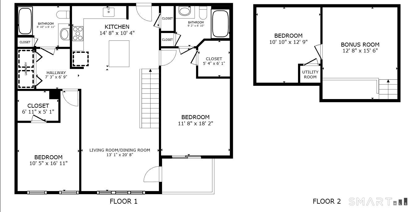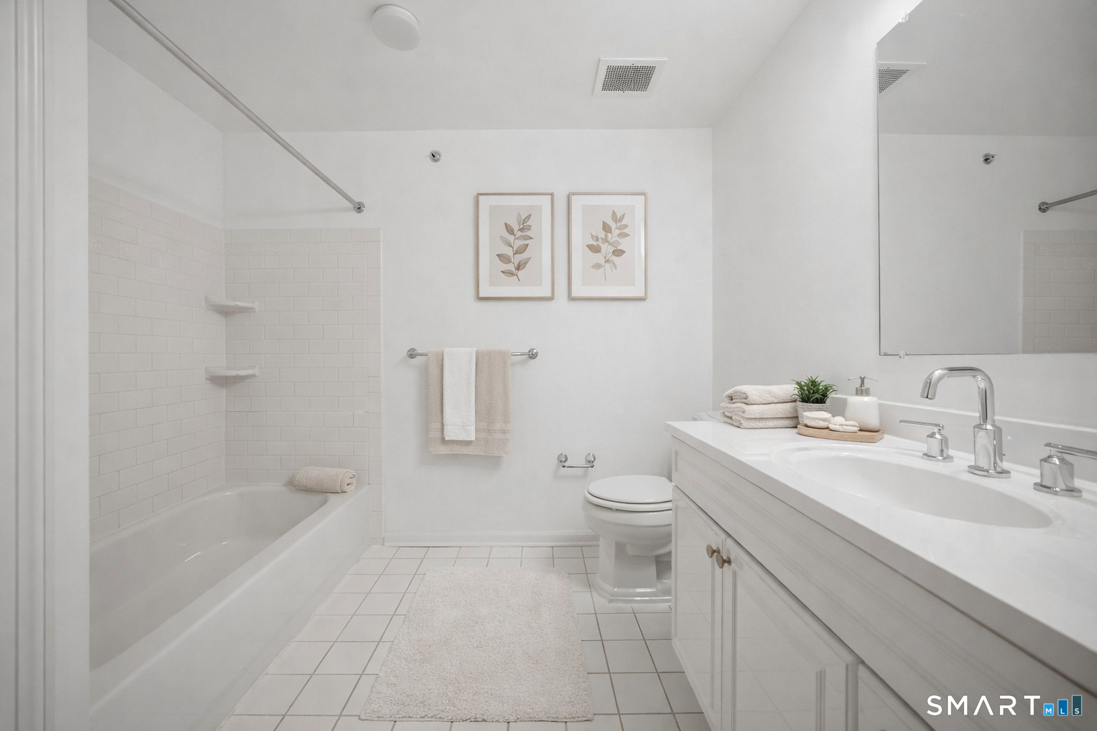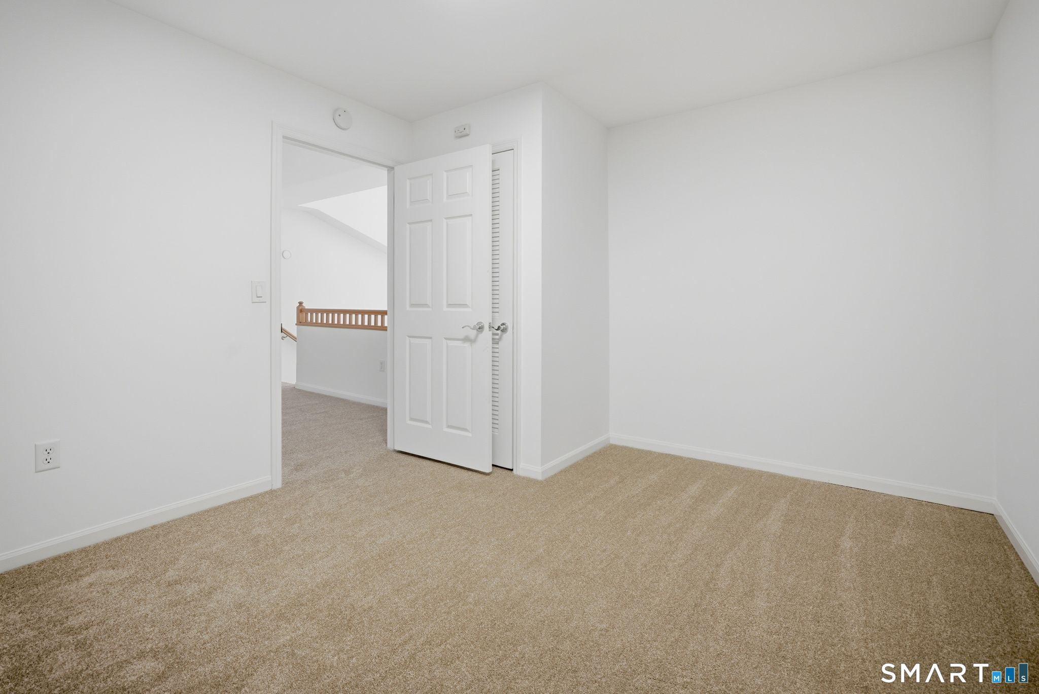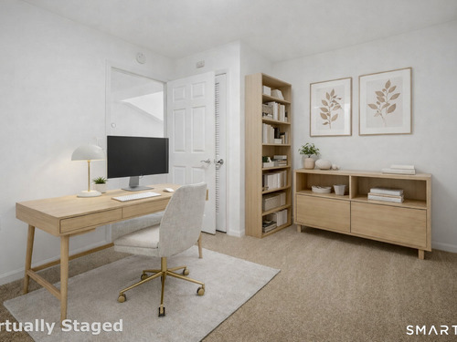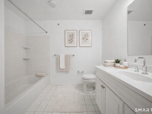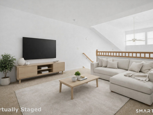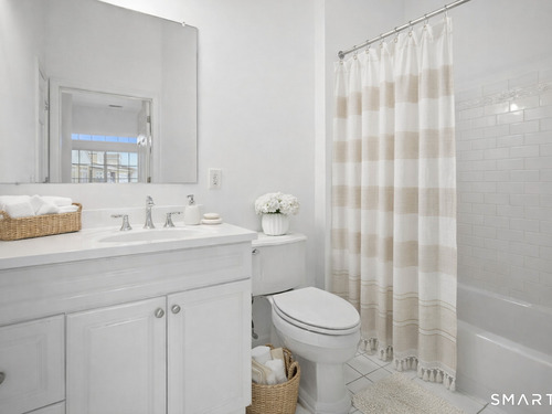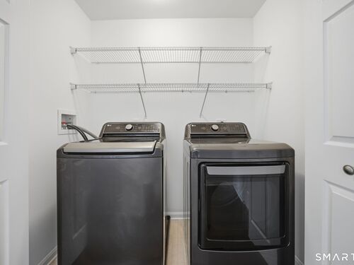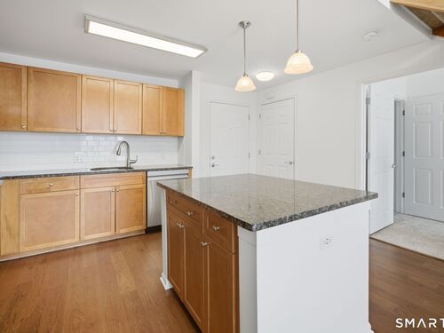 Welcome to this top-floor coveted loft style residence at Eastside Commons, offering refined urban living with serene courtyard views. Located on the 5th floor, this meticulously cared for home has been freshly painted throughout and features engineered hardwood flooring, delivering a polished, move-in ready feel. The open concept layout is highlighted by a dramatic two-story living and dining area, ideal for entertaining or everyday comfort. The kitchen is beautifully updated with all new 2024 stainless steel smart appliances, including gas range, microwave, refrigerator, and dishwasher, along with a center island that flows seamlessly into the main living space. Step out onto your private balcony overlooking the landscaped courtyard. The primary suite offers an ensuite full bath and walk-in closet, while the second bedroom with walk-in closet, additional full bath, and versatile loft space provide flexibility for a home office, den, or guest retreat. Brand new carpeting adds comfort to the bedrooms and loft areas, and in-unit laundry includes a new washer and dryer from 2023. Recent upgrades include a smart thermostat, updated HVAC, and new water heater from 2022. The building offers elevator access, concierge service, a fitness center, courtyard, and shuttle service. Includes 2 parking spaces (1 assigned, 1 floating) in secured underground garage. Incredible walkable location near downtown Stamford, shops, restaurants, and the train station with quick access to I-95.