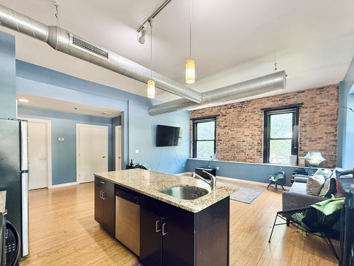 Please come see this highly sought-after condo in Park City Lofts. It offers a serene comfort and elegant feeling. This spacious 2- bedroom, 1 bath impresses with its exposed brick wall and open concept for entertaining. This unit also offers hardwood floors throughout, in-unit laundry, and central air. With 24 hour security, this is a prime location with modern amenities and charm. The location consist of: **Across is Housatonic College, walking distance to shops, restaurants, bus lines, Metro-North train station, minutes from Long Island Ferry, I-95 and Route 25/8.**