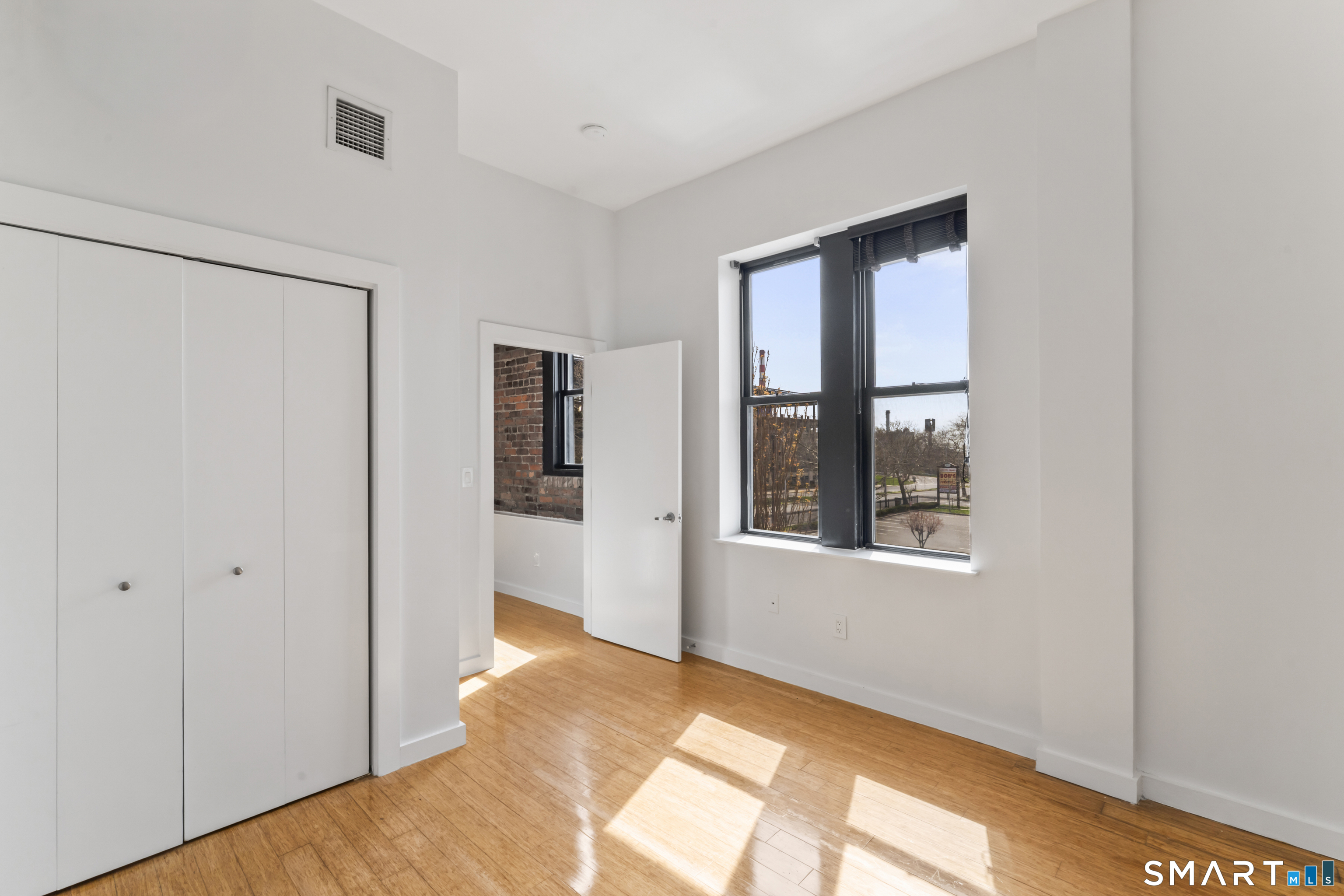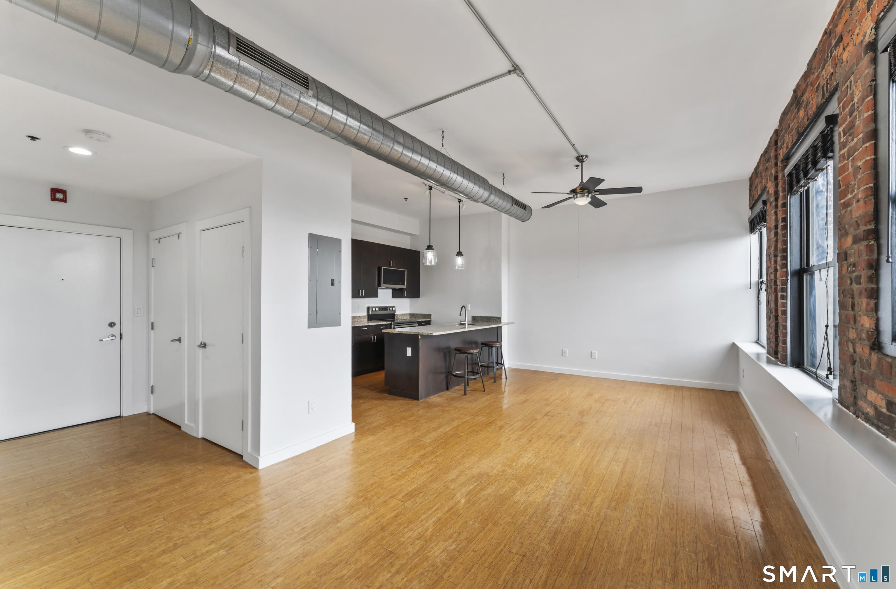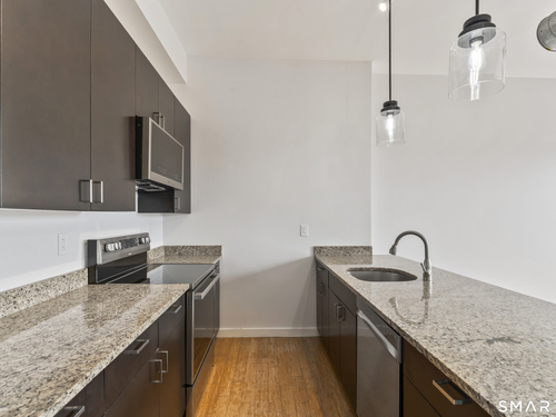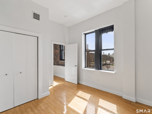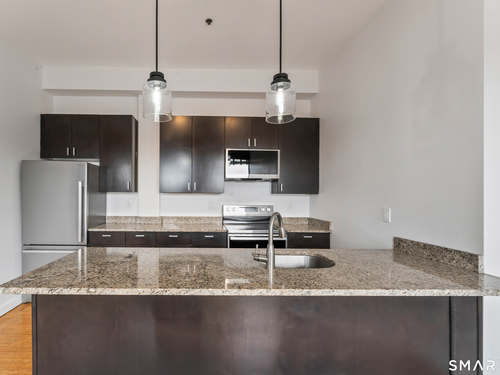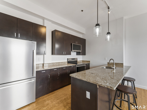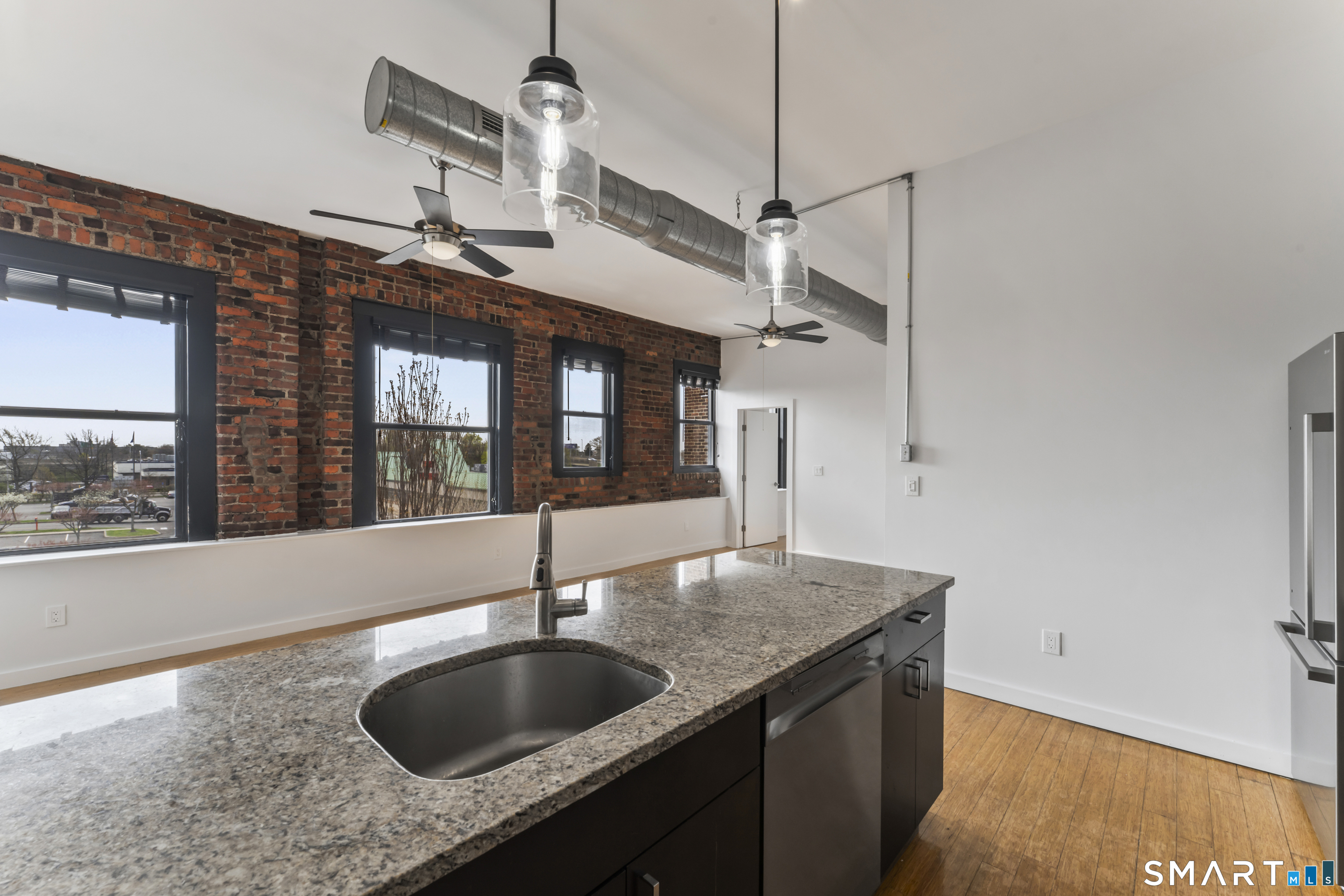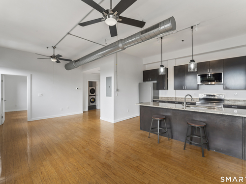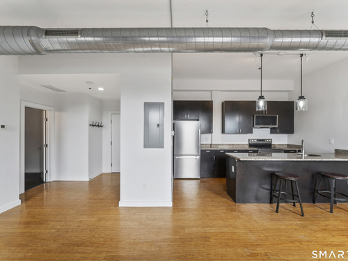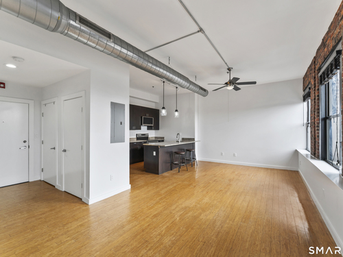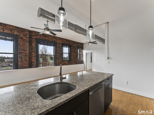 Welcome to 881 Lafayette Unit 3K! This beautifully renovated one bedroom condo is bathed in sunlight featuring an open floor plan and 9' ceilings. The bright and sunny kitchen boasts a large island with granite counter tops, BRAND NEW kitchen appliances and generous cabinets. Freshly painted and with gleaming bamboo floors, the space effortlessly flows to enhance continuity from the living space to the primary bedroom. Large windows allow for optimal sun light with exposed brick highlighting water views of Long Island Sound. With a BRAND NEW washer and dryer in unit, bathroom includes full bathtub and tiled floors. The building is centrally located and just a few minutes from the heart of Downtown Bridgeport, The Ampitheatre, The Arena, the Train Station, Port Jeff Ferry, I95, Housatonic Community College, University of Bridgeport and the most amazing beaches Connecticut!
