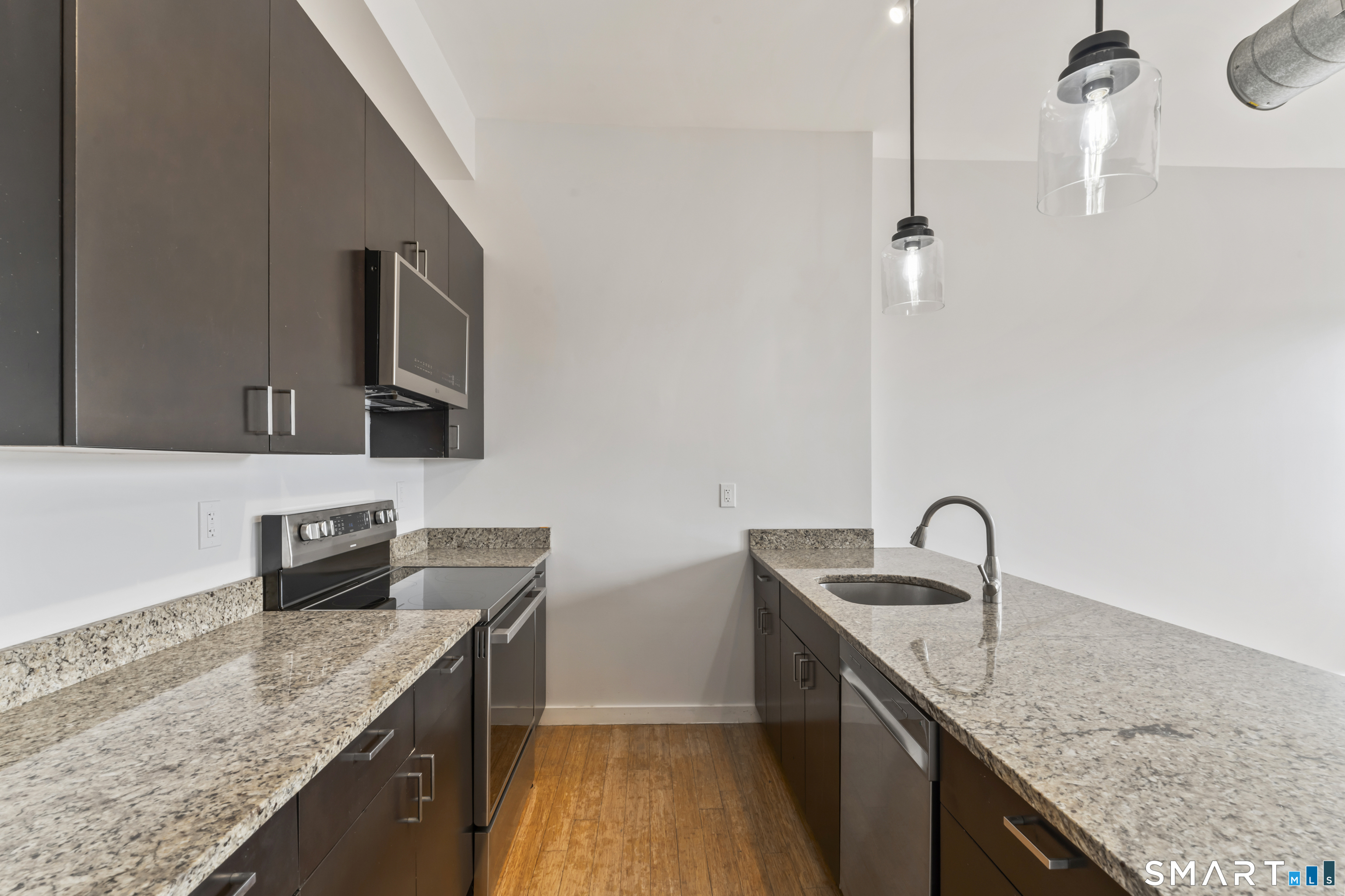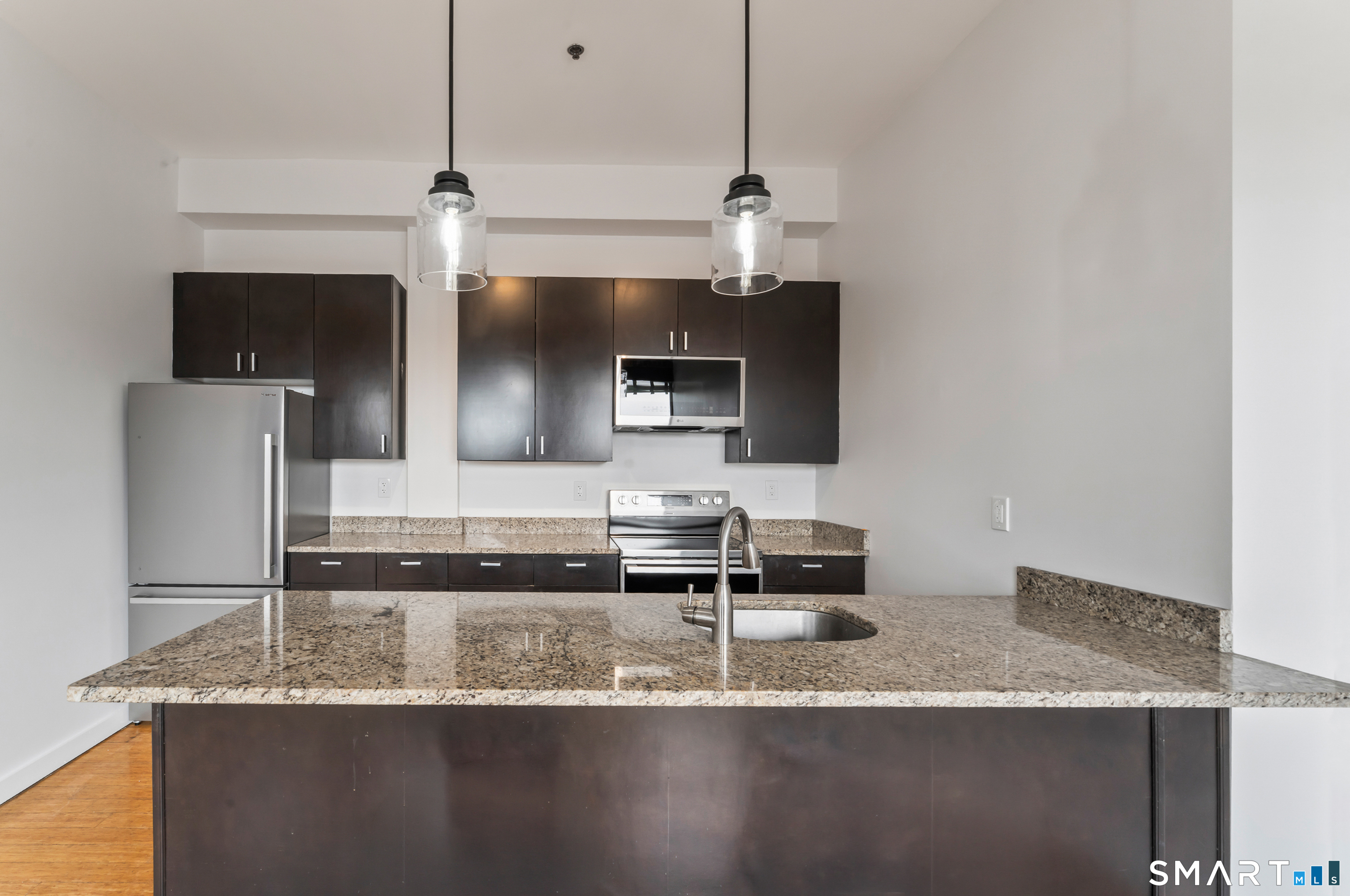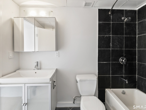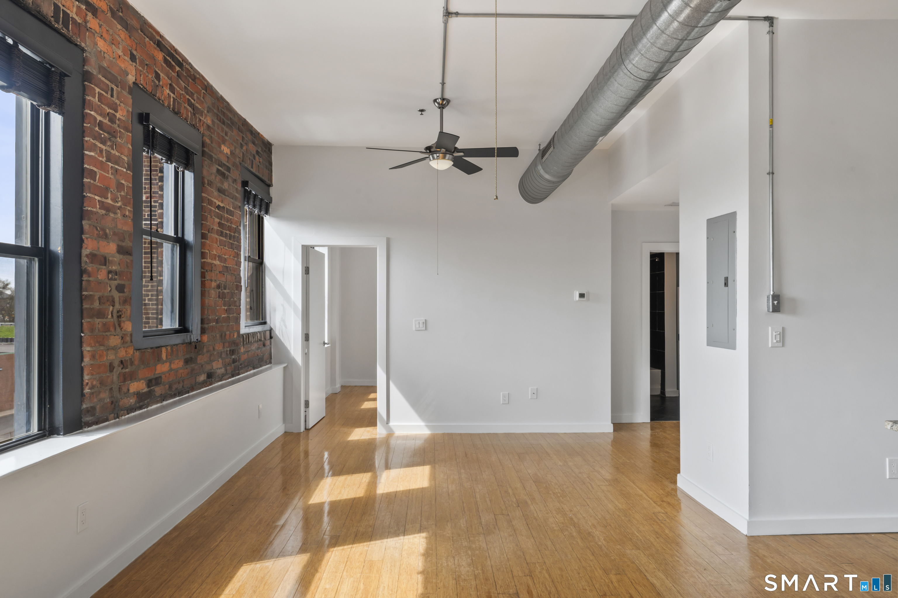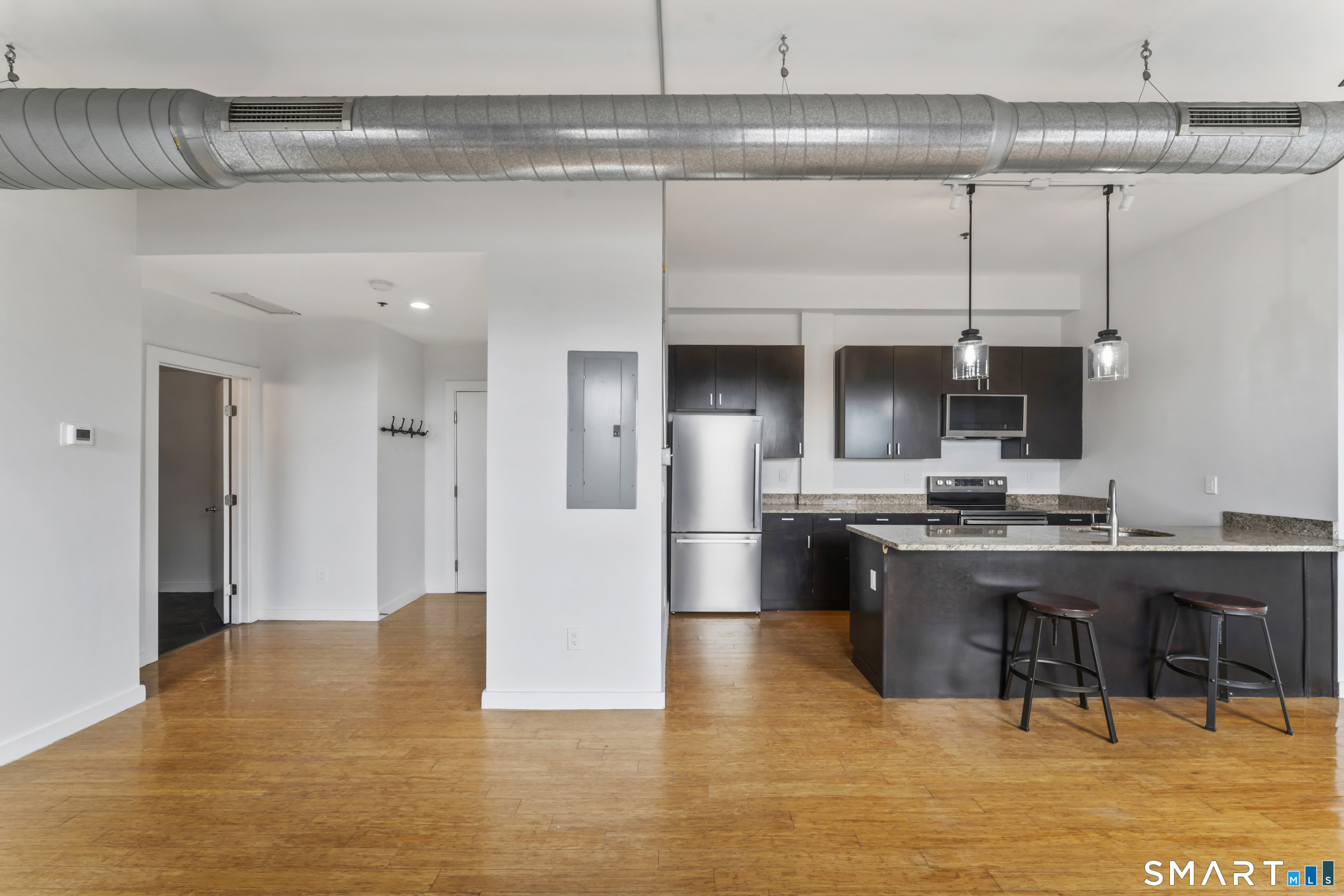 Welcome to 881 Lafayette Unit 3K! This beautifully renovated one bedroom condo is bathed in sunlight featuring an open floor plan and 9' ceilings. The bright and sunny kitchen boasts a large island with granite counter tops, BRAND NEW kitchen appliances and generous cabinets. Freshly painted and with gleaming bamboo floors, the space effortlessly flows to enhance continuity from the living space to the primary bedroom. Large windows allow for optimal sun light with exposed brick highlighting water views of Long Island Sound. With a BRAND NEW washer and dryer in unit, bathroom includes full bathtub and tiled floors. The building is centrally located and just a few minutes from the heart of Downtown Bridgeport, The Ampitheatre, The Arena, the Train Station, Port Jeff Ferry, I95, Housatonic Community College, University of Bridgeport and the most amazing beaches Connecticut!