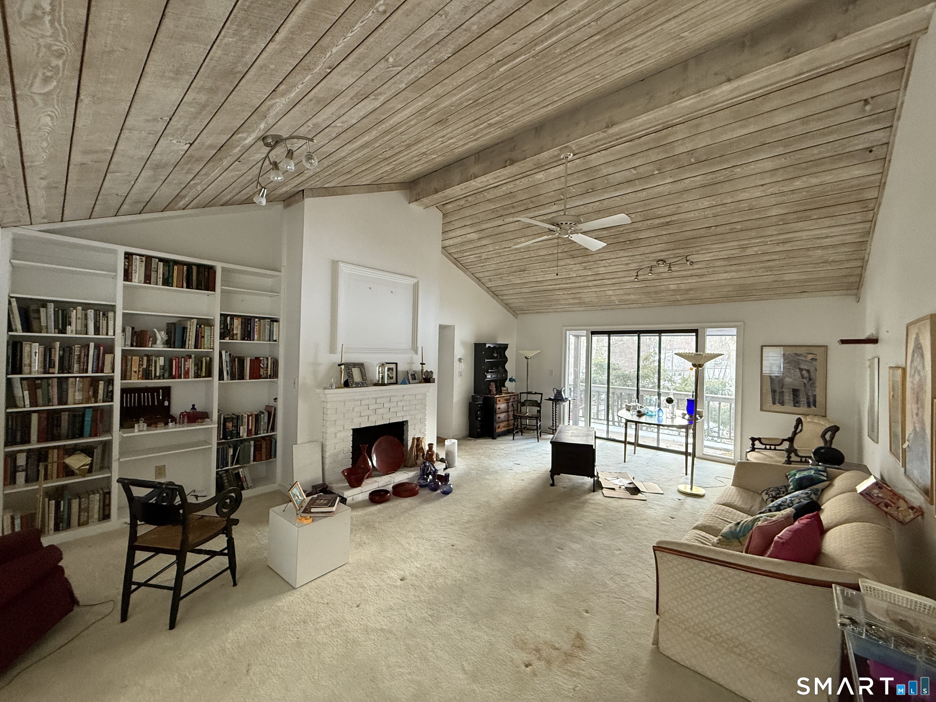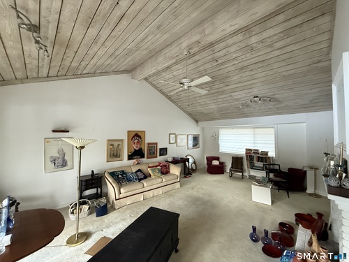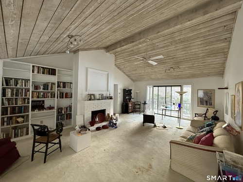 Welcome to 89A South Trail, a spacious and versatile condo offering far more than your typical one-bedroom layout. This oversized unit features a bright and open floor plan with a dramatic vaulted, wood-paneled family room ceiling and a striking fireplace that serves as the centerpiece of the home. The generously sized primary bedroom is complemented by additional finished space in the lower level, currently utilized as a second bedroom-perfect for guests, a home office, or flexible living. This desirable corner unit enjoys added privacy along with a beautiful view from the front entrance, creating a warm and inviting first impression. The home is move-in ready and simply awaits a light clean-out to make it your own. Whether you're looking for comfortable everyday living or a unique space with character and flexibility, this condo delivers exceptional value and potential.