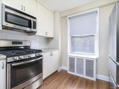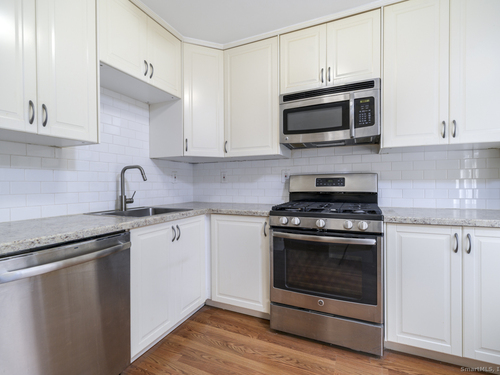 Welcome to easy living in one of Stamford's most desirable full-service communities. This beautifully updated 2-bedroom, 2-bath condo combines modern comfort with a convenient location and resort-style amenities. The freshly painted interior and new flooring create a bright, contemporary feel. The updated kitchen features sleek cabinetry, stainless steel appliances, and ample counter space-perfect for cooking or entertaining. The bathroom has been tastefully renovated with modern fixtures and finishes for a move-in-ready experience. The open-concept living and dining area leads to a private balcony at the quiet end of the corridor, offering extra privacy and a peaceful retreat. The primary bedroom includes generous closet space, while the second bedroom is ideal for guests or a home office. Located on the third floor, this unit offers easy elevator access and a serene setting. Residents enjoy a secure, professionally managed building with a pool, fitness center, 24-hour security, and elegant lobby. Just minutes from downtown Stamford's restaurants, shops, and entertainment, with easy access to Metro-North, parks, and major highways, this home offers the perfect blend of city convenience and everyday comfort. Move right in and enjoy the best of Stamford living!