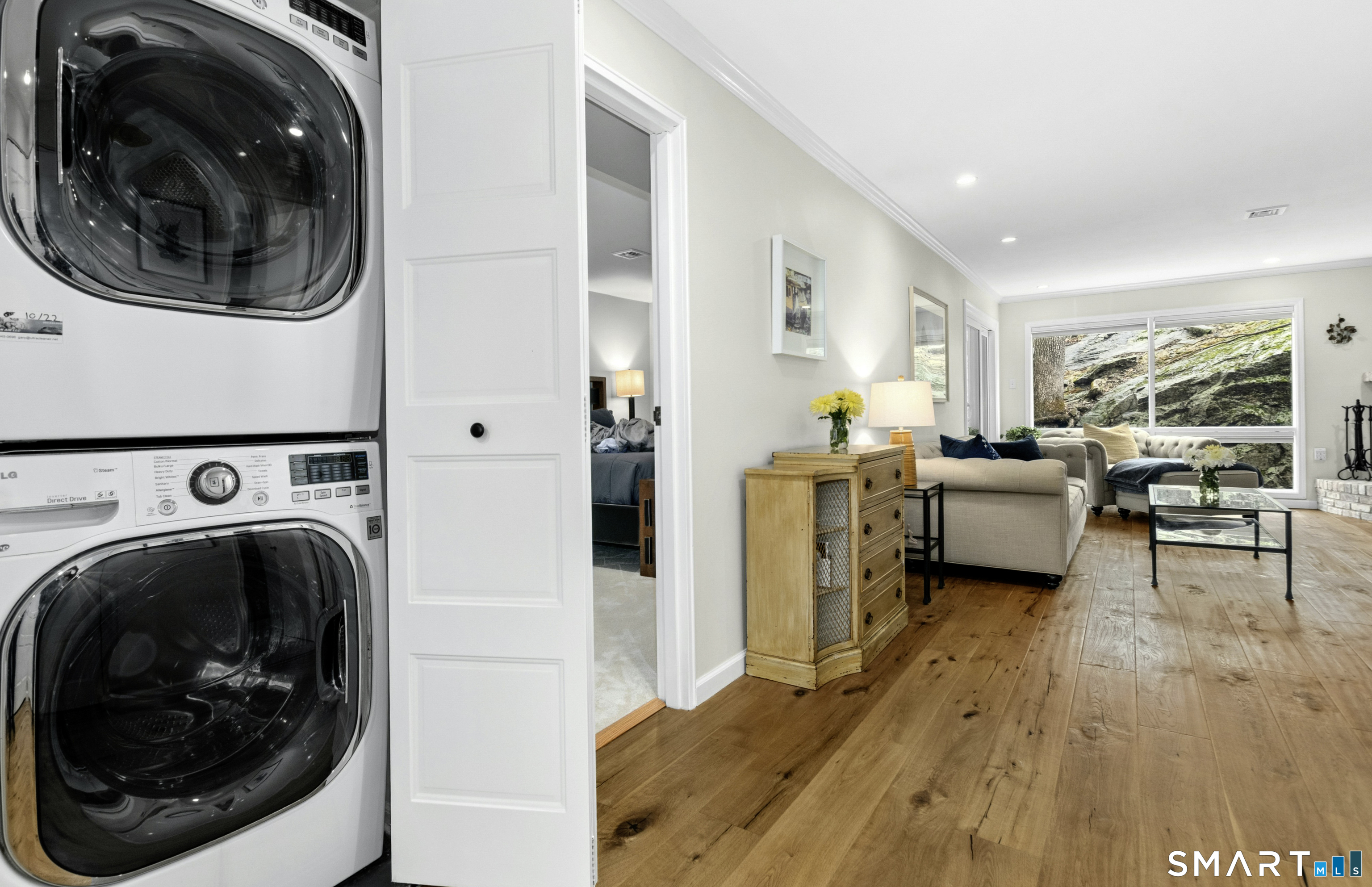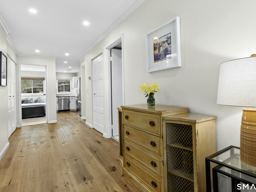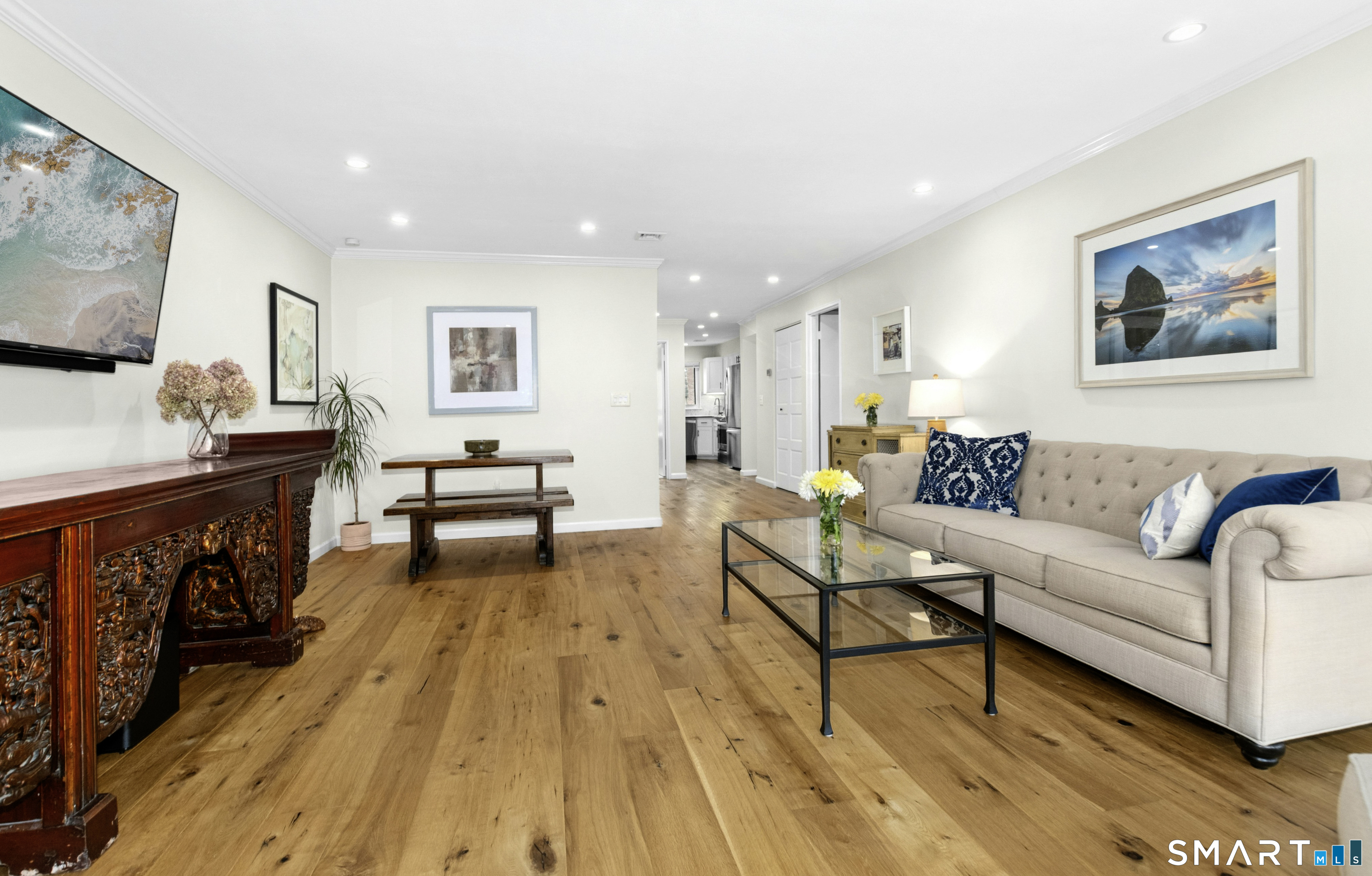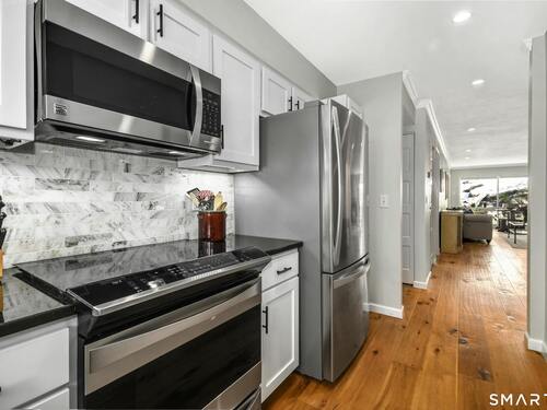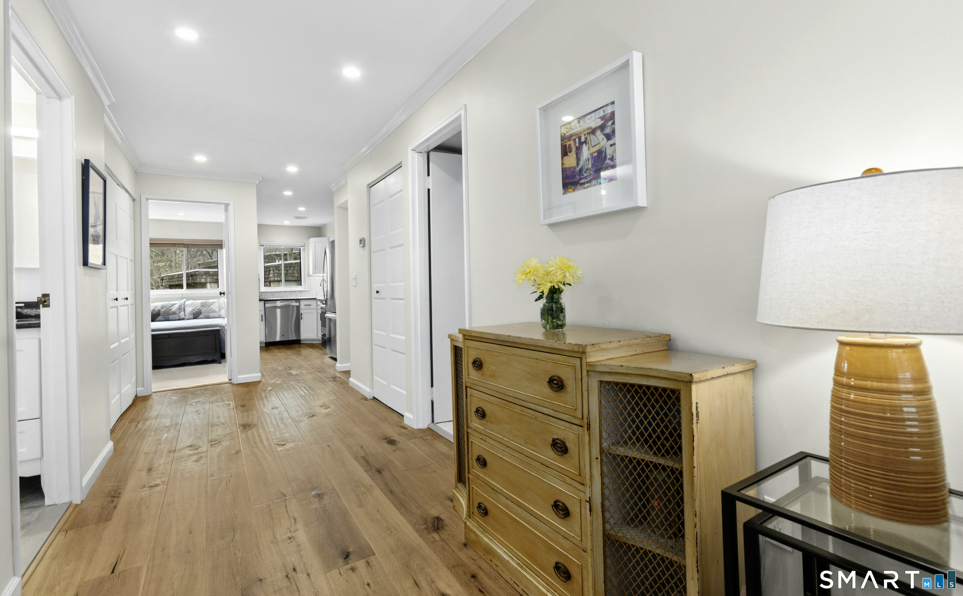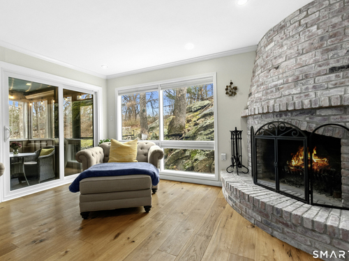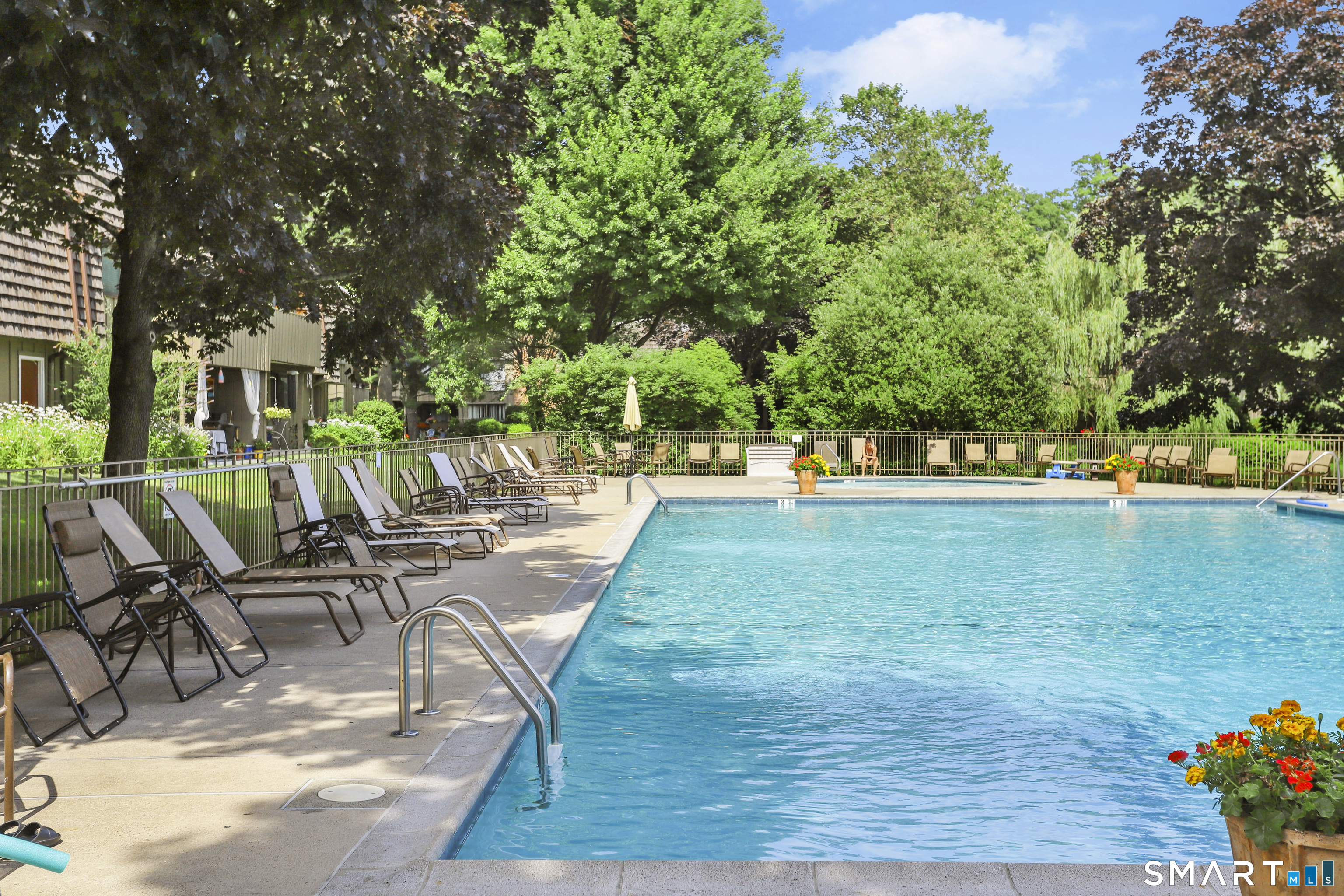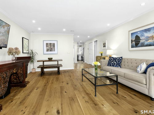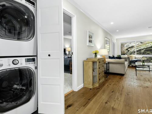 This beautifully renovated 2 bedroom 1 bath ranch home is ideally sited in the desirable Ledgebrook community. As you step inside its lovely entry way, you are immediately welcomed with wide plank floors and decorative wainscoting. The adjacent living room provides the perfect setting for relaxation and tranquility with its grand beehive fireplace and large picture window that offers captivating outside views of the private, wooded backdrop and natural rock garden. The tastefully remodeled kitchen with stainless steel appliances and granite countertops blends contemporary design with the conveniences of today's lifestyle. The spacious primary bedroom has newly installed plush carpeting, a generous closet and scenic wooded outdoor views, while the second bedroom offers fresh carpeting and a sizable walk-in closet. The updated full bath has heated floors and is conveniently located near the in-unit full size washer and dryer. The screened-in porch allows shaded enjoyment of the outdoors in the warmer months and provides an easy, additional access to the exterior of the property. The Ledgebrook community is highly regarded for its professionally landscaped grounds with seasonal perennials, pond, and walking paths, along with the amenities of an in-ground pool and clubhouse with fitness room and library. The prime West Norwalk location is convenient to shopping, dining, train and major highways. $7,000 special assessment paid in full.