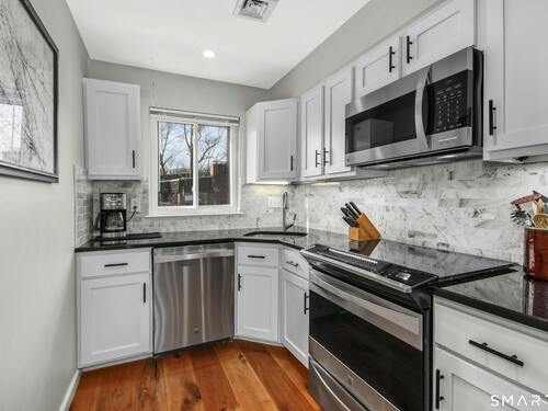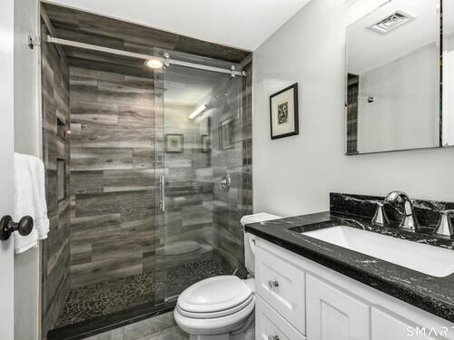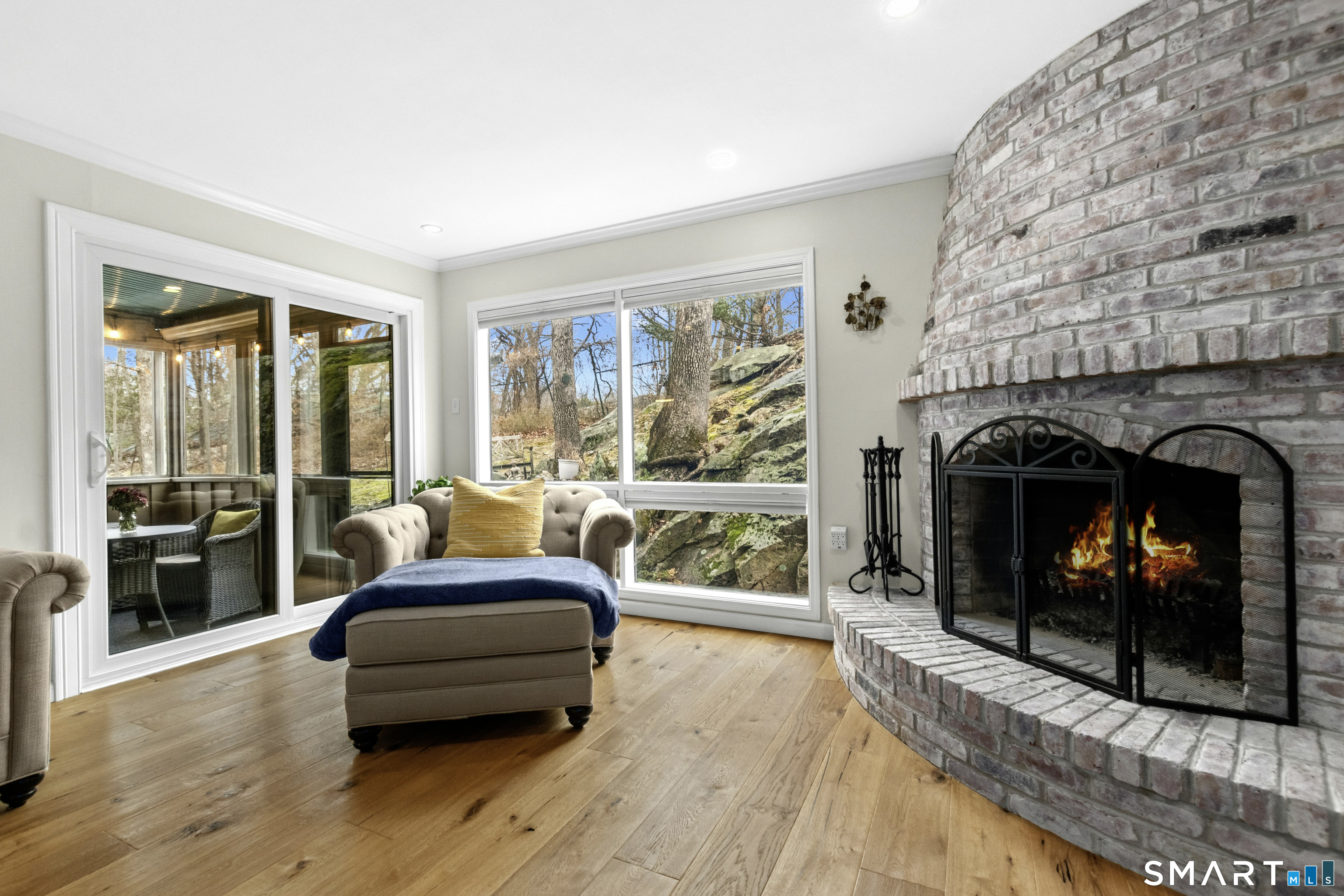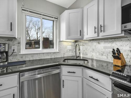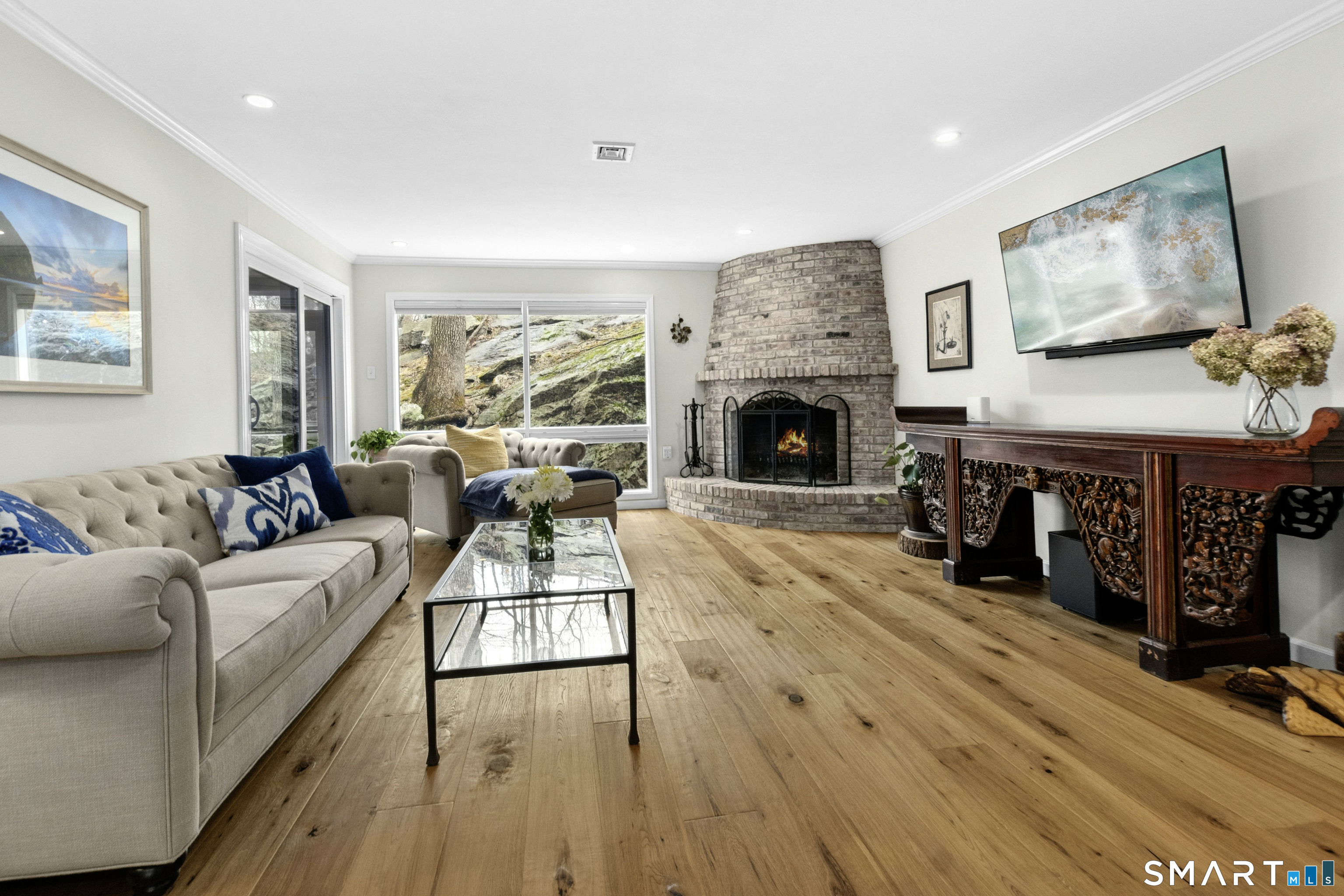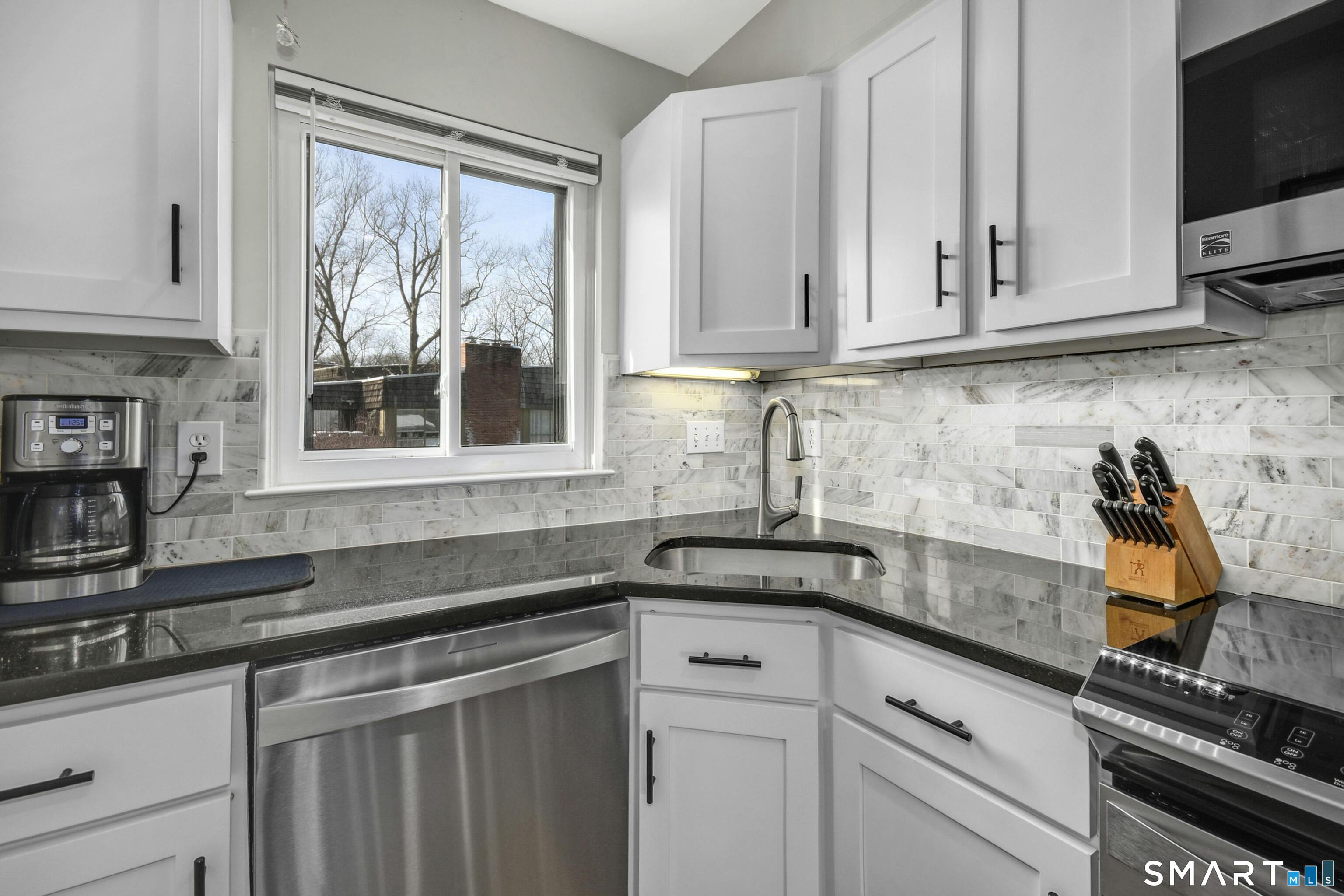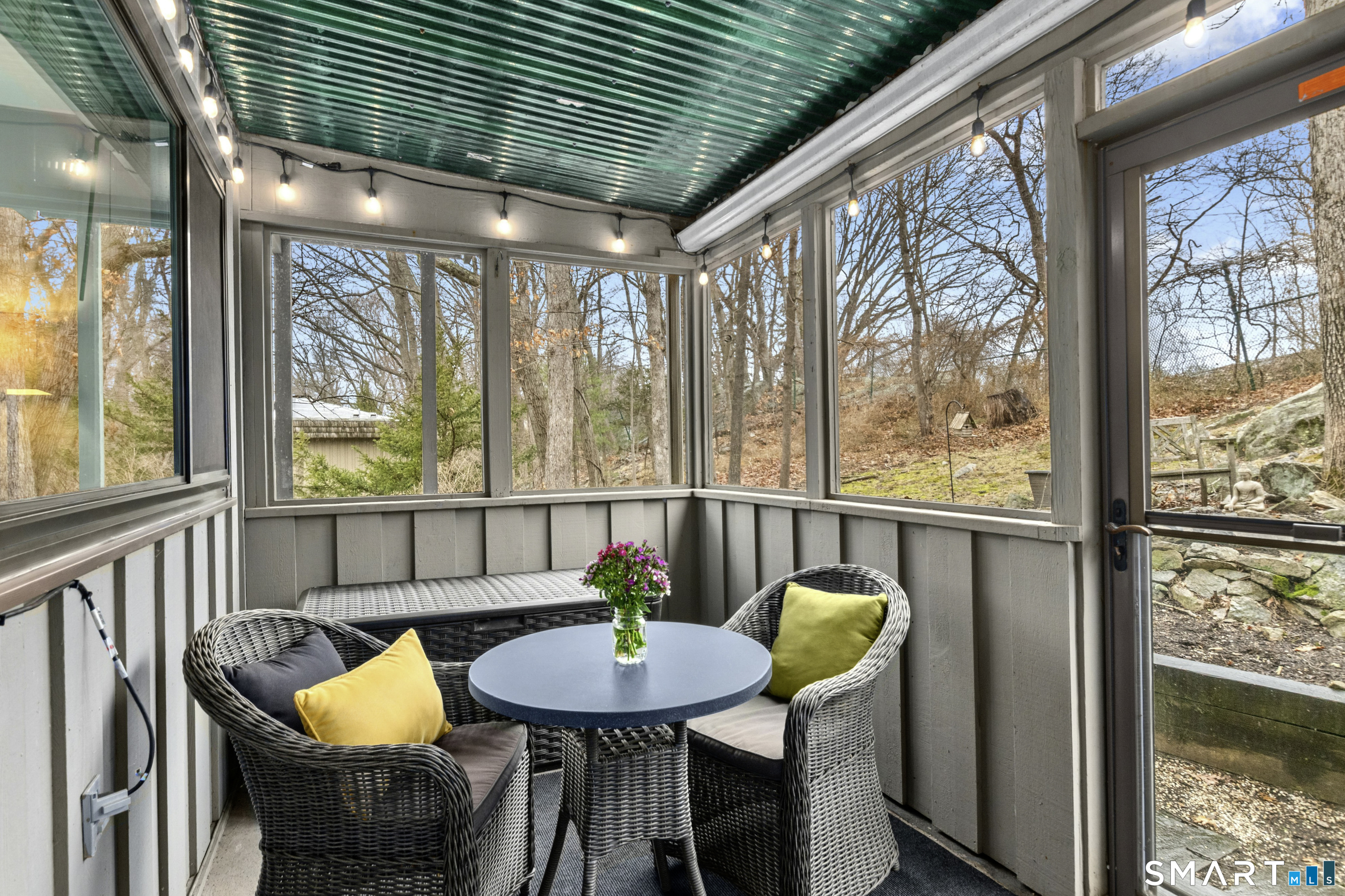 This beautifully renovated 2 bedroom 1 bath ranch home is ideally sited in the desirable Ledgebrook community. As you step inside its lovely entry way, you are immediately welcomed with wide plank floors and decorative wainscoting. The adjacent living room provides the perfect setting for relaxation and tranquility with its grand beehive fireplace and large picture window that offers captivating outside views of the private, wooded backdrop and natural rock garden. The tastefully remodeled kitchen with stainless steel appliances and granite countertops blends contemporary design with the conveniences of today's lifestyle. The spacious primary bedroom has newly installed plush carpeting, a generous closet and scenic wooded outdoor views, while the second bedroom offers fresh carpeting and a sizable walk-in closet. The updated full bath has heated floors and is conveniently located near the in-unit full size washer and dryer. The screened-in porch allows shaded enjoyment of the outdoors in the warmer months and provides an easy, additional access to the exterior of the property. The Ledgebrook community is highly regarded for its professionally landscaped grounds with seasonal perennials, pond, and walking paths, along with the amenities of an in-ground pool and clubhouse with fitness room and library. The prime West Norwalk location is convenient to shopping, dining, train and major highways. $7,000 special assessment paid in full.