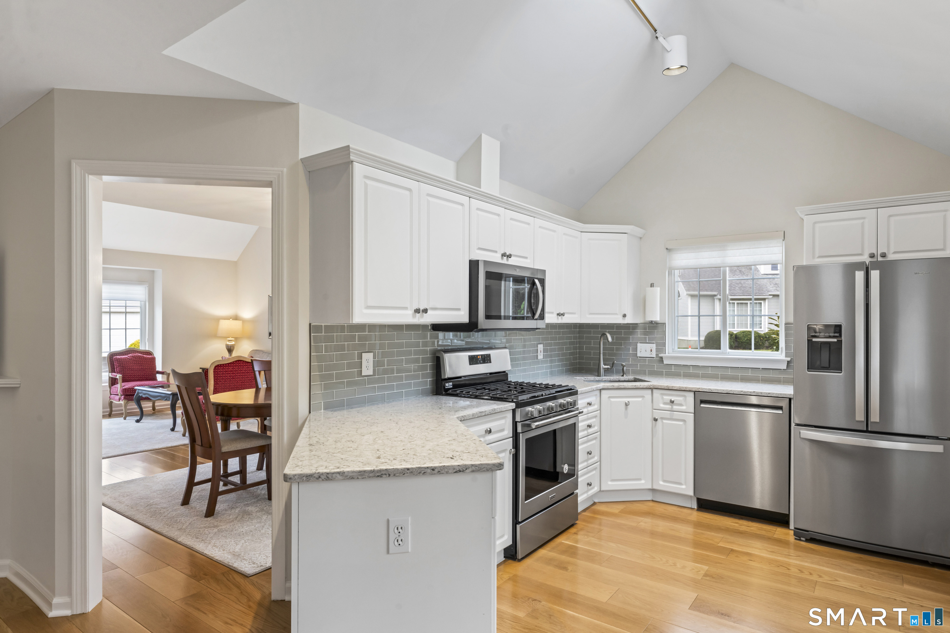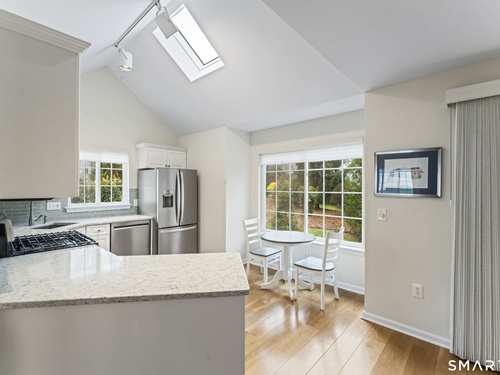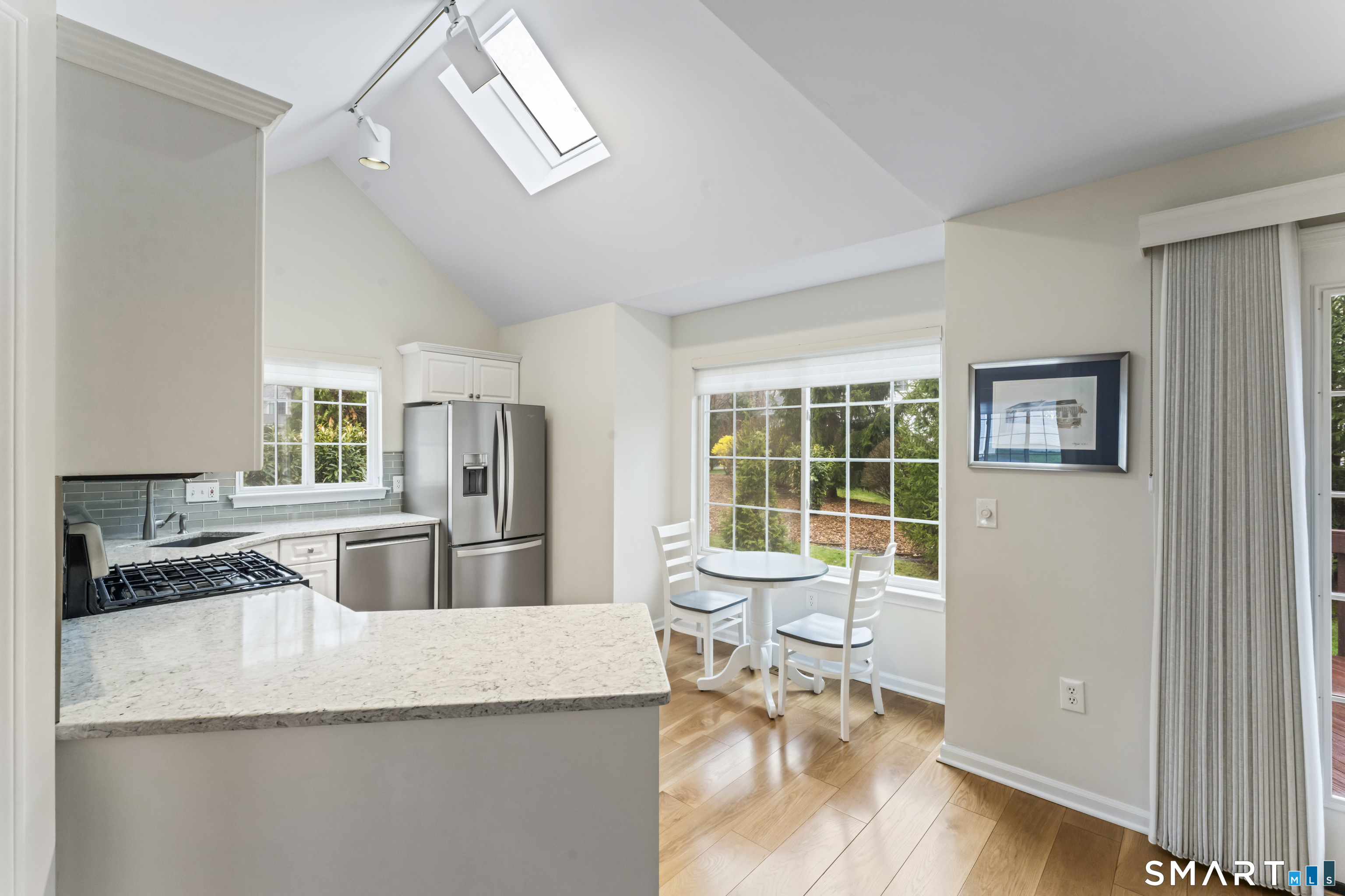 Skylight, Balcony/Deck, Quartz Counters, Eating Space, French Doors, Engineered Wood Floor