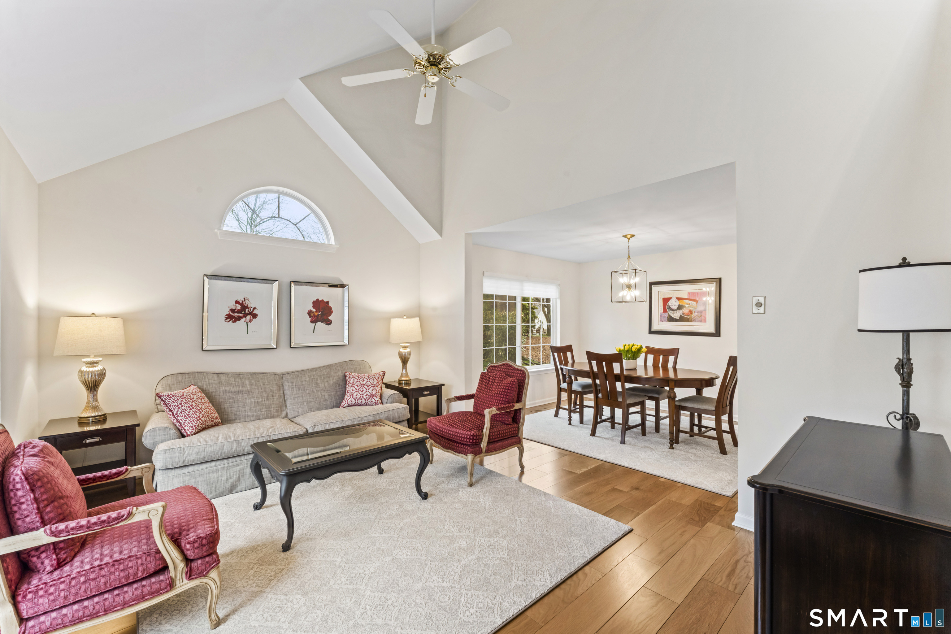 Palladian Window(s), Cathedral Ceiling, Ceiling Fan, Engineered Wood Floor