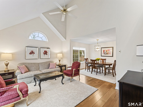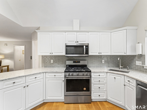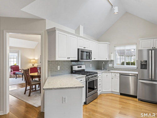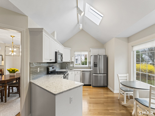 Welcome to Stonebrook, one of Stamford's most sought-after complex This 3 Bedroom standalone condo offers the perfect blend of single-family living with the ease of condominium lifestyle. Ideally situated within the complex this home features a spacious and inviting open layout designed for comfortable living. The dramatic living room showcases cathedral ceilings and a Palladian window filling the space with light and creating an open, airy feel. The heart of the home is the kitchen and family room combination perfect for everyday living. The Family Room features a cozy gas fireplace and french doors opening to large private deck - ideal for outdoor dining and relaxing in a peaceful setting. Hardwood floors on both the first and second floors. Second floor offers generously sized bedrooms, including a comfortable primary suite with walk in shower and walk-in closet. Two more bedrooms complete the second floor with full bath in hallway with tub and shower. Additional highlights include a one car garage, c/a, gas heat, attic storage, low common charges and beautifully maintained grounds. Conveniently located just minutes from the Merritt Parkway, Golf Course, Shopping, Restaurants, Schools, Health Facilities. A rare opportunity to enjoy privacy, comfort and convenience in highly desirable Stamford location.