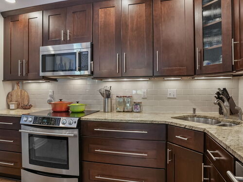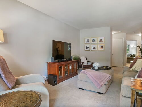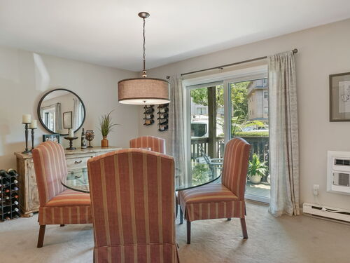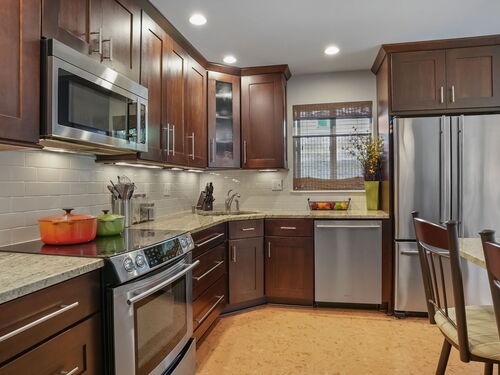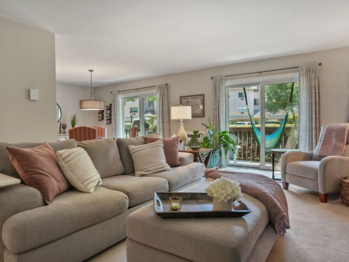 Welcome to Mallard's Landing, where peaceful, park-like surroundings meet everyday convenience. This spacious 2 bedroom, 2 full bath first-floor condo offers 1,196 sq ft of single-level living with no stairs, an open layout, in-unit laundry, and thoughtful touches throughout. The remodeled kitchen, with solid cherry wood cabinetry, granite countertops and Jenn-Air appliances, features a breakfast bar and opens effortlessly to the dining area, complete with a built-in beverage cooler, ideal for entertaining. Two sliding glass doors fill the living space with natural light and lead to a large deck, extending your living outdoors. The primary bedroom features a remodeled bathroom including radiant floor heating, and an Elfa closet system in the large primary closet. Tucked into a quiet community yet minutes from everything, you'll enjoy easy access to I-95, the Merritt Parkway, and a list of local amenities, including the newly opened Target and Wegmans, plus Costco, Home Depot, and more. You're also a short drive to both the SoNo and Darien train stations, making commuting a breeze. Enjoy the community pool, beautifully landscaped grounds, and the ease of condo living, all in one of Norwalk's most convenient locations. Make your move to Mallard's Landing and experience low-maintenance living without compromise, the perfect blend of comfort, space, and accessibility.