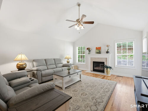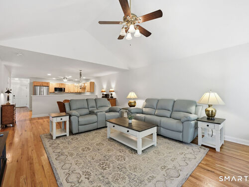 Welcome to Walnut Tree Village, a place where life feels unhurried and beautifully in balance, set within one of Newtown's most desirable 55+ communities. From the moment you enter, light and space greet you in perfect harmony. Soaring ceilings and expansive windows create an airy elegance, while the living room's gas fireplace offers a warm and inviting focal point for quiet evenings at home. The dining area is ready for both intimate dinners and joyful gatherings, seamlessly connected to a kitchen adorned with timeless cabinetry and all new stainless steel appliances with generous storage, and effortless functionality. The primary suite is a tranquil retreat, featuring vaulted ceilings, an updated bath and a spacious walk-in closet. A second bedroom and full bath provide comfort and flexibility, whether hosting guests or creating a serene workspace. Just outside, a charming patio invites moments of stillness-morning coffee in the fresh air, afternoons with a favorite book, or evenings wrapped in the calm of the surroundings.With gas heat, central air, abundant storage, and a one-car garage, every element is thoughtfully designed for ease and comfort. All just minutes from Newtown's shopping, dining, and convenient access to Route 84, this is a home where everyday living feels quietly exceptional.This lovely home is offered fully furnished-do not miss this rare opportunity.